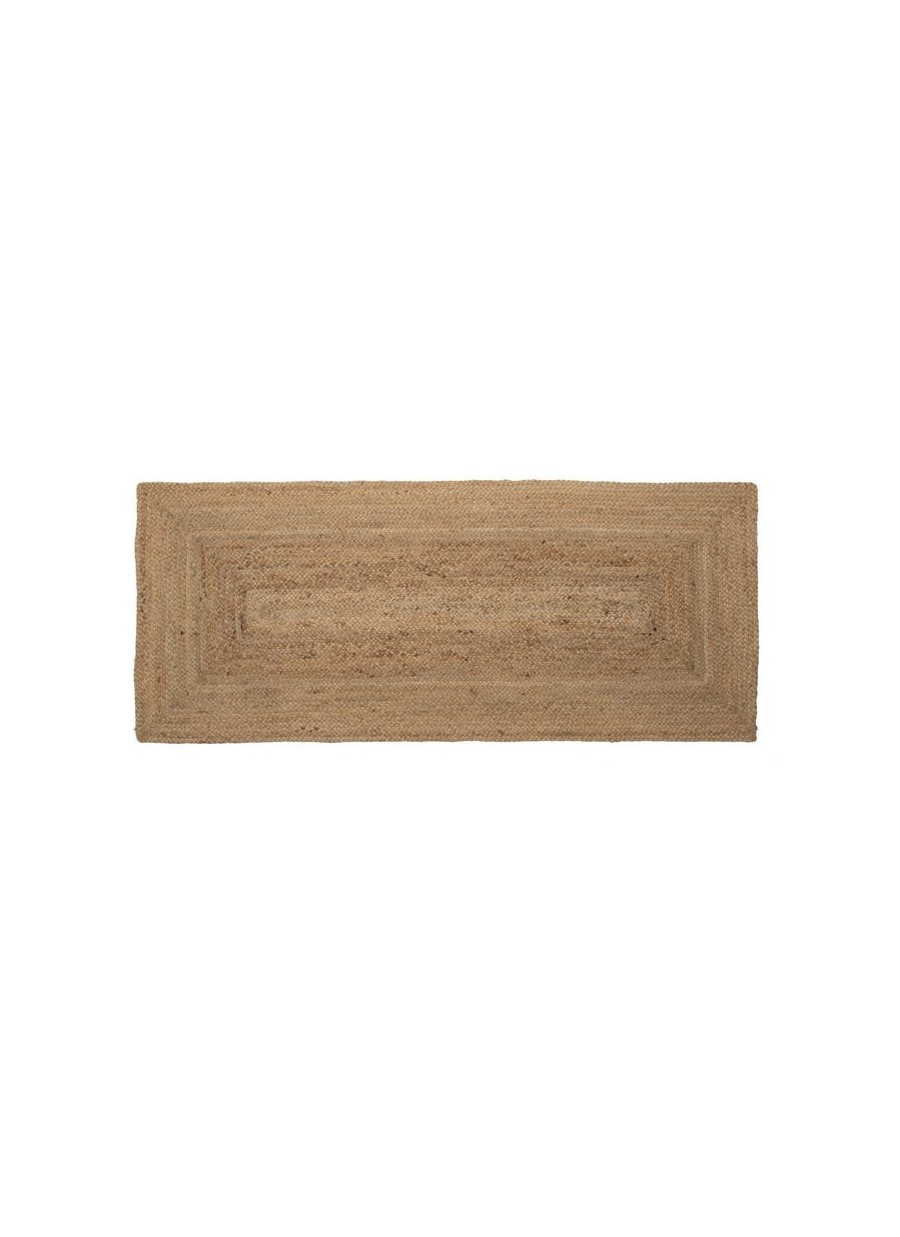 Esta alfombra rectangular de 170 cm de largo × 70 cm de ancho × 1 cm de grosor está confeccionada en yute 100 % natural, con tejido trenzado que aporta una textura granulada y un acabado rústico muy actual. Su tono cálido y neutral crea una base visual armónica, ideal para ambientes con estilo natural o minimalista