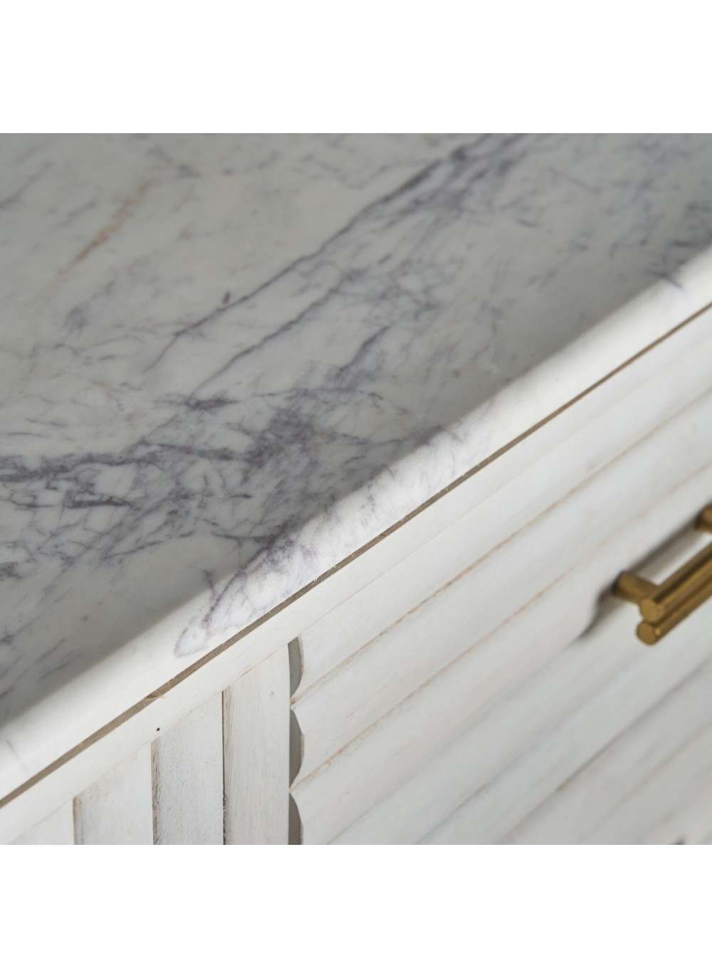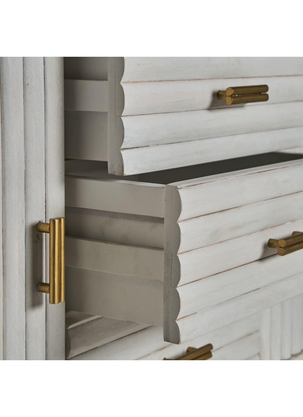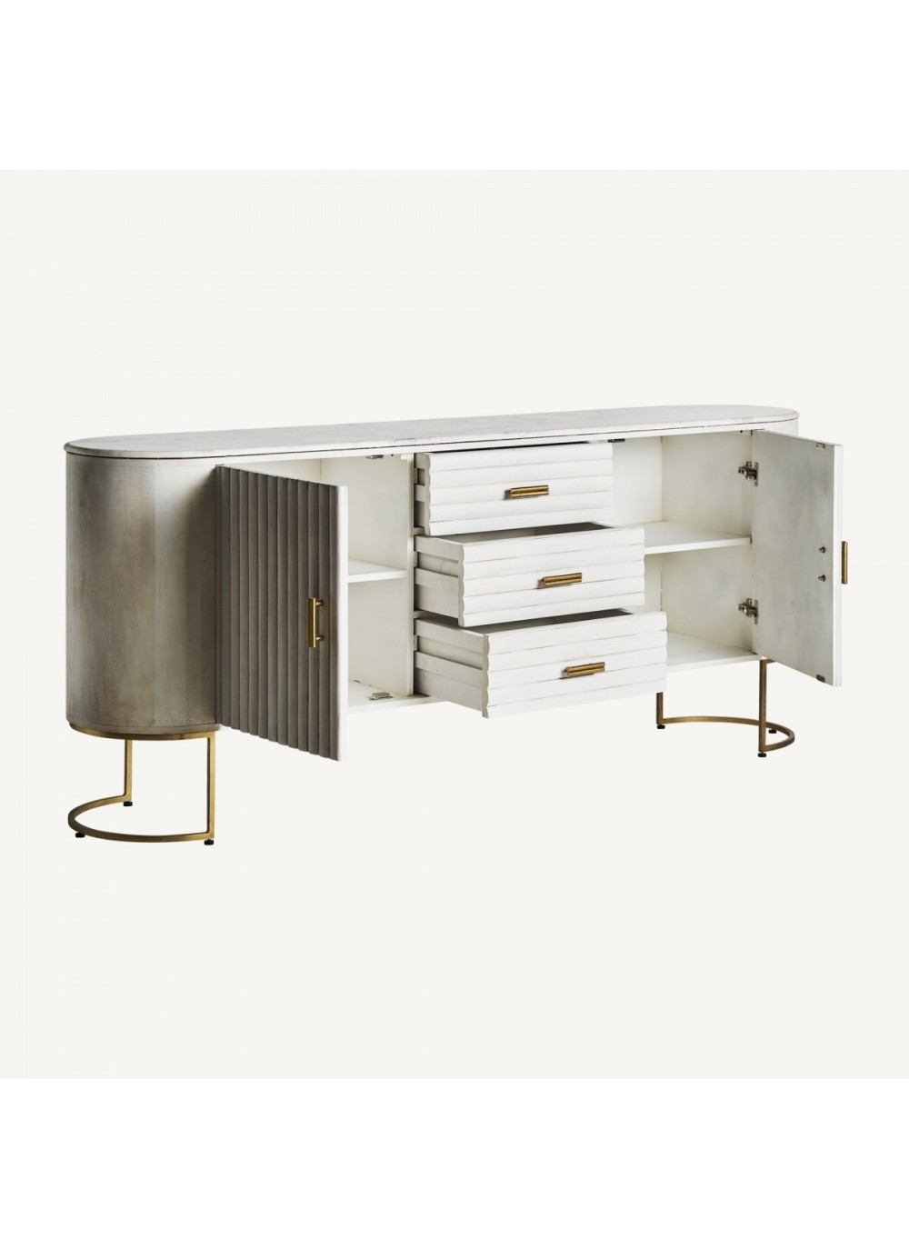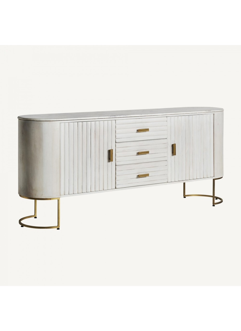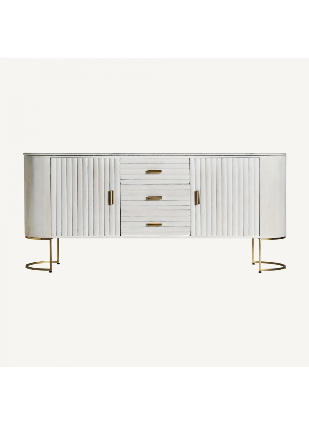 Buffet Gless, en color blanco/oro, de estilo Art Decó. Fabricado en madera de mango, combinado con latón.
