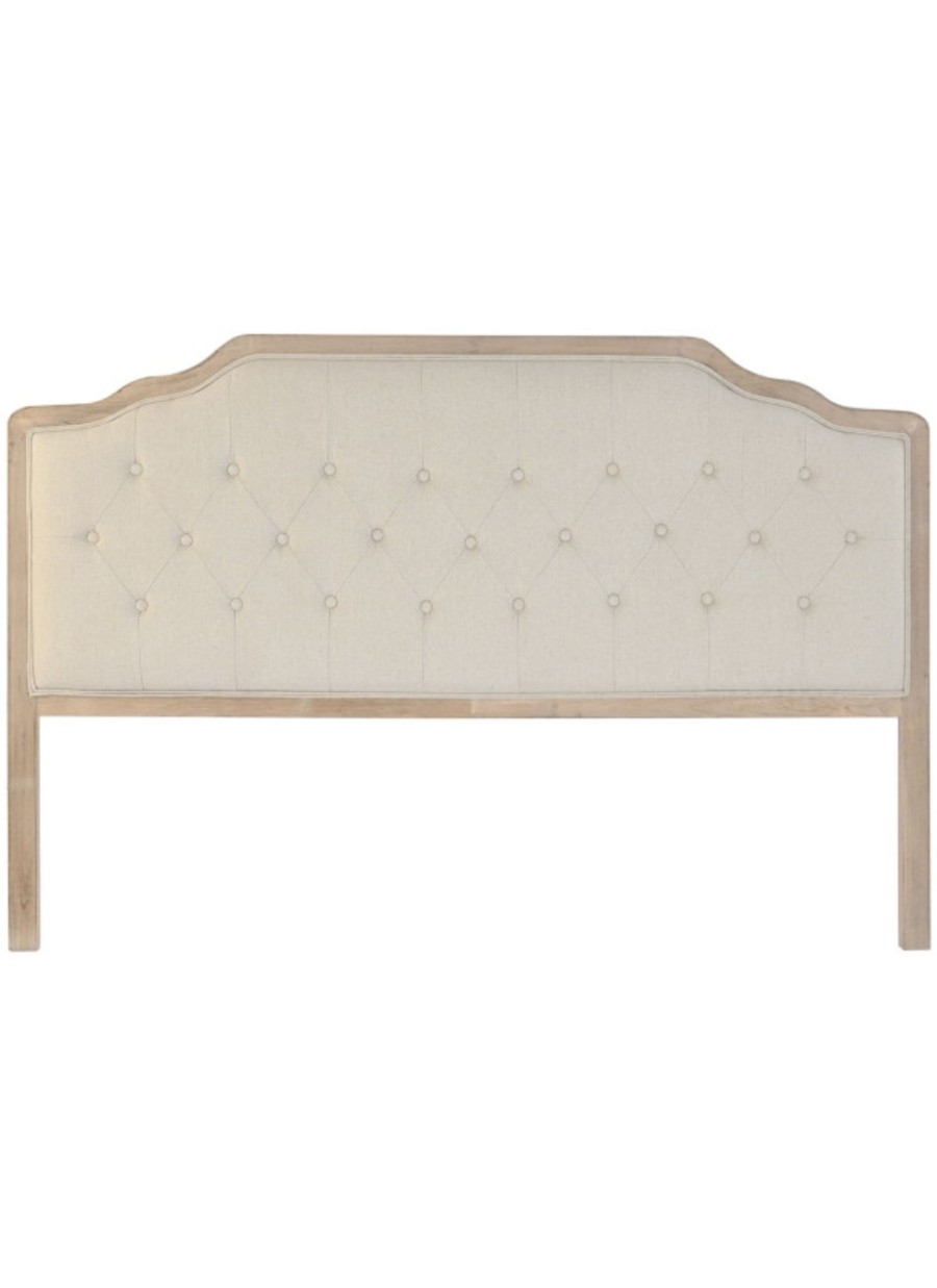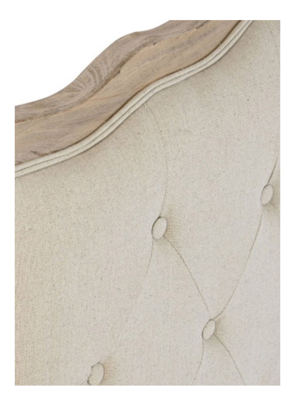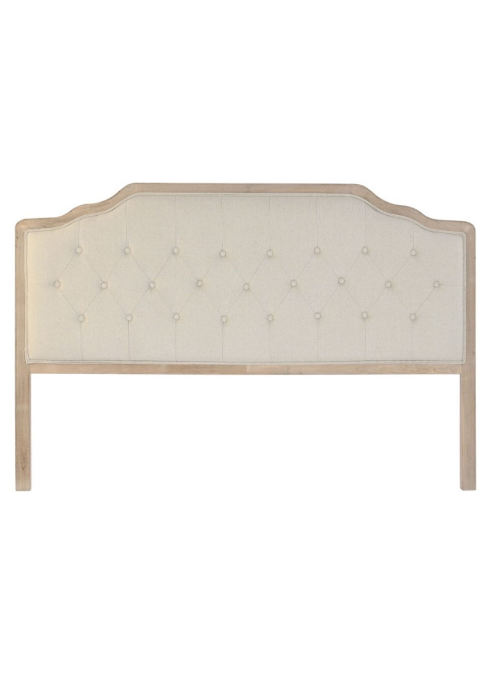 El cabecero, generoso y vertical, seduce por su equilibrio entre presencia y tersura. Su superficie tapizada de poliéster beige, adornada con un sofisticado acabado capitoné, evoca la elegancia clásica de los cabeceros vintage pero con una estética contemporánea, ofreciendo un guiño refinado al diseño atemporal. La base de madera de roble natural aporta calidez visual y un contrapunto noble al acabado textil.