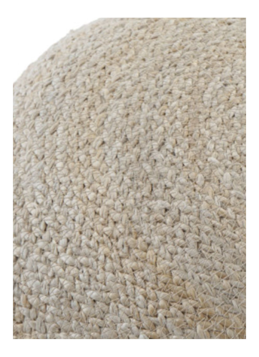 Cojín de suelo de ambiente balines con forma circular realizado en fibra natural.