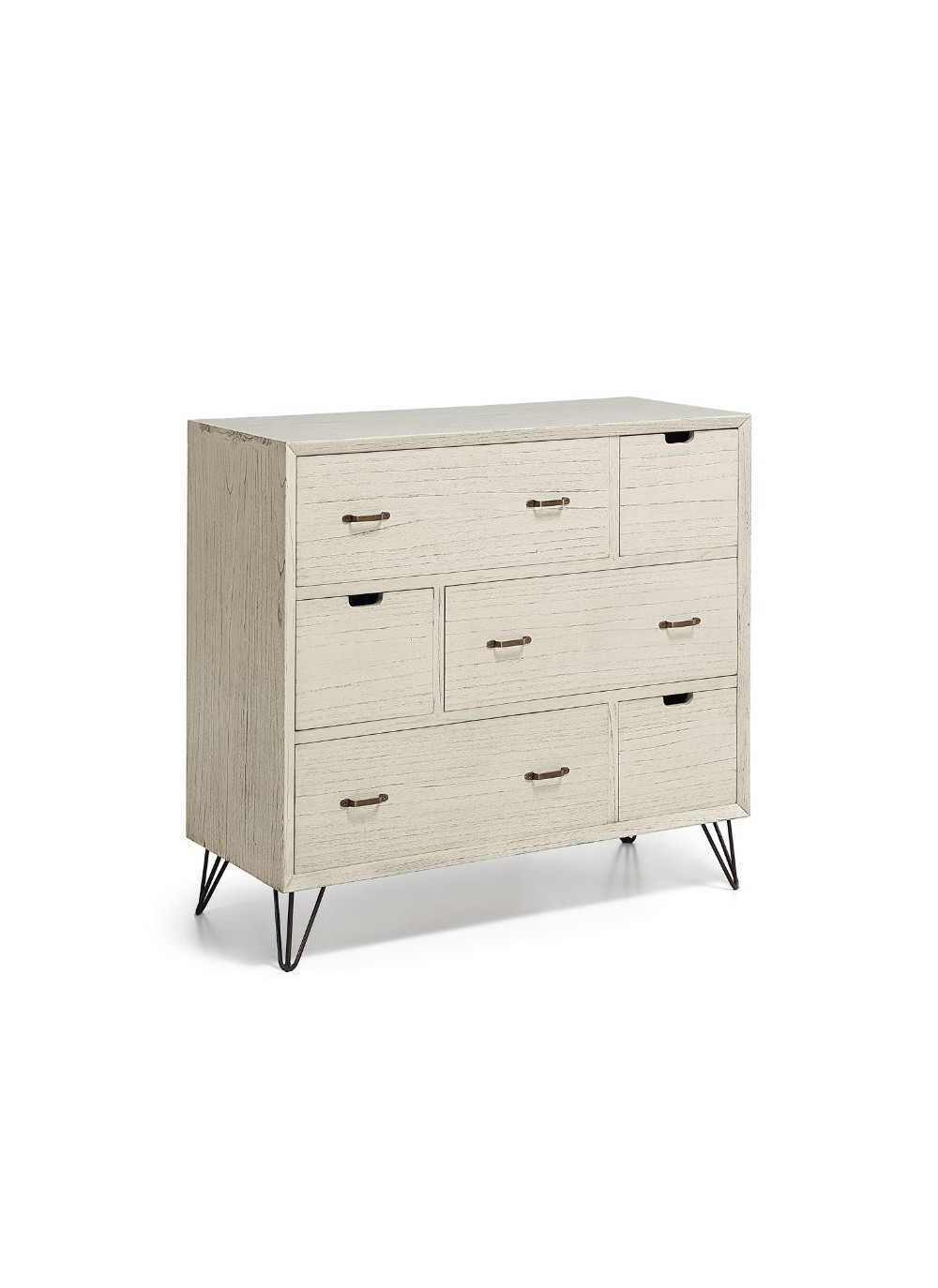 La Cómoda Muria combina diseño elegante y funcionalidad en un mueble versátil. Con sus seis cajones espaciosos, permite mantener la ropa, accesorios o textiles siempre organizados. Sus medidas de 110x45x100 cm la convierten en una pieza práctica para dormitorios, salones o recibidores. Fabricada con materiales resistentes y acabados cuidados, aporta un estilo atemporal que se adapta tanto a ambientes modernos como rústicos.