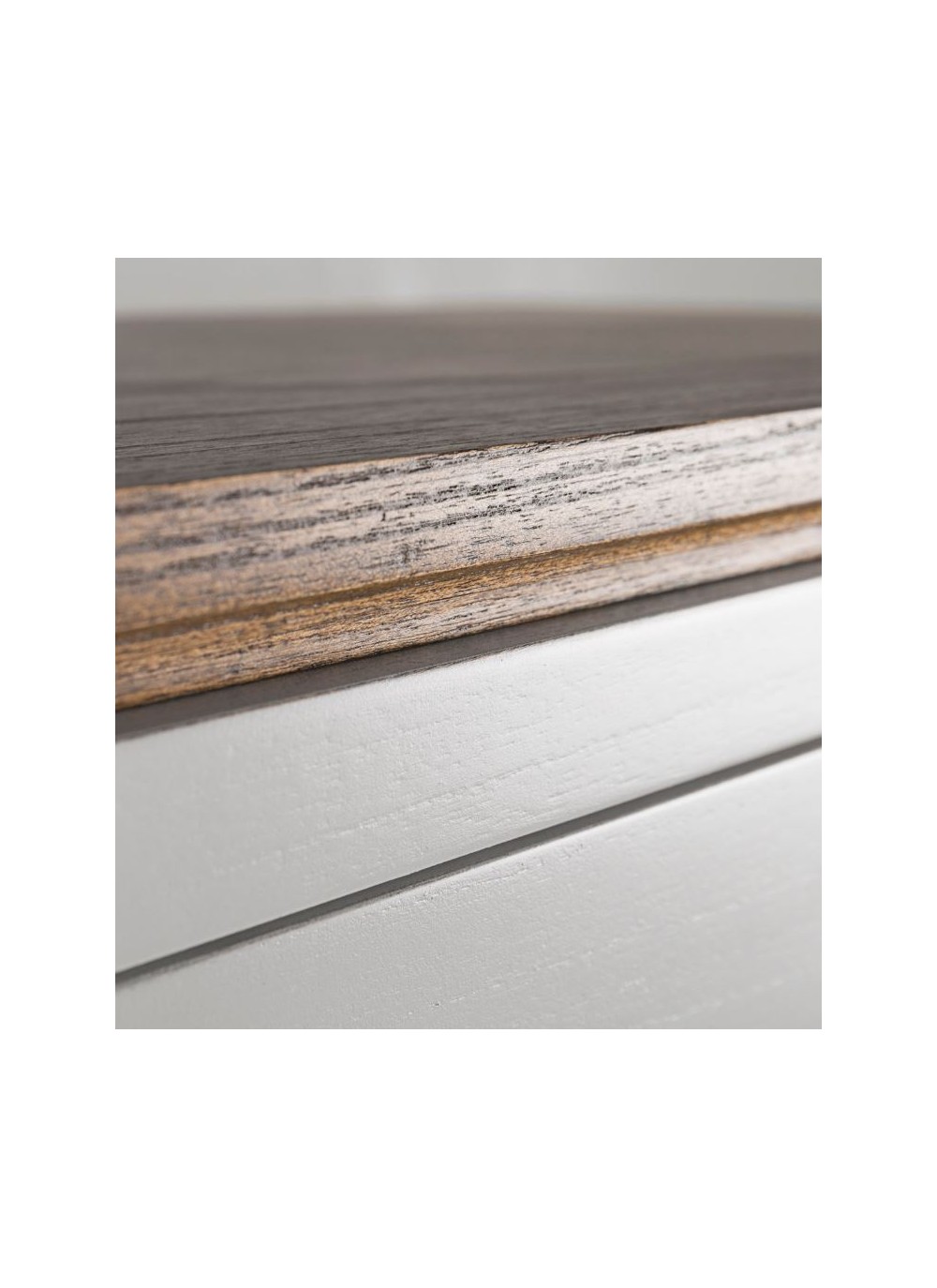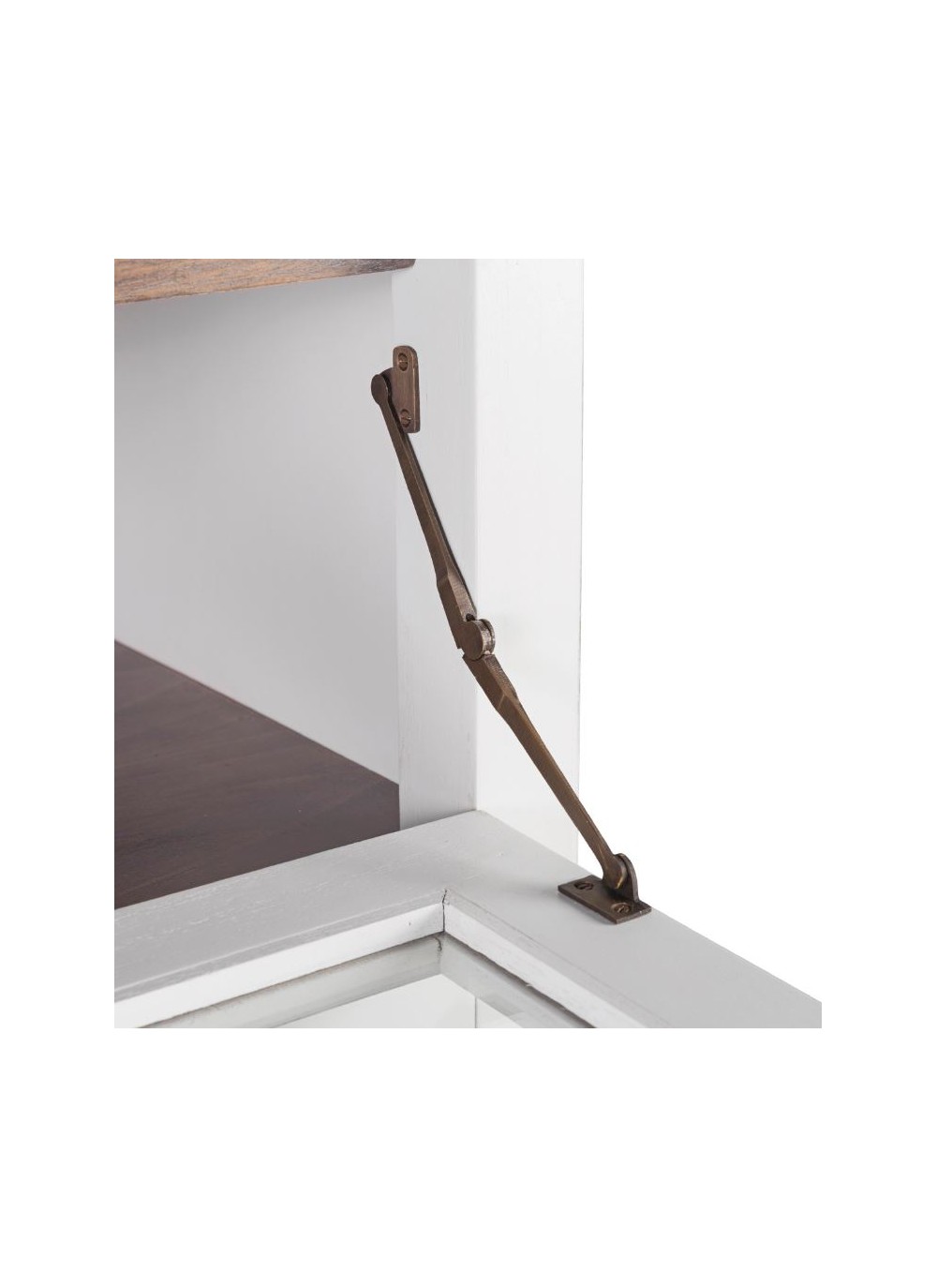 Materiales: Fabricado en Madera de Mindi, cultivada en el sudeste asiático y en el sur de la América latina. Dispone de tonalidades claras y uniformes. Accesorios en bronce. Top de madera maciza.