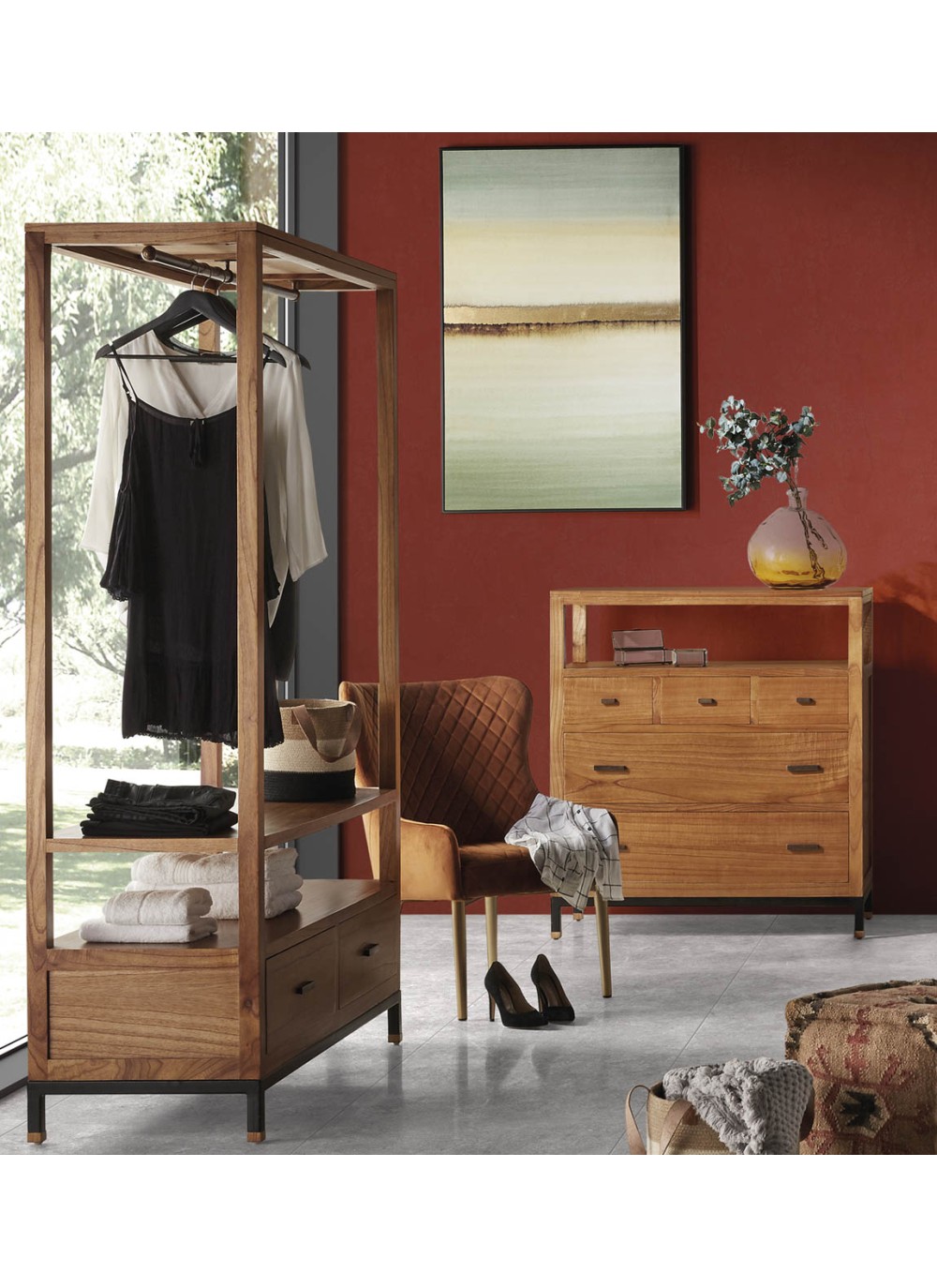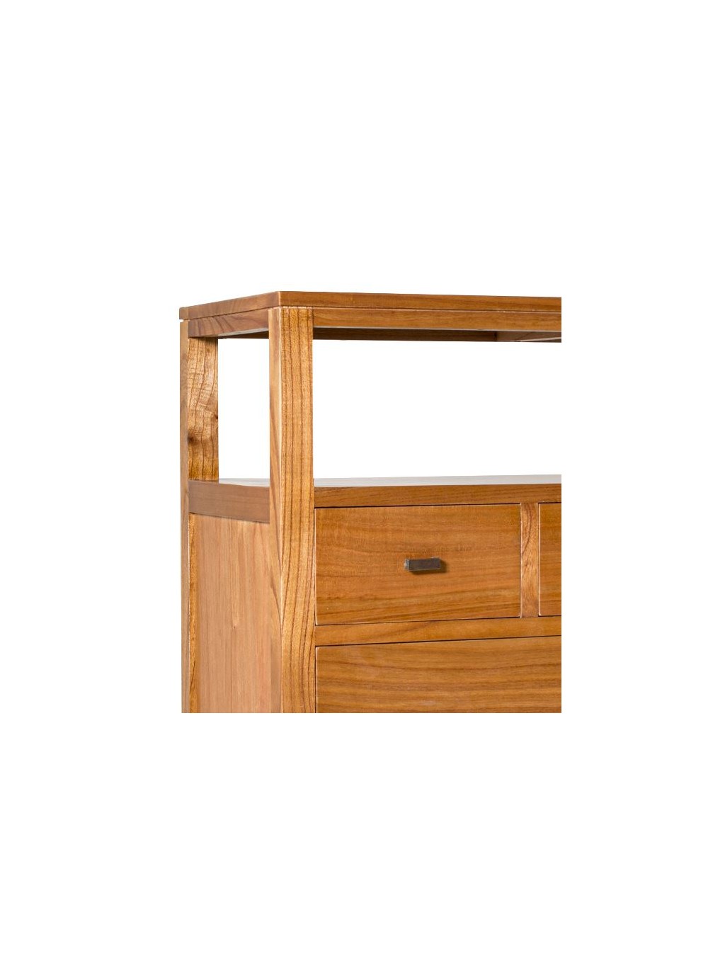 La Cómoda Madhu es la combinación perfecta entre practicidad y estilo contemporáneo. Con unas dimensiones de 100x45x110 cm, dispone de 3 cajones grandes, 2 cajones superiores y un hueco abierto, ofreciendo espacio versátil para ropa, accesorios y elementos decorativos. Fabricada en madera de calidad, destaca por sus líneas limpias y acabado natural que aporta calidez a cualquier ambiente. Ideal para dormitorios o salones que buscan organización sin renunciar al diseño.