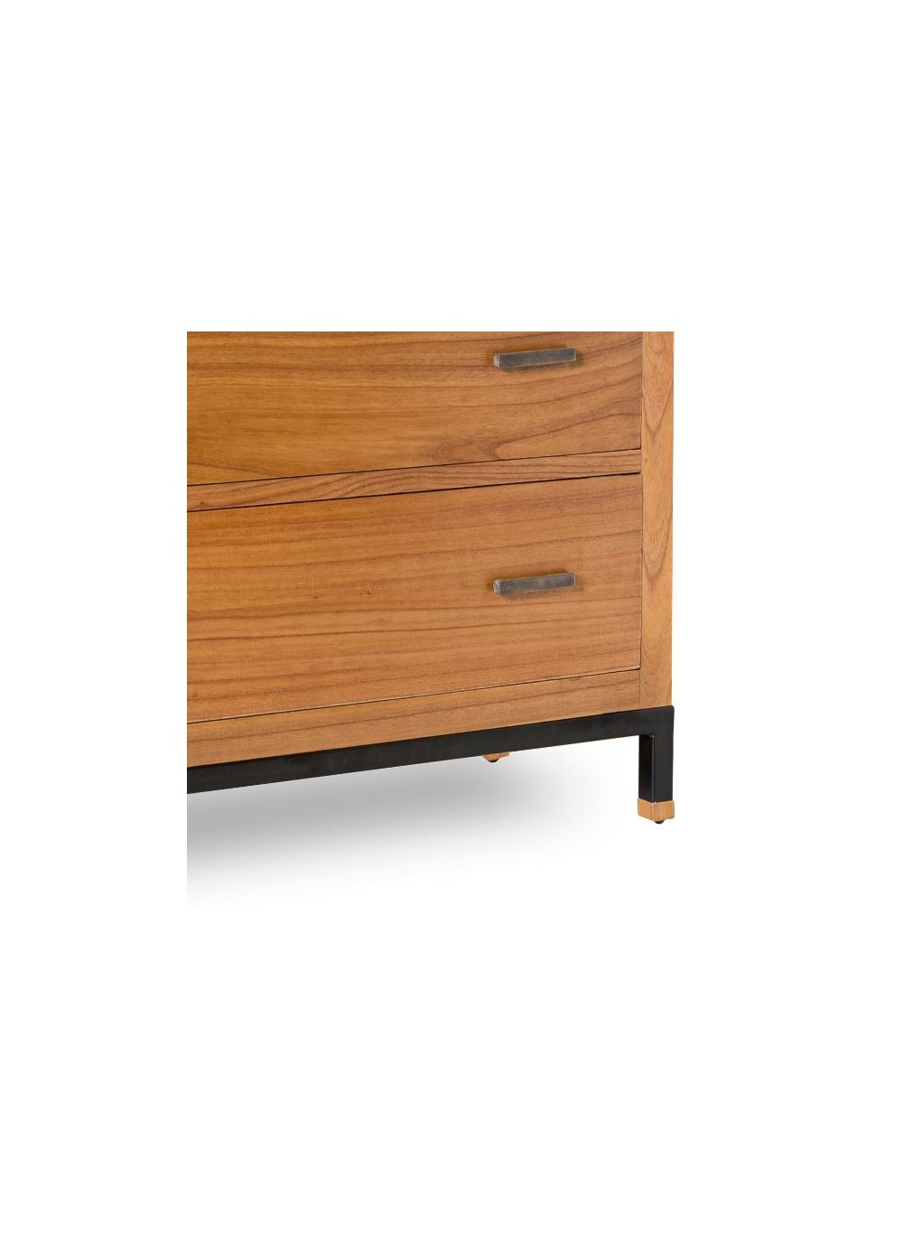 materiales: estructura de madera maciza. fabricado en madera de mindi, cultivada en el sudeste asiático y en el sur de la américa latina. dispone de tonalidades claras y uniformes. accesorios de hierro en bronce.