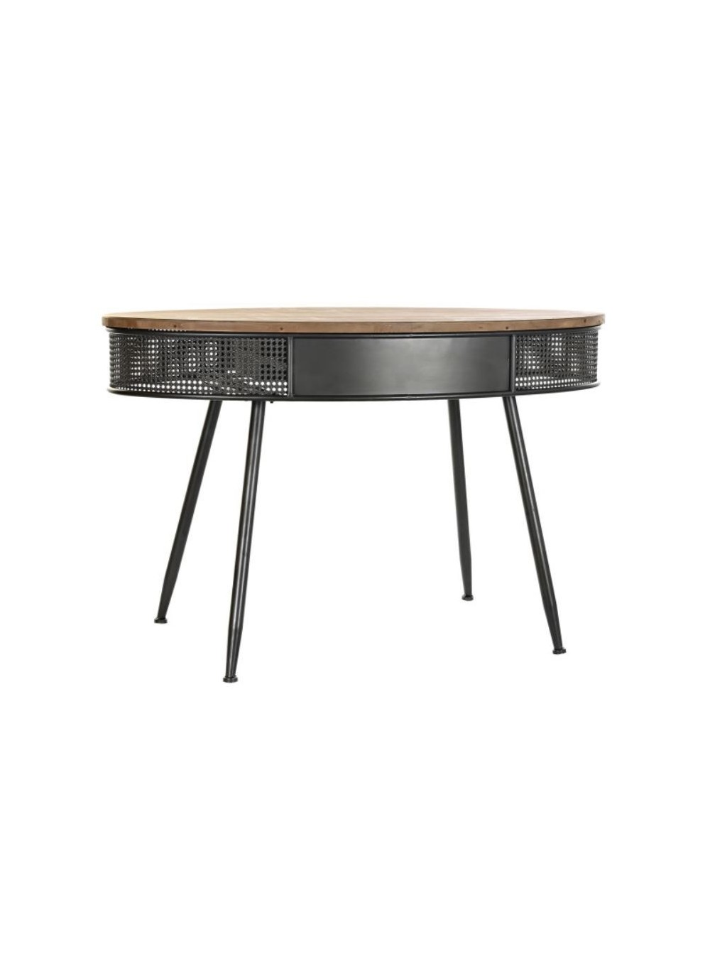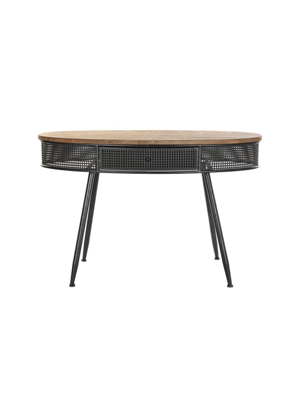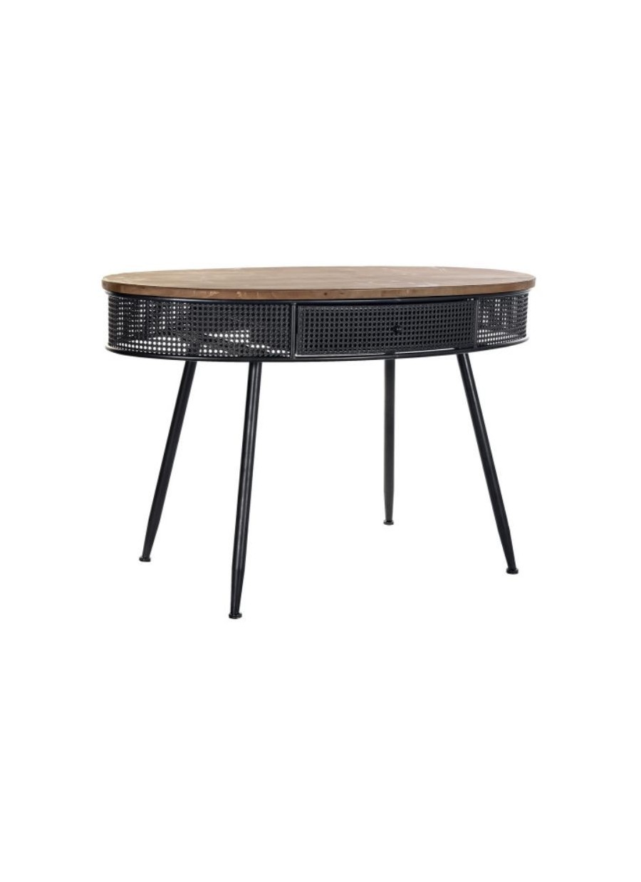 La superficie de abeto ofrece un acabado natural que realza la veta de la madera, mientras que la estructura metálica aporta firmeza y estabilidad. Gracias a su formato rectangular, es una pieza funcional y versátil, perfecta para exhibir objetos decorativos, apoyar lámparas, colocar libros o servir de apoyo en espacios de paso.