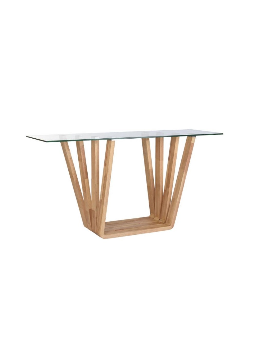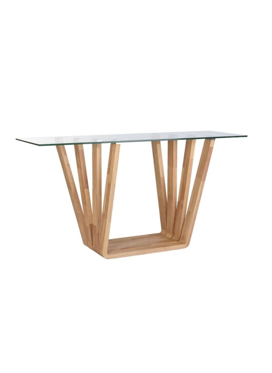 Fabricada con materiales de alta calidad, su estructura sólida y sus acabados refinados garantizan durabilidad y estilo a partes iguales. Con sus dimensiones de 145x45x75 cm, ofrece una superficie amplia ideal para exhibir decoración, lámparas, libros o piezas de arte, mientras mantiene un diseño ligero que no recarga el espacio.