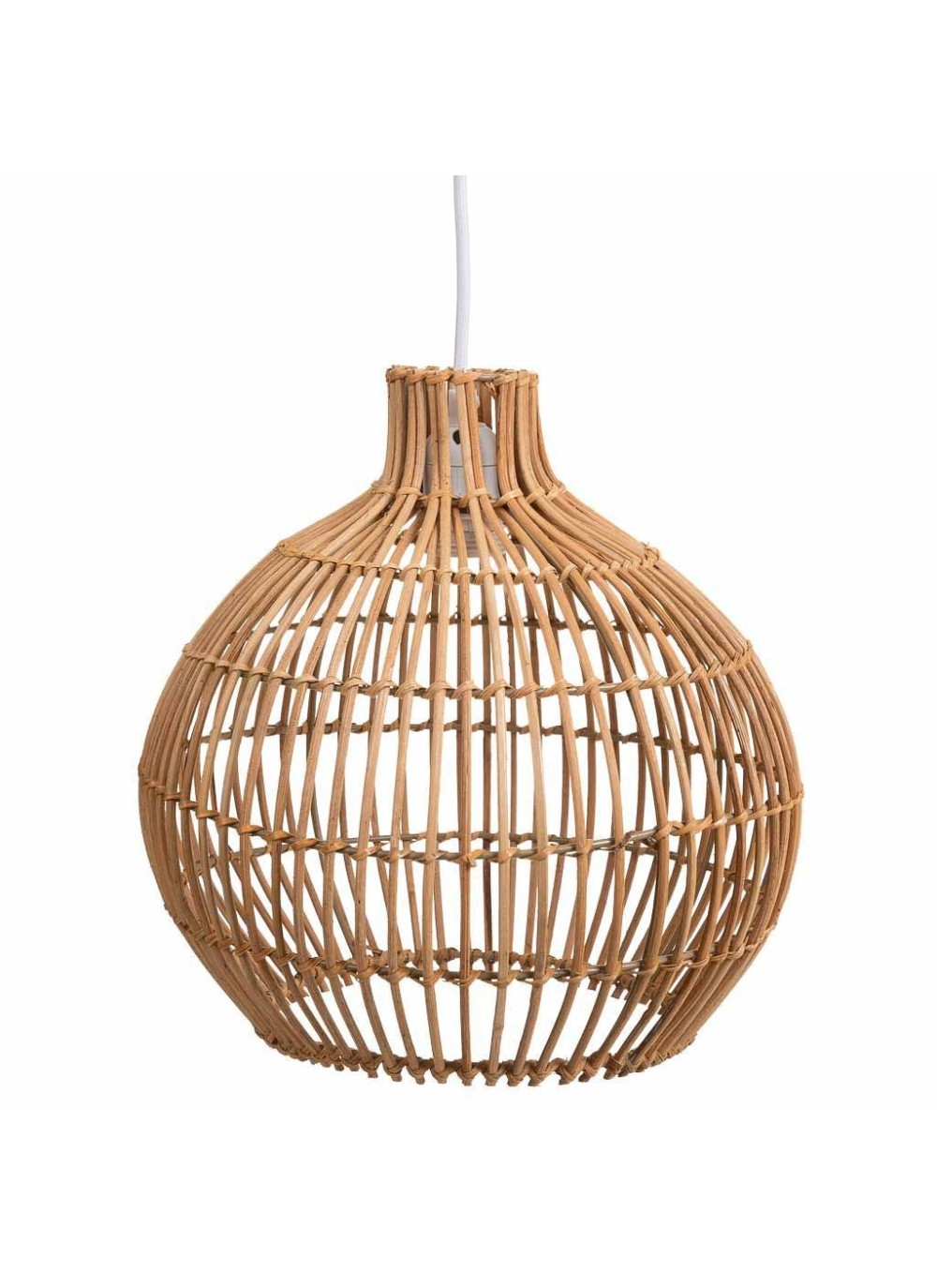 Inspirada en diseños boho‑nórdicos, esta lámpara de techo combina fibra natural trenzada (ratán) con una estructura metálica compacta. Con unos 29 cm de diámetro y 31 cm de alto, ofrece una presencia elegante pero discreta: ideal como foco decorativo sin sobrecargar visualmente el espacio.
