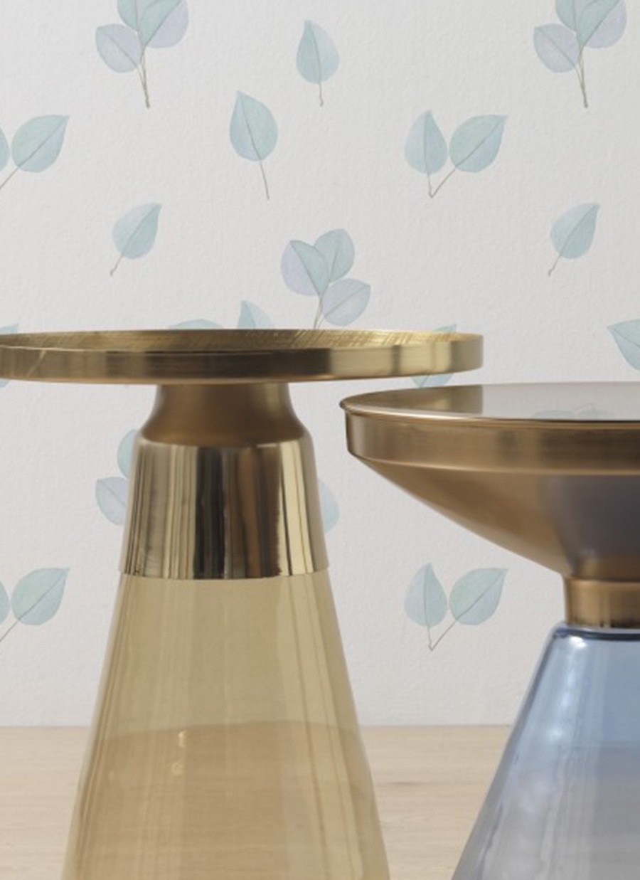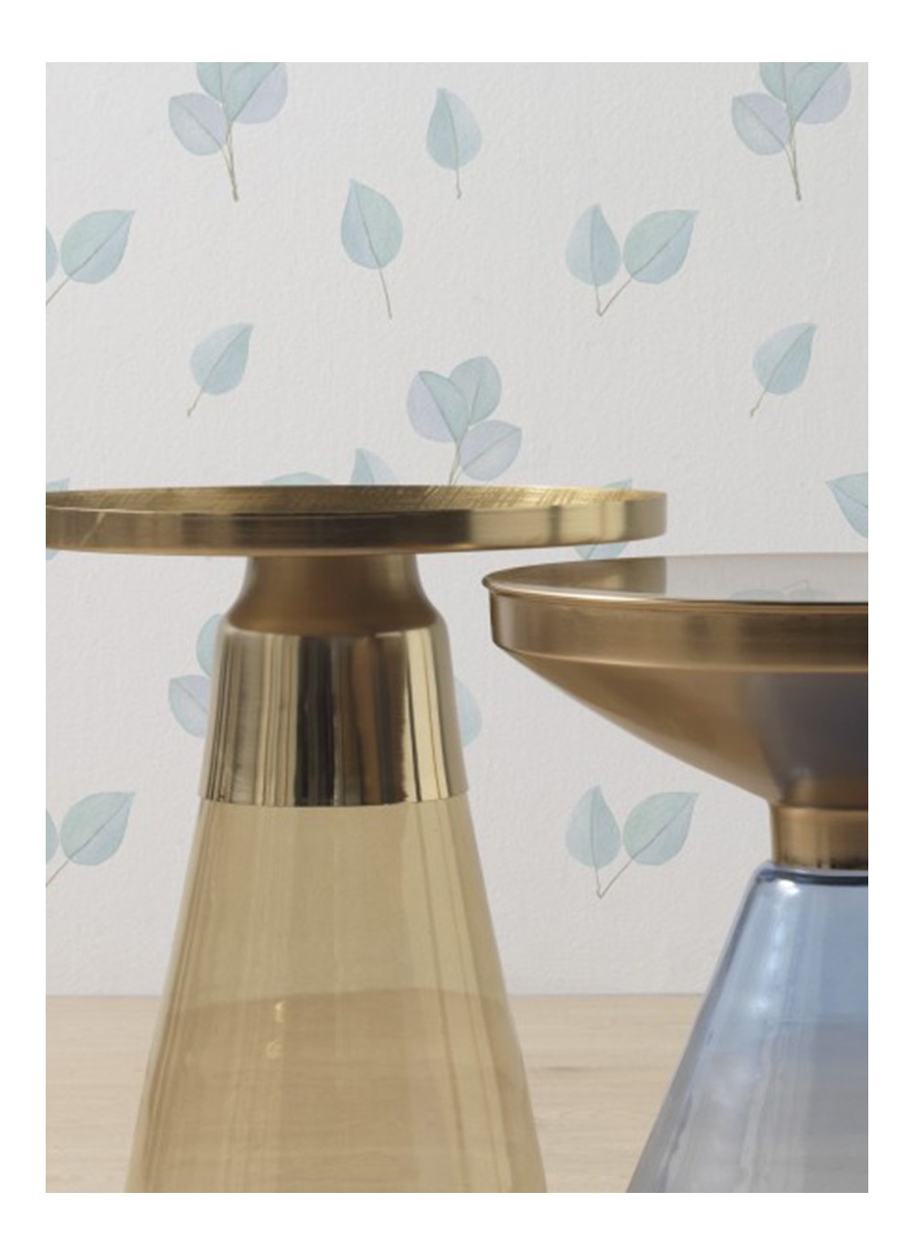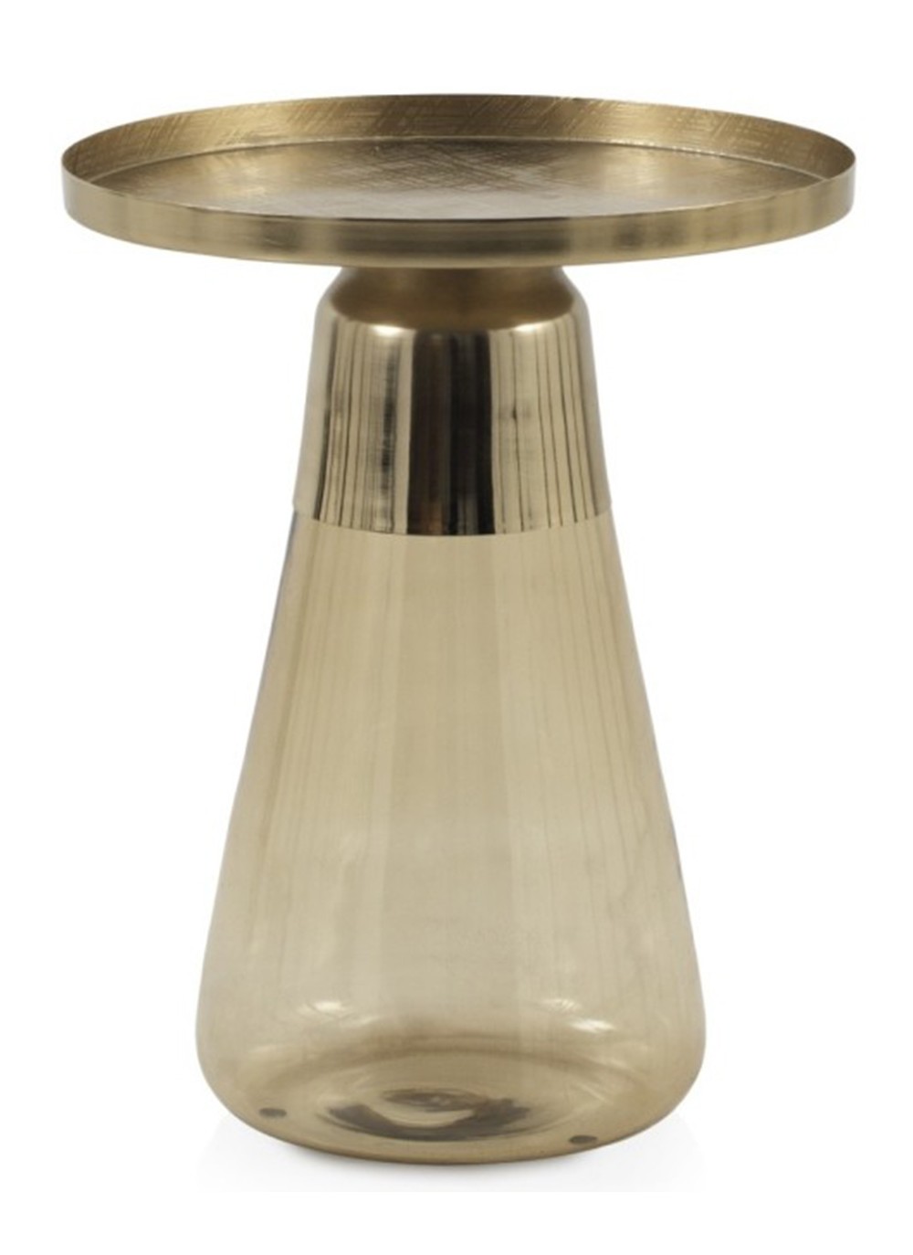 Mesa Auxiliar Con Base De Cristal Verde Y Sobre De Metal Dorado 42X42X53 Ref. 1034/11005