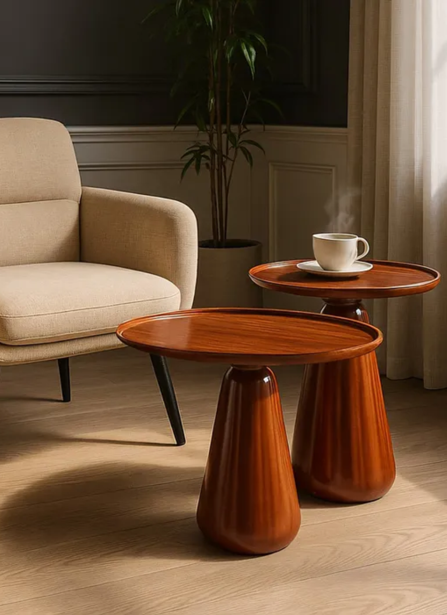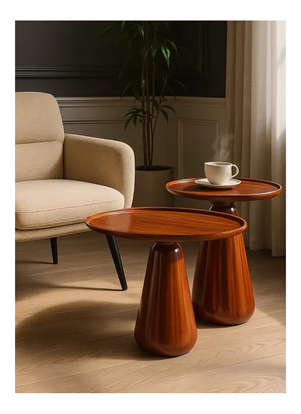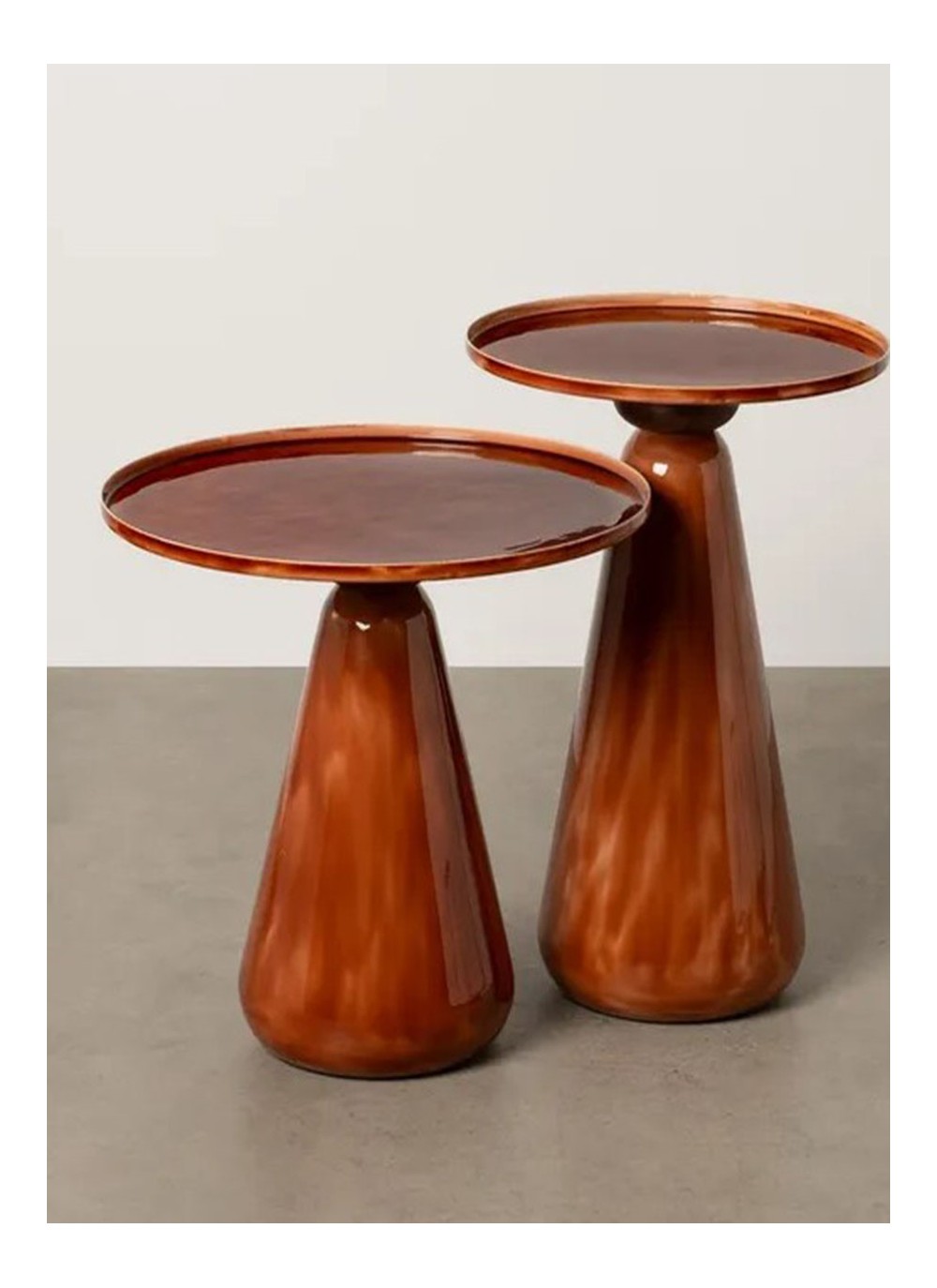 Este conjunto de dos mesas auxiliares Pendu destaca por su diseño moderno y funcional, perfecto para añadir estilo y practicidad a cualquier espacio. Fabricadas en metal, ofrecen una estructura resistente con un acabado elegante que se adapta a salones, dormitorios o zonas de estar. Su formato versátil permite usarlas juntas o por separado, como mesas de apoyo, soporte para decoración o incluso como complemento junto al sofá.