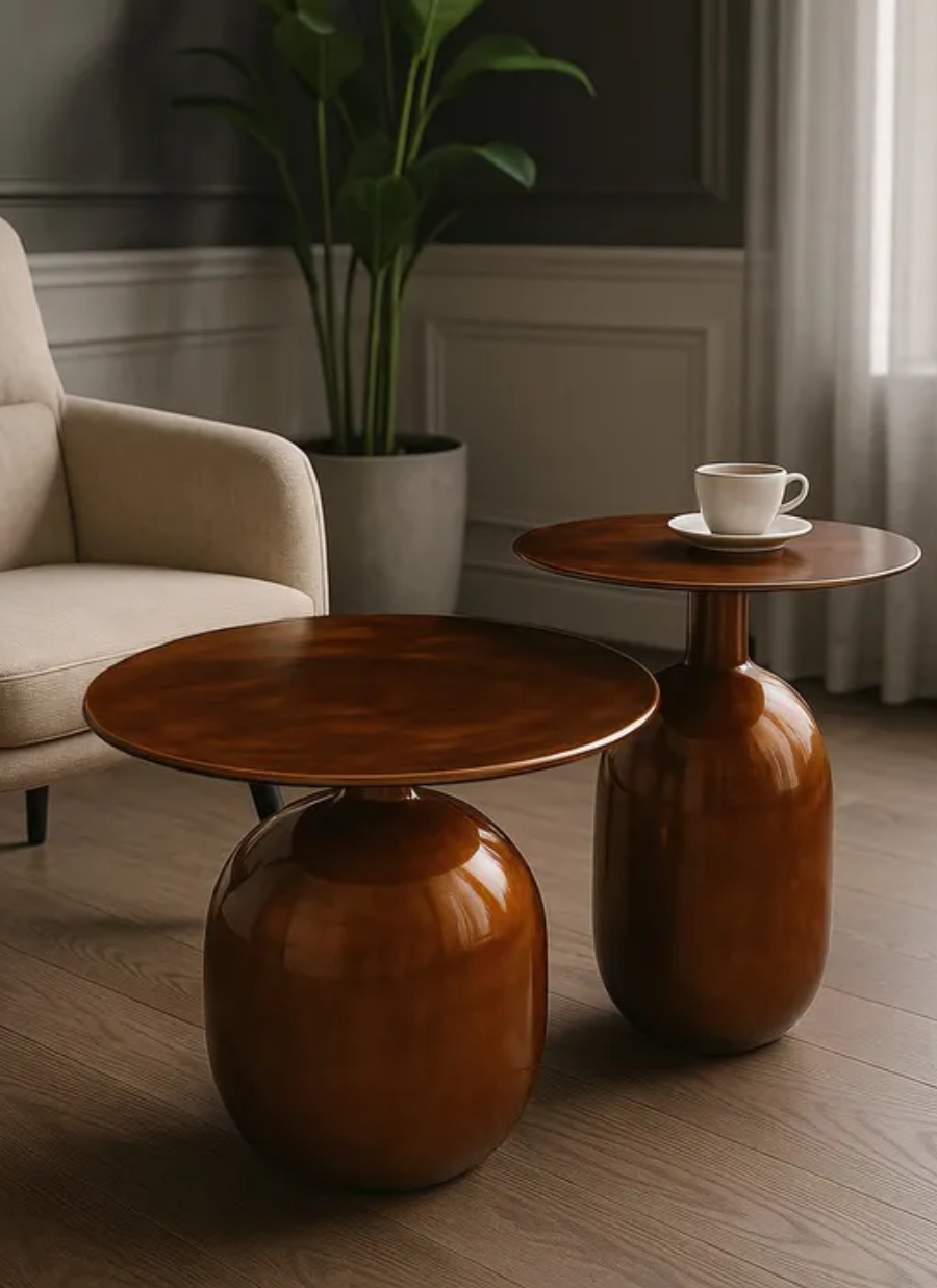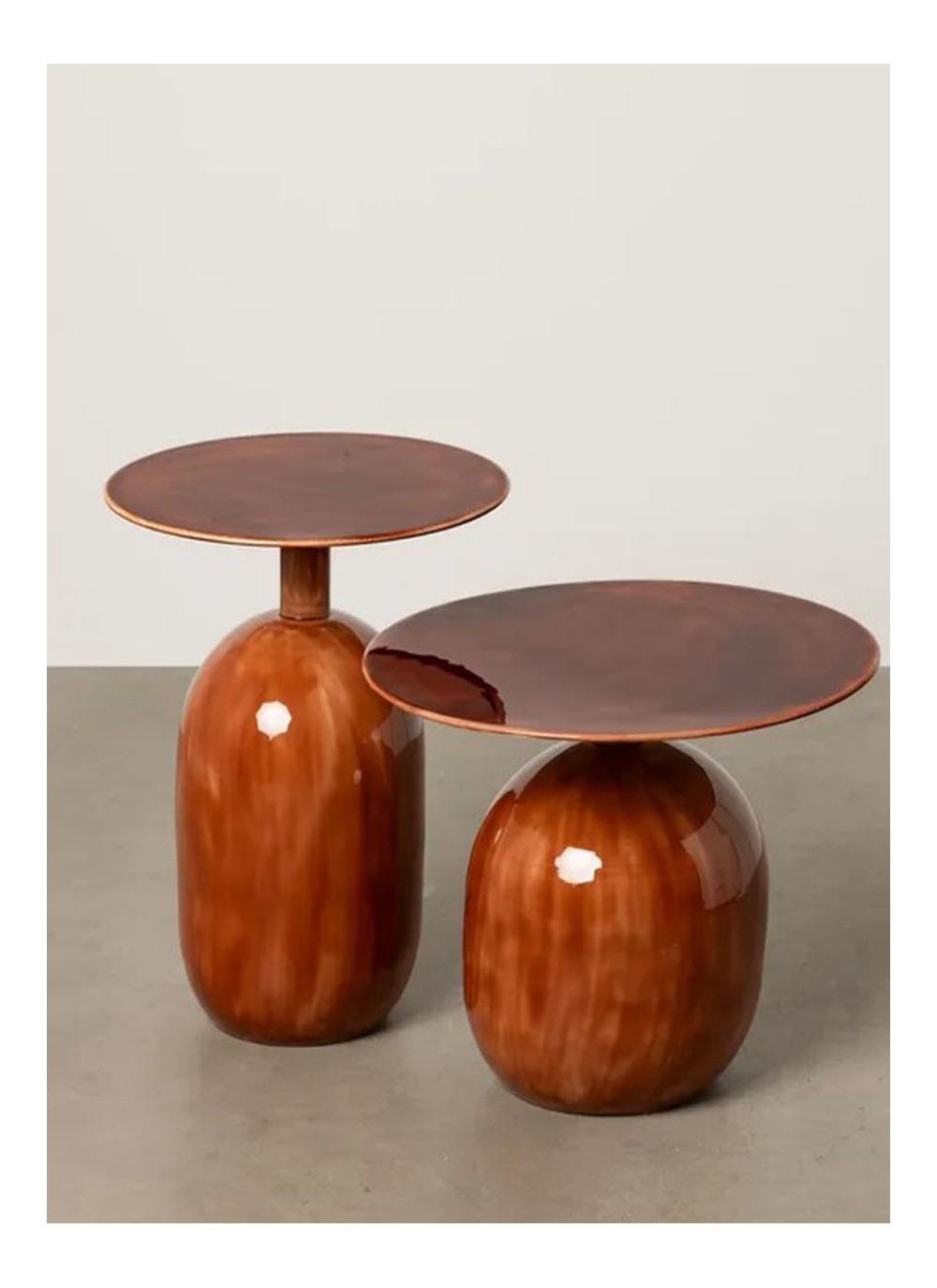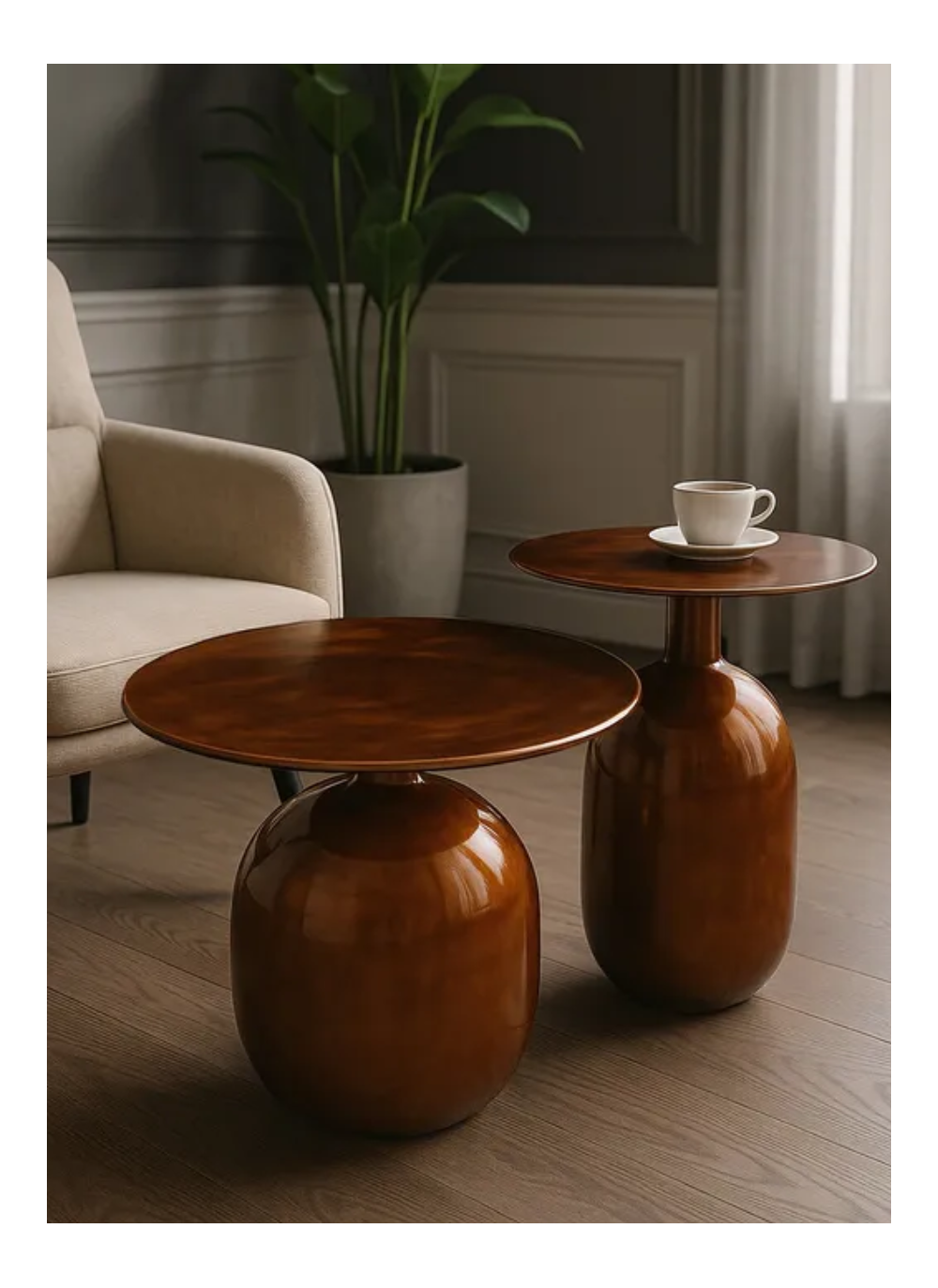Este conjunto de dos mesas auxiliares Pendu destaca por su diseño moderno y funcional, perfecto para añadir estilo y practicidad a cualquier espacio. Fabricadas en metal, ofrecen una estructura resistente con un acabado elegante que se adapta a salones, dormitorios o zonas de estar. Su formato versátil permite usarlas juntas o por separado, como mesas de apoyo, soporte para decoración o incluso como complemento junto al sofá.
