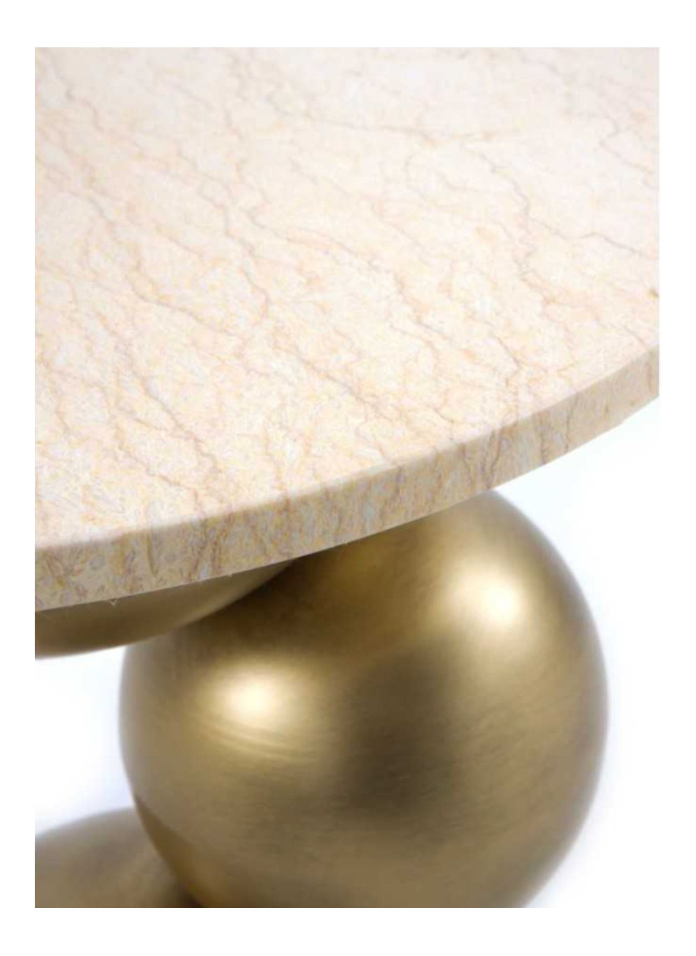 La mesa auxiliar de 50 cm: mármol crema natural y base metálica en oro viejo, la mezcla perfecta de estilo y versatilidad. Ideal al lado del sofá, en el dormitorio o en tu rincón favorito