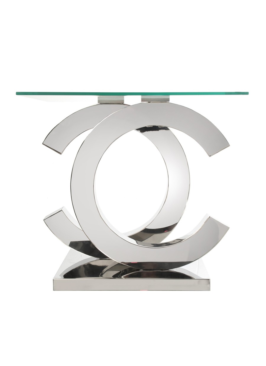 Mesa auxiliar de metal/cristal con patas+base de acero inoxidable. cristal templado 8mm ref. 396/40174