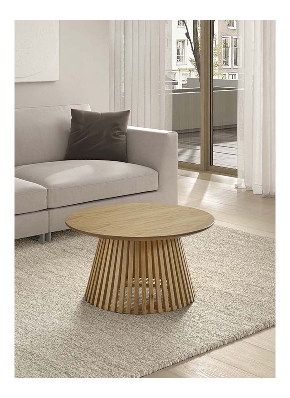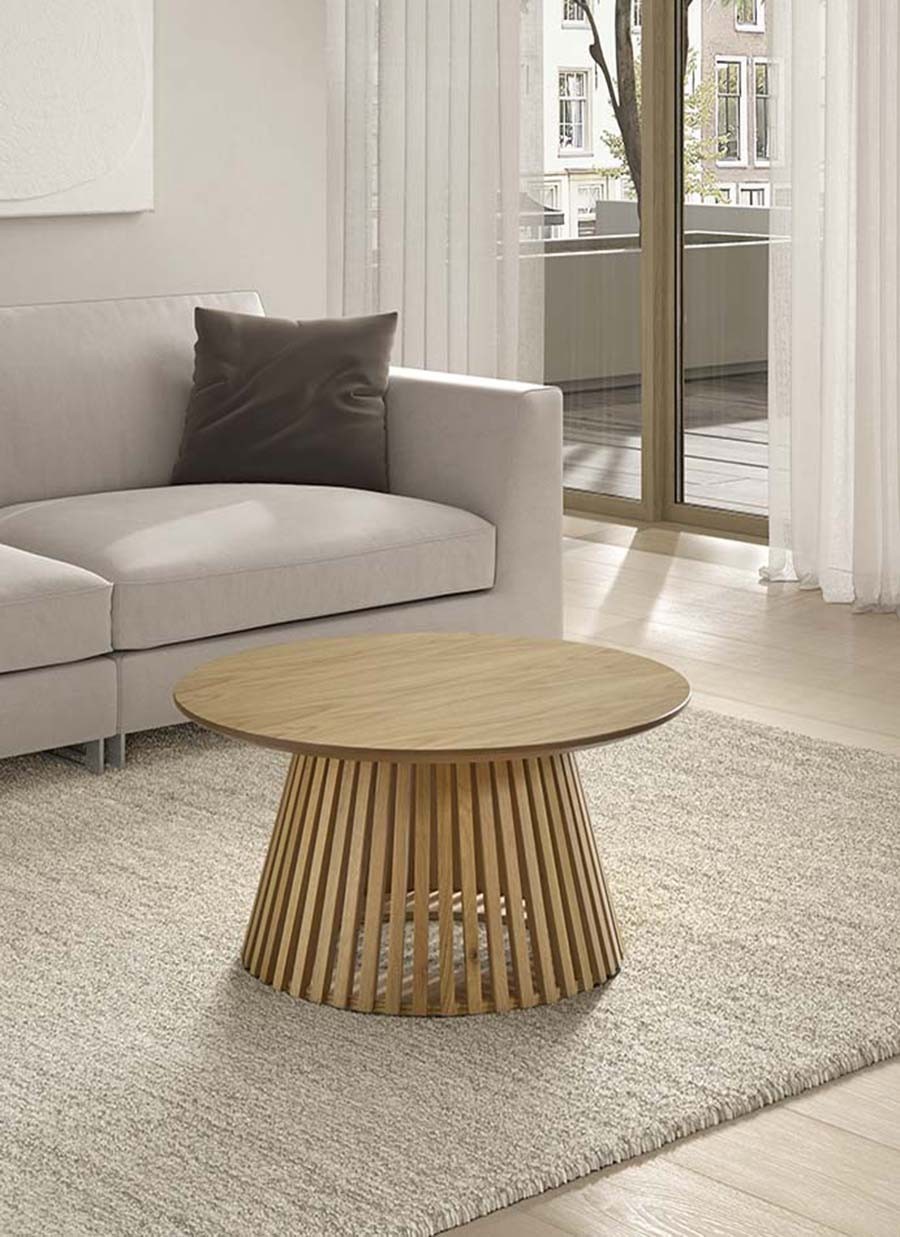Mesa centro fabricada en madera natural. Una pieza perfecta para combinar con ambientes Moderno.