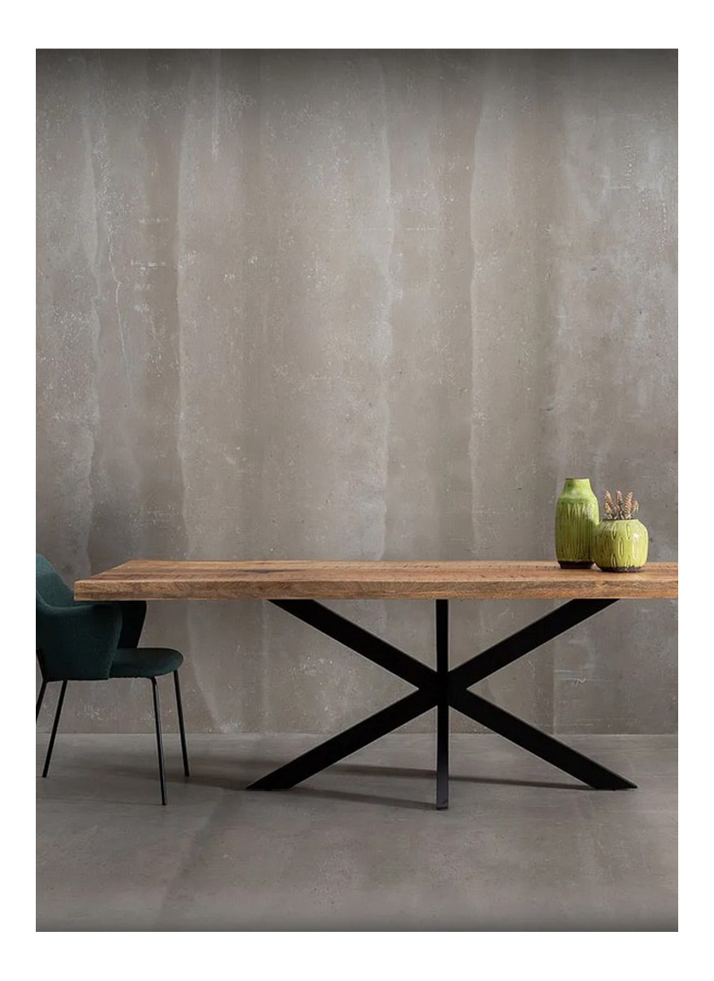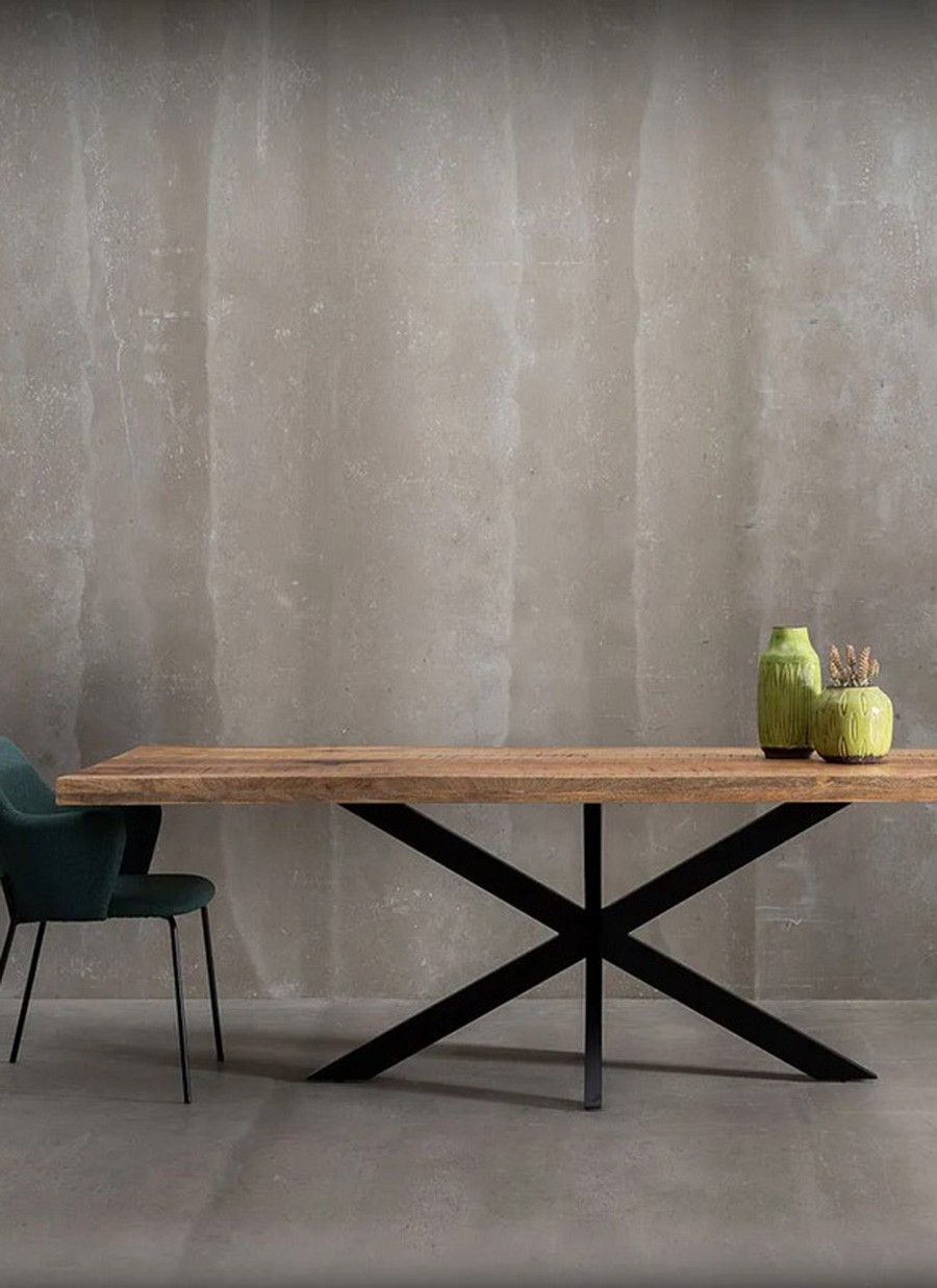 La Mesa Kala Big no es simplemente un mueble, es una declaración de principios. Concebida para ser el epicentro de reuniones memorables y el testigo silencioso de la vida cotidiana, esta pieza fusiona la fuerza indómita del hierro con la calidez orgánica de la madera de mango. Sus generosas dimensiones de 240 cm de largo por 100 cm de ancho la convierten en el anfitrión perfecto para grandes cenas, proyectos creativos o simplemente para disfrutar de un espacio amplio y con personalidad.
