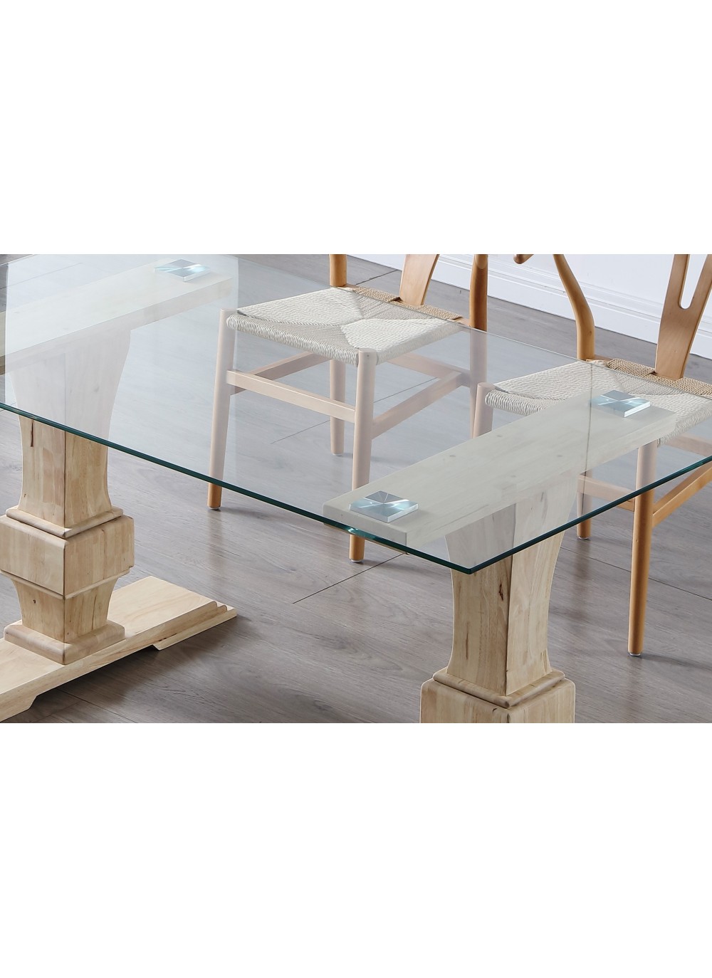 Materiales: Tapa en vidrio templado y patas de madera de roble