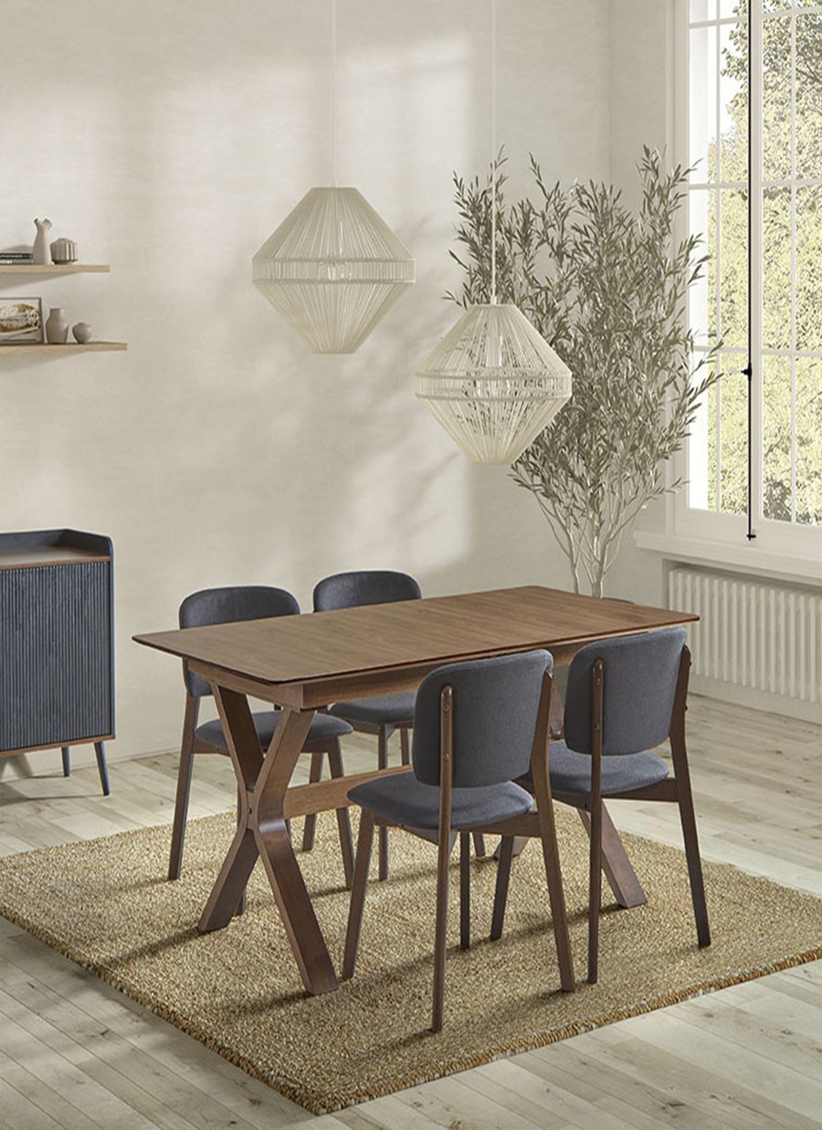 Mesa comedor madera acabado nogal. Una pieza perfecta para combinar con ambientes Moderno.