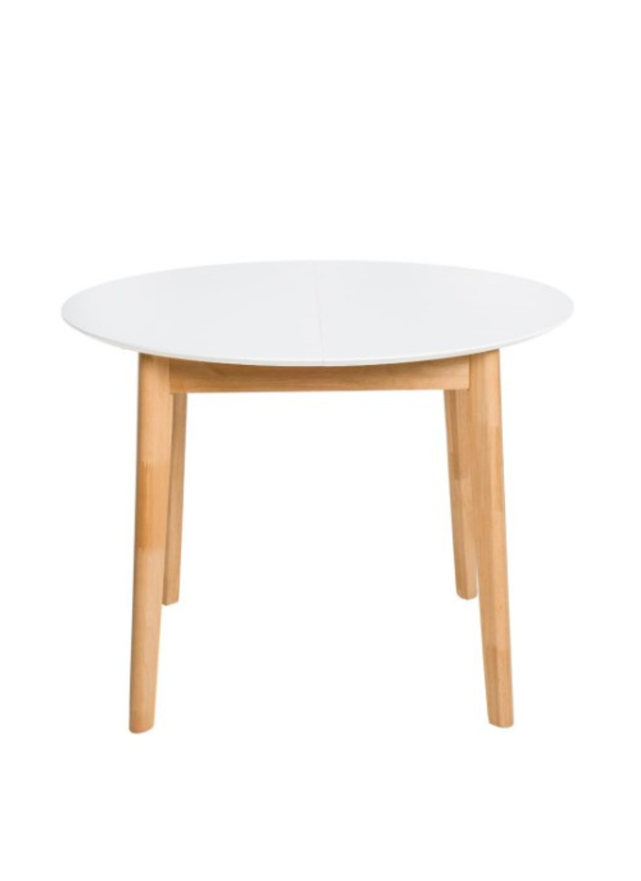 Fabricada con una cuidadosa mezcla de DMF, madera maciza y hevea, ofrece resistencia, durabilidad y una estética cálida. Su diseño combina el tono roble claro de las patas con una tapa en blanco mate, creando un contraste suave y elegante que se adapta a distintos estilos de decoración.