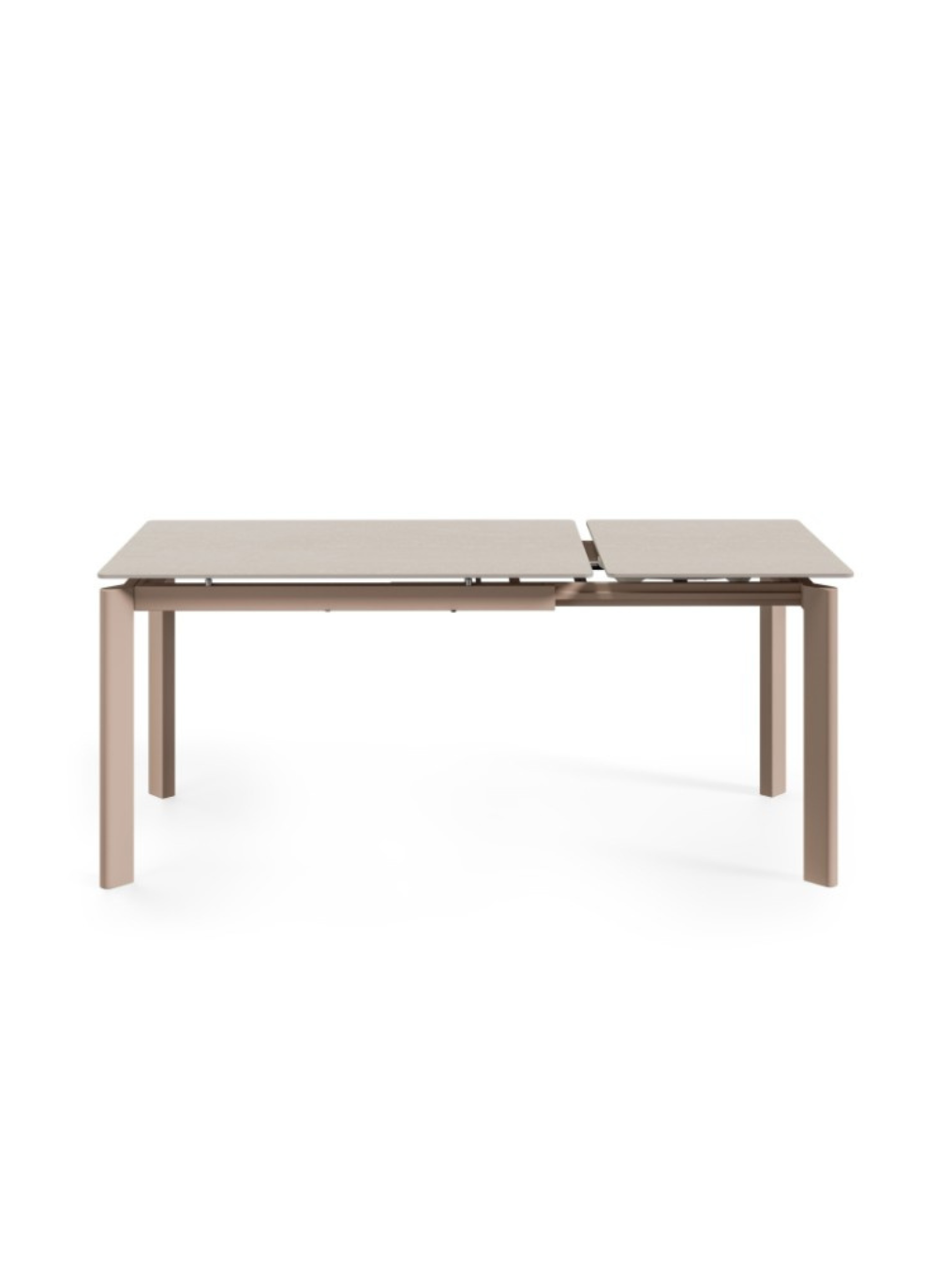 Con unas dimensiones iniciales de 120 x 80 x 76 cm, esta mesa se adapta perfectamente a espacios reducidos y al uso diario. Cuando se requiere mayor capacidad, su sistema extensible permite ampliar la superficie hasta 180 x 80 x 76 cm, ofreciendo espacio adicional para invitados sin comprometer el diseño.