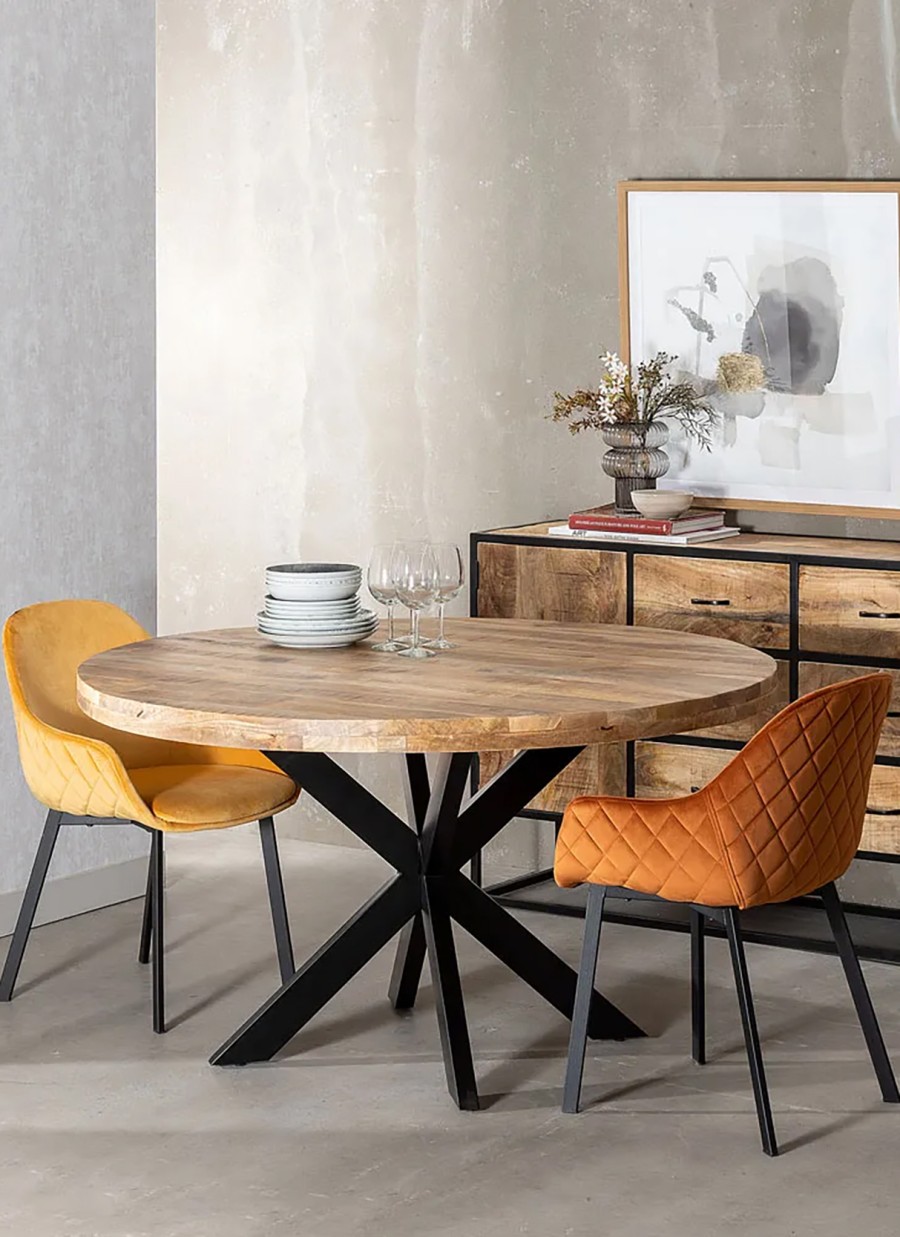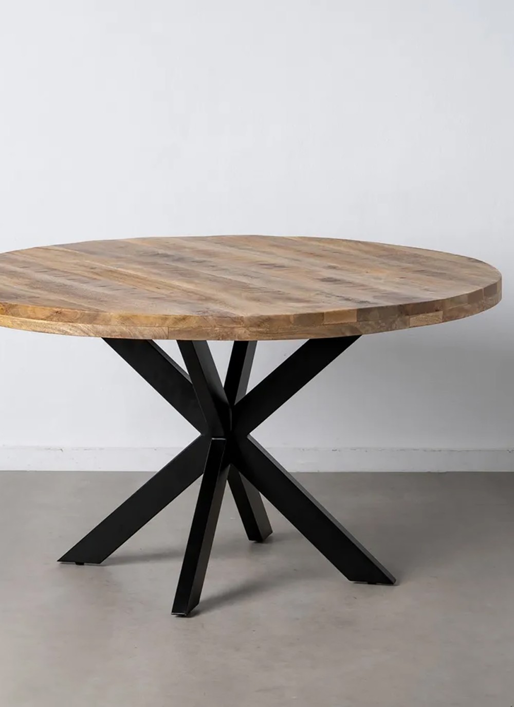 La Mesa Mariana es una pieza emblemática de estilo contemporáneo-natural, fabricada con madera maciza de mango en acabado natural y patas robustas de hierro negro mate. Su superficie, construida con listones de aproximadamente 6 cm de grosor, muestra ligeras variaciones de veta y tono, propias del trabajo artesanal con materiales genuinos.