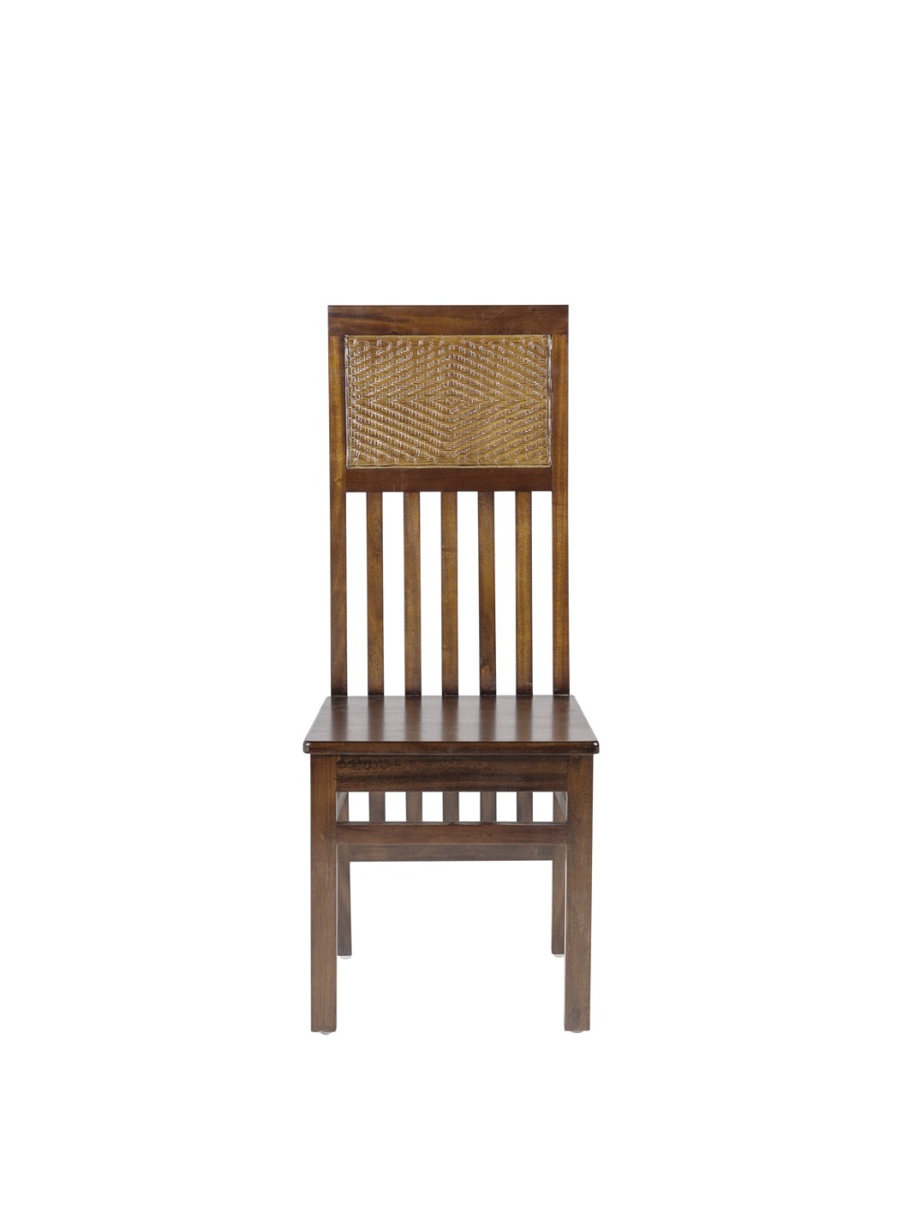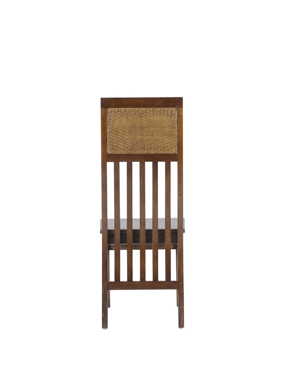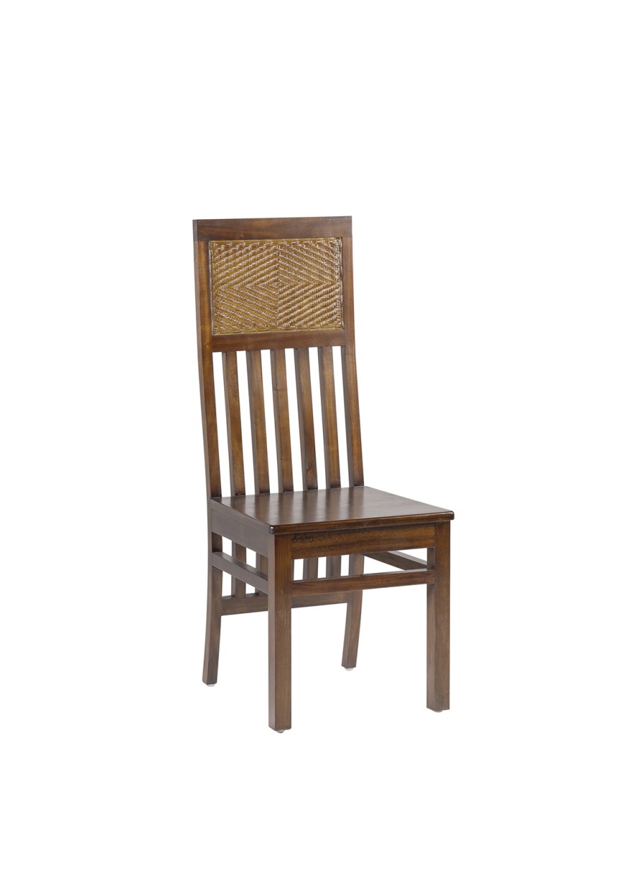 Silla Flamingo Barrotes Verticales Rattan. Disponible otras piezas de la misma colección. Fabricada en madera maciza de caoba. Respaldo de rattan. Altura de asiento 50 cm. Producto hecho a mano.