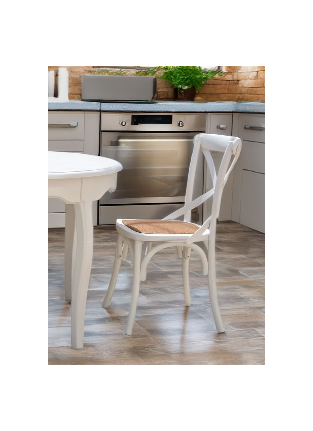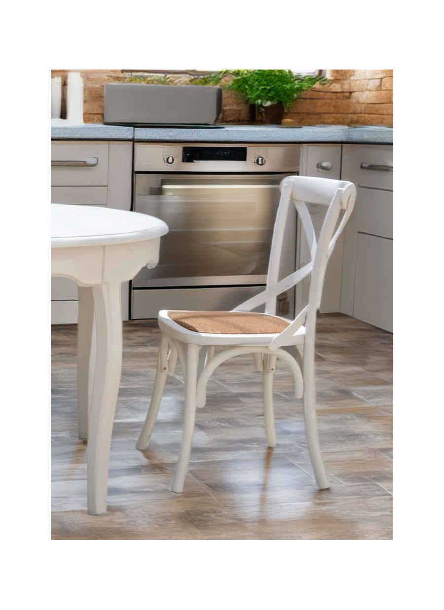 Silla blanca de estilo rústico ideal para espacio exteriores. Disponible otras piezas de la misma colección. No requiere montaje. Peso máximo soportable 130kg. Fabricación realizada a mano.