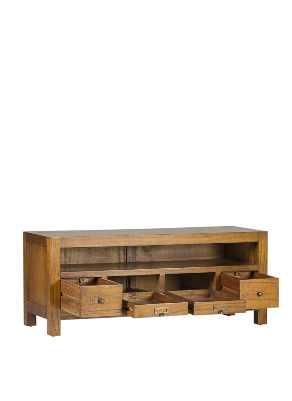 El Mueble TV Star combina estilo y practicidad en un diseño compacto y elegante. Fabricado en materiales de calidad, cuenta con 4 cajones amplios y un hueco central que ofrecen espacio de almacenamiento y organización para dispositivos y accesorios. Sus medidas (110x40x45 cm) lo convierten en la opción perfecta para salones modernos o contemporáneos, aportando funcionalidad sin renunciar al diseño.