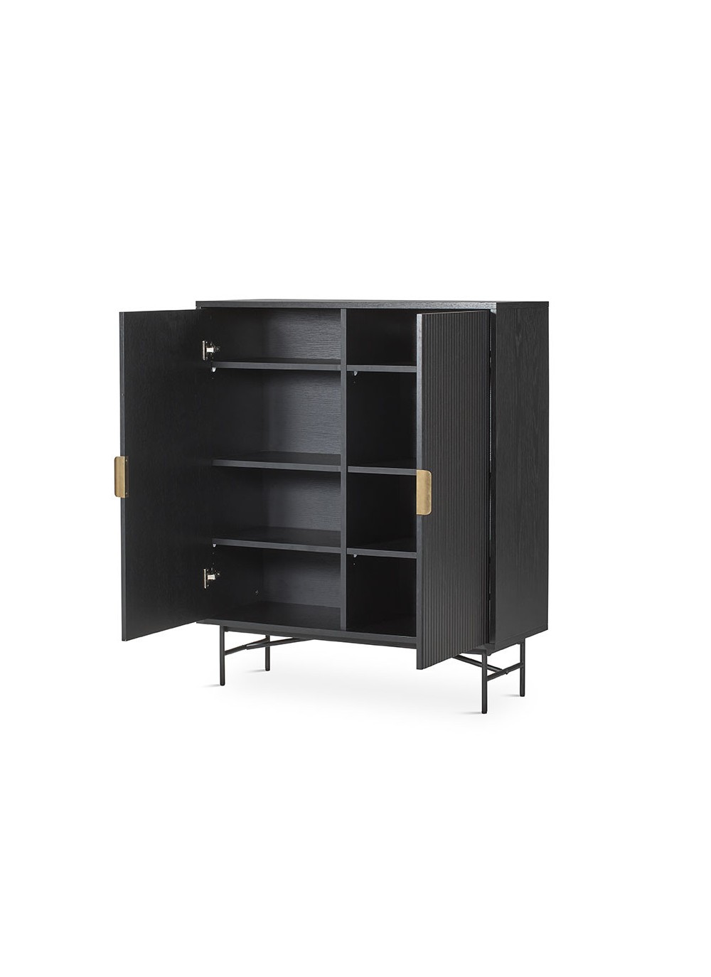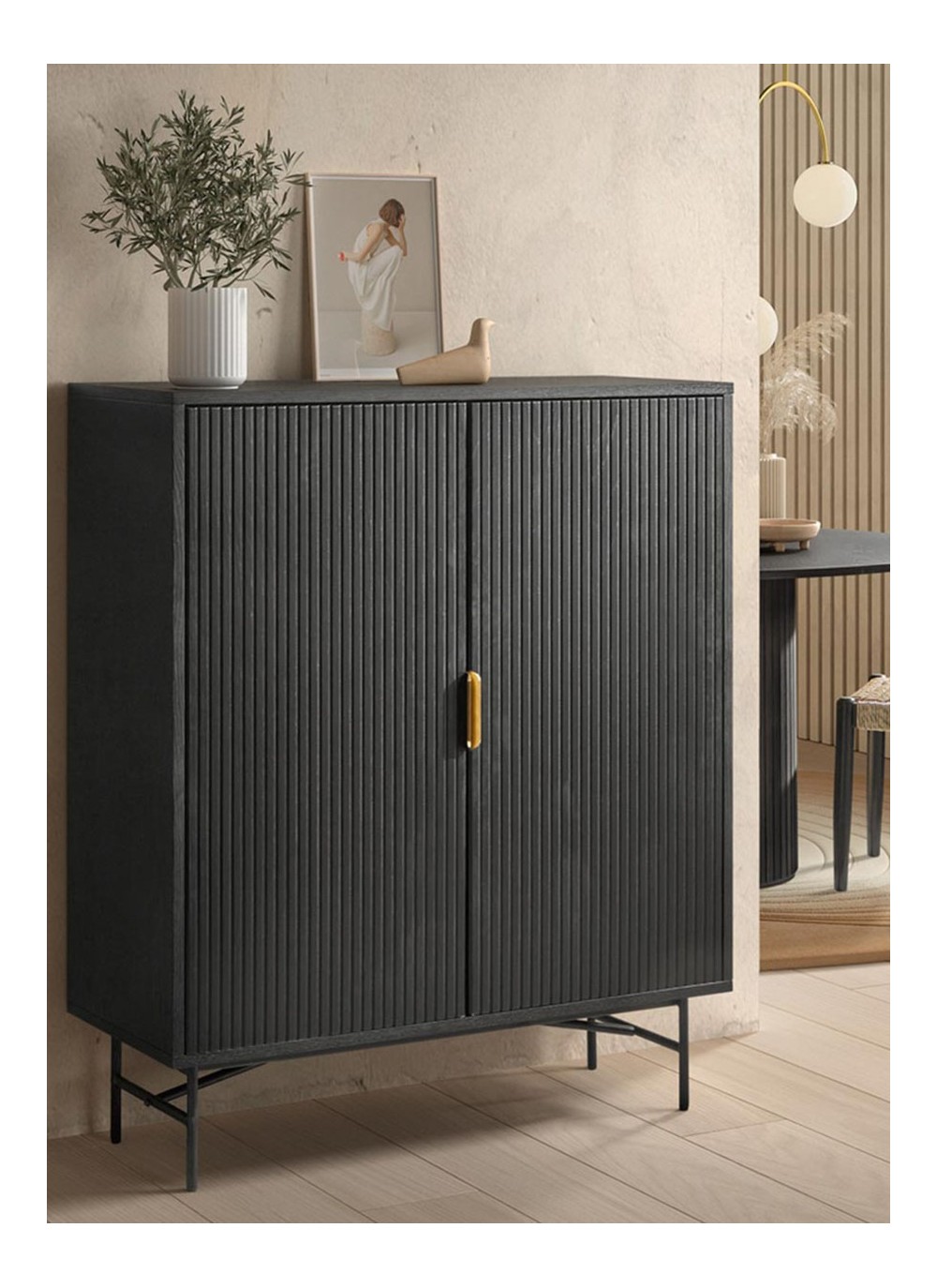 Mueble cubo madera natural con acabado negro elegante. Una pieza perfecta para combinar con ambientes Moderno.