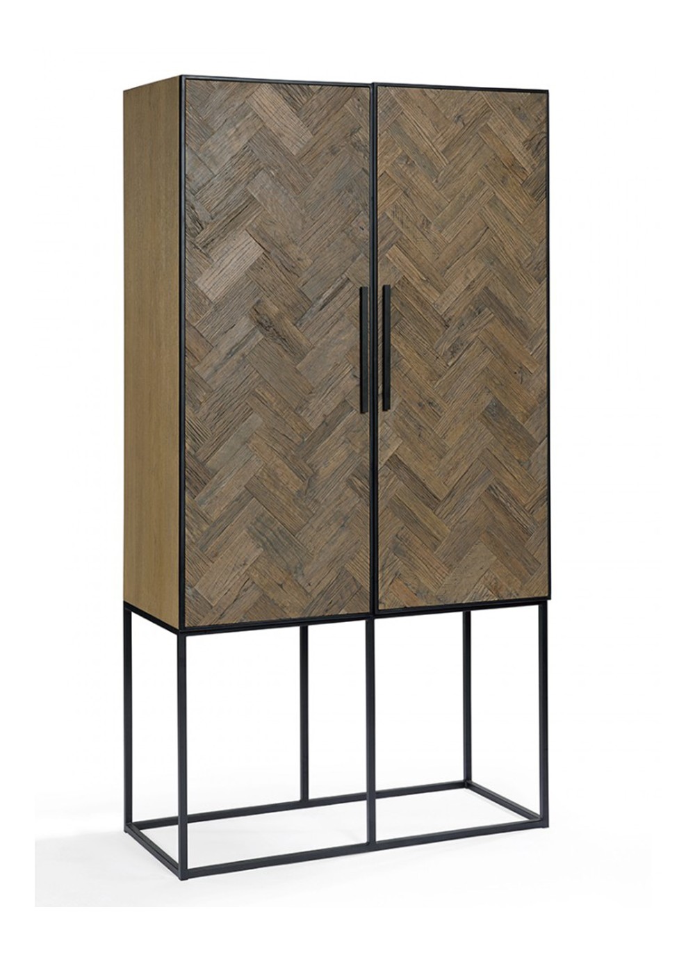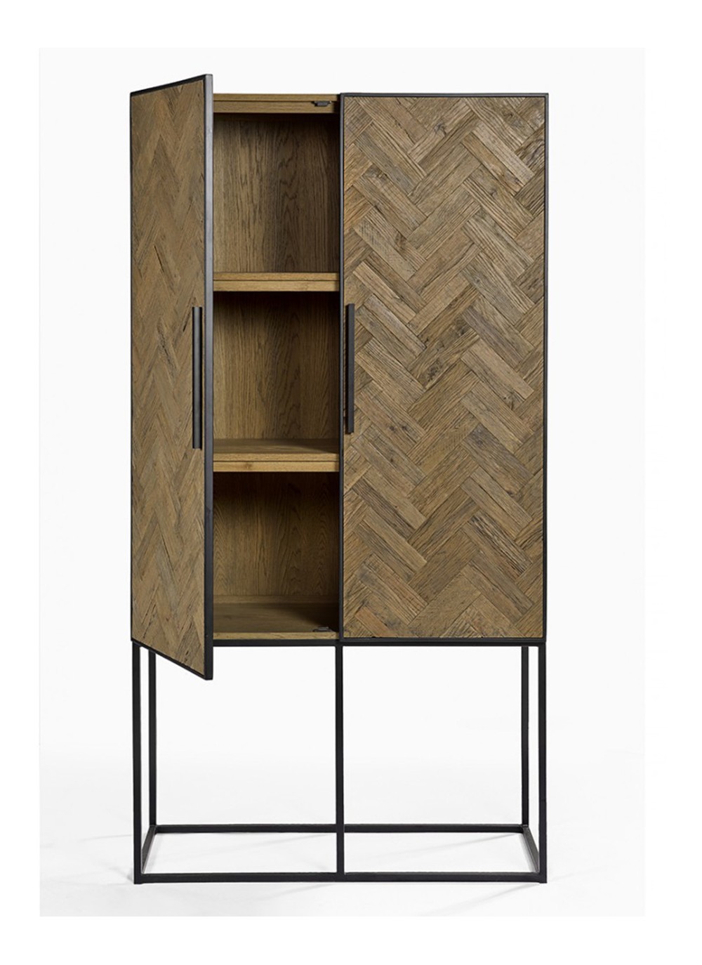 Armario de madera de pino y metal con dos puertas abatibles. Armario moderno y actual, de líneas rectas y depuradas. Ideal para el almacenaje gracias a sus baldas interiores que distinguen 3 áreas en su interior. Sencillo y moderno, la combinación perfecta.