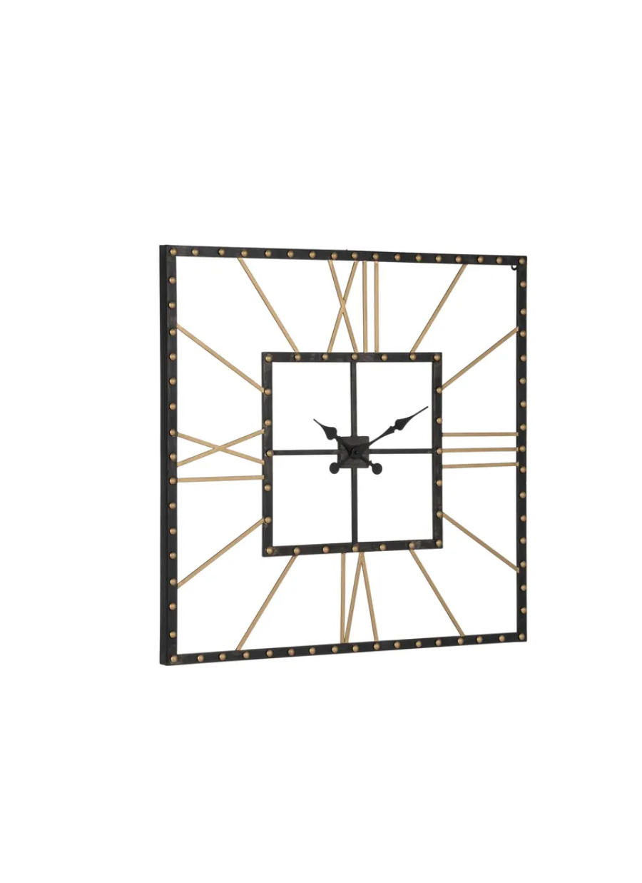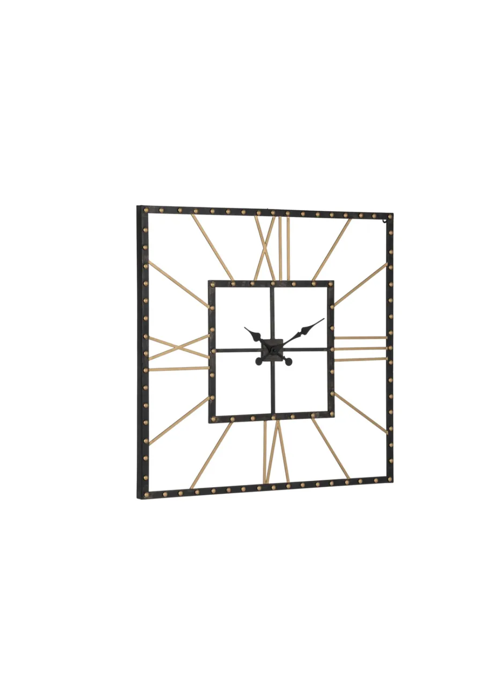 Este reloj de pared presenta un diseño esqueleto grande y contemporáneo, con una estructura metálica negra mate que define círculos concéntricos abiertos, enmarcando números de estilo retro o romanos con elegancia minimalista. Con un diámetro de 80 cm y apenas 3,5 cm de profundidad, se impone como una pieza visual sofisticada, ligera y de gran impacto decorativo.
