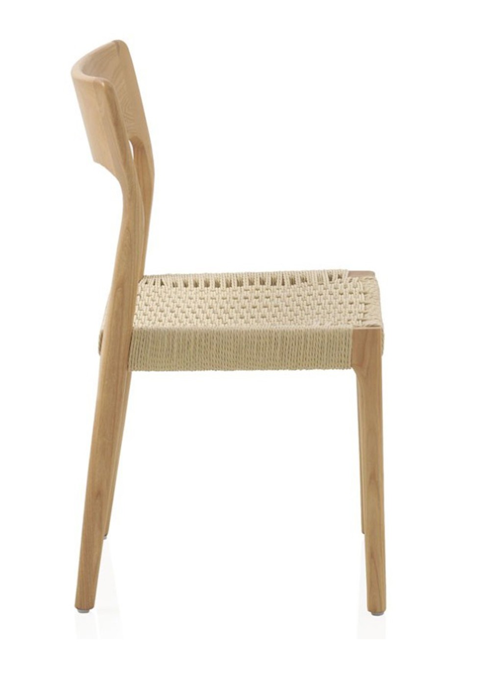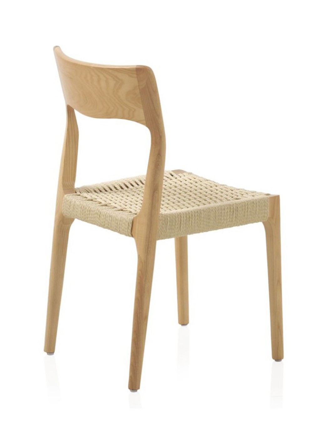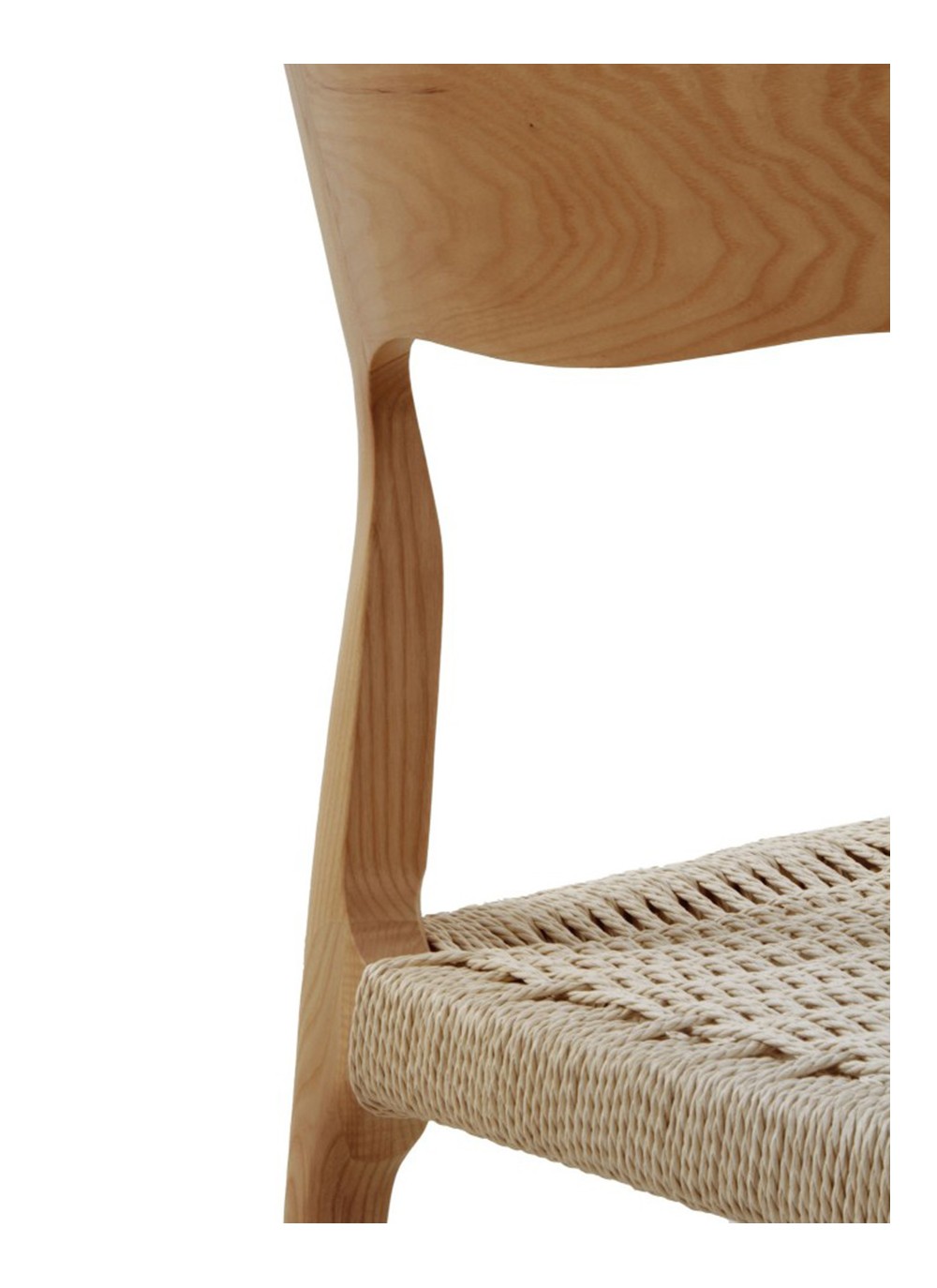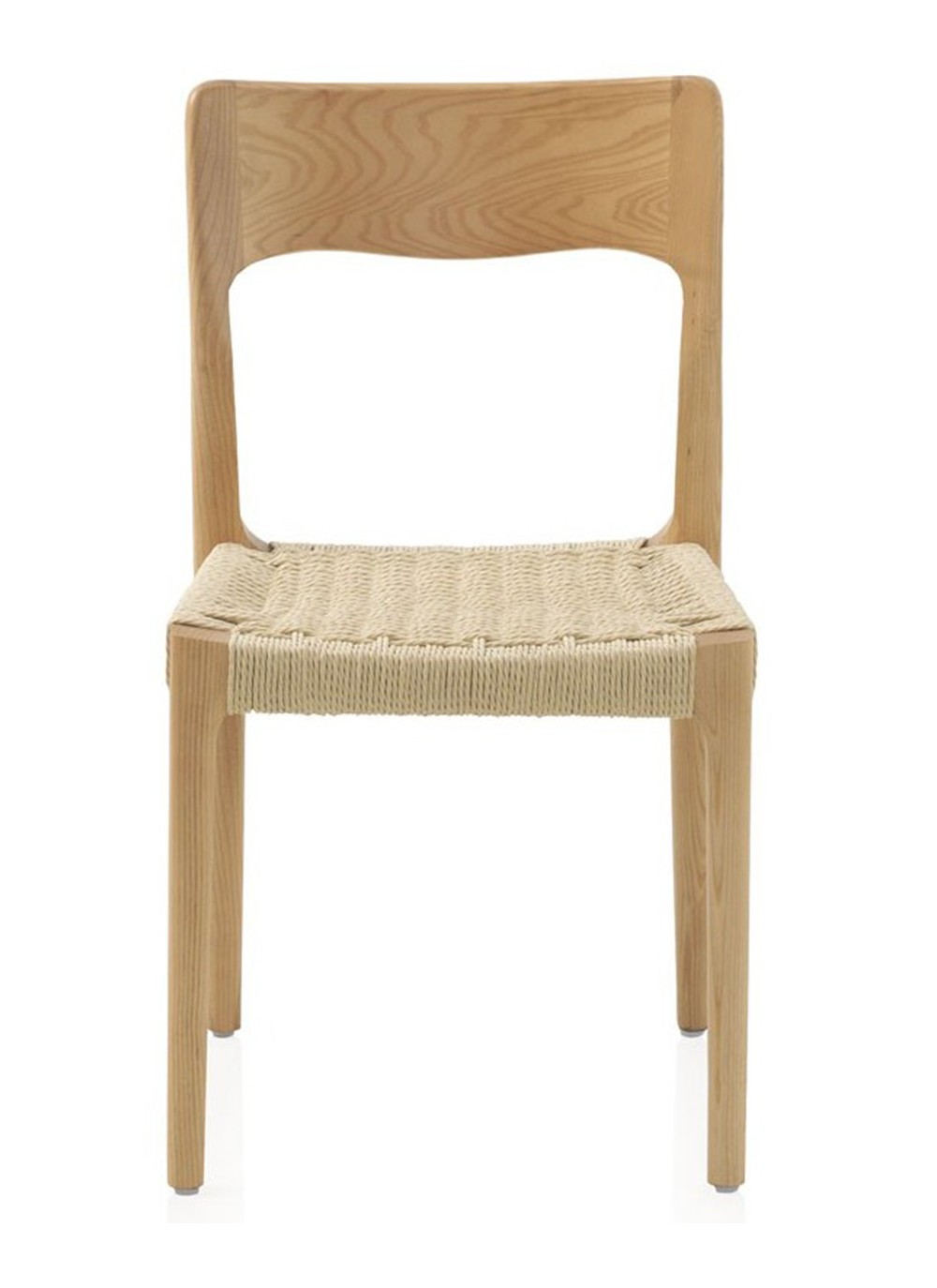 Silla de madera maciza de fresno y asiento trenzado de cuerda.