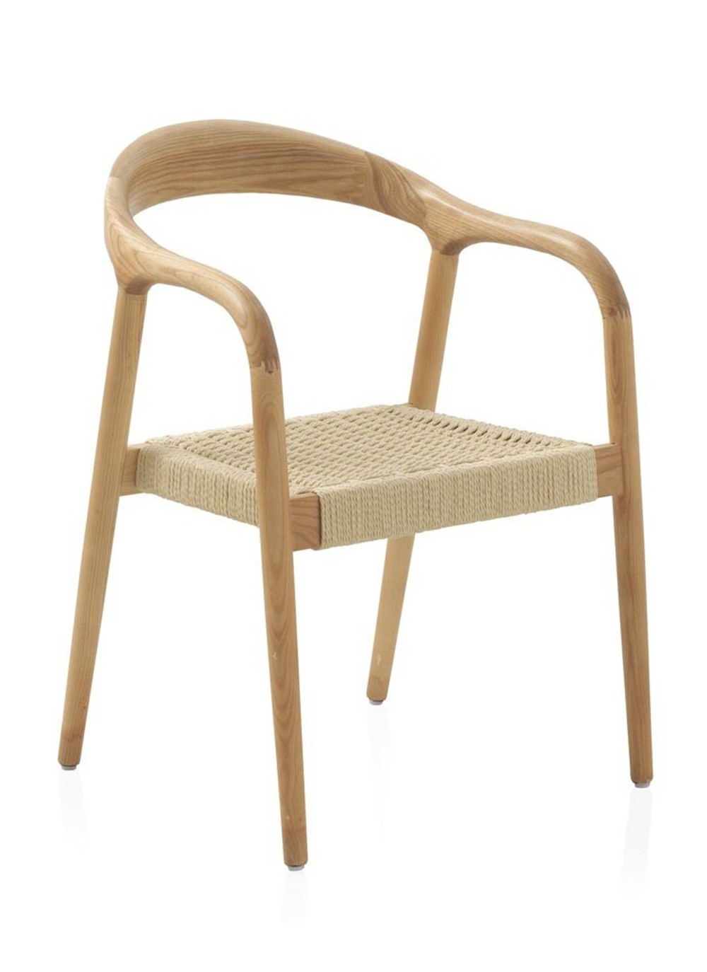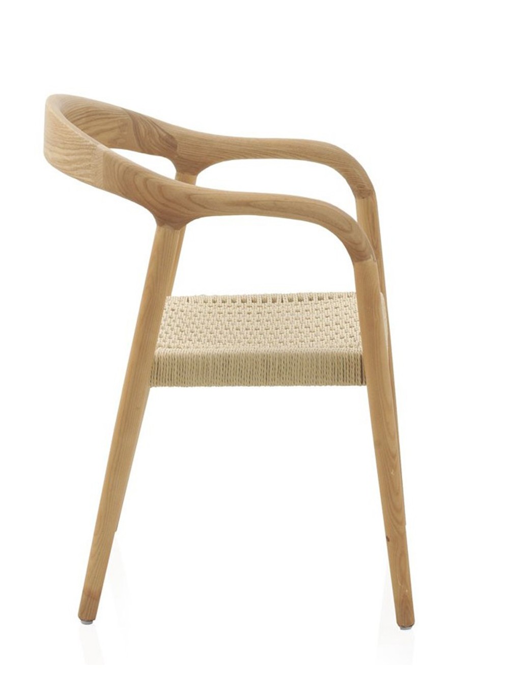 Silla Madera de Fresno con Asiento Trenzado ideal para espacios de estilo mediterráneo.