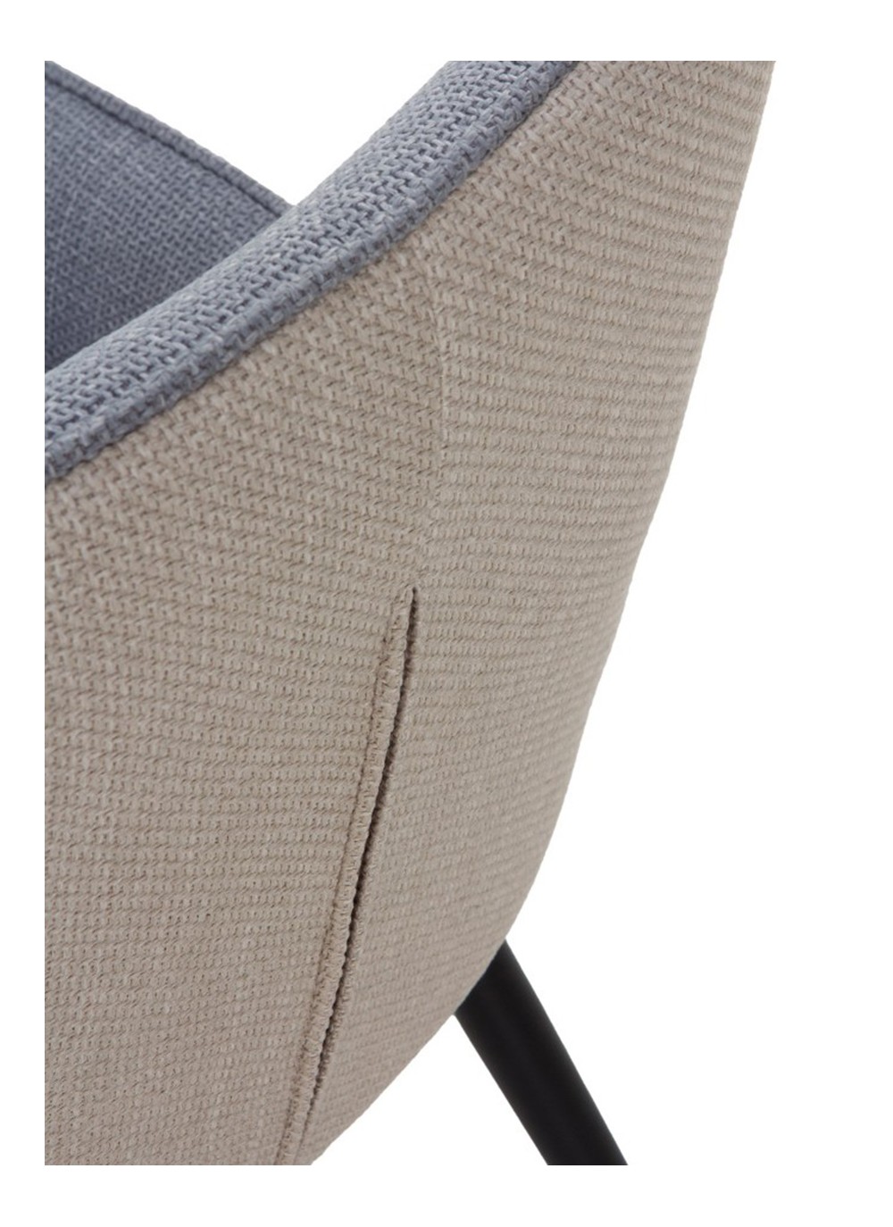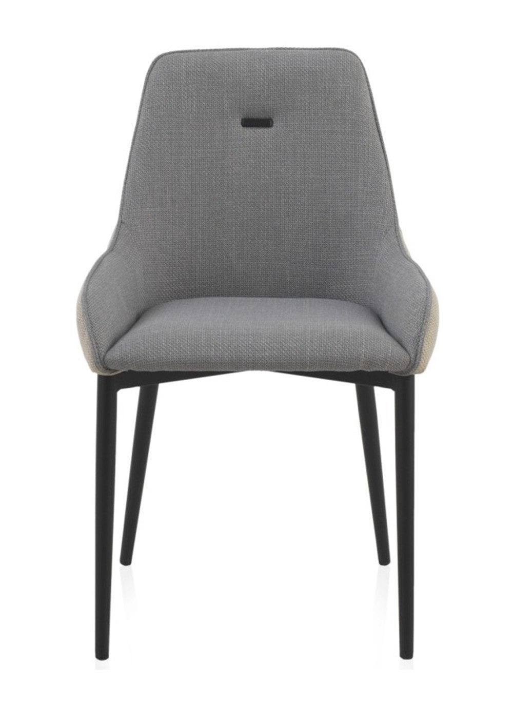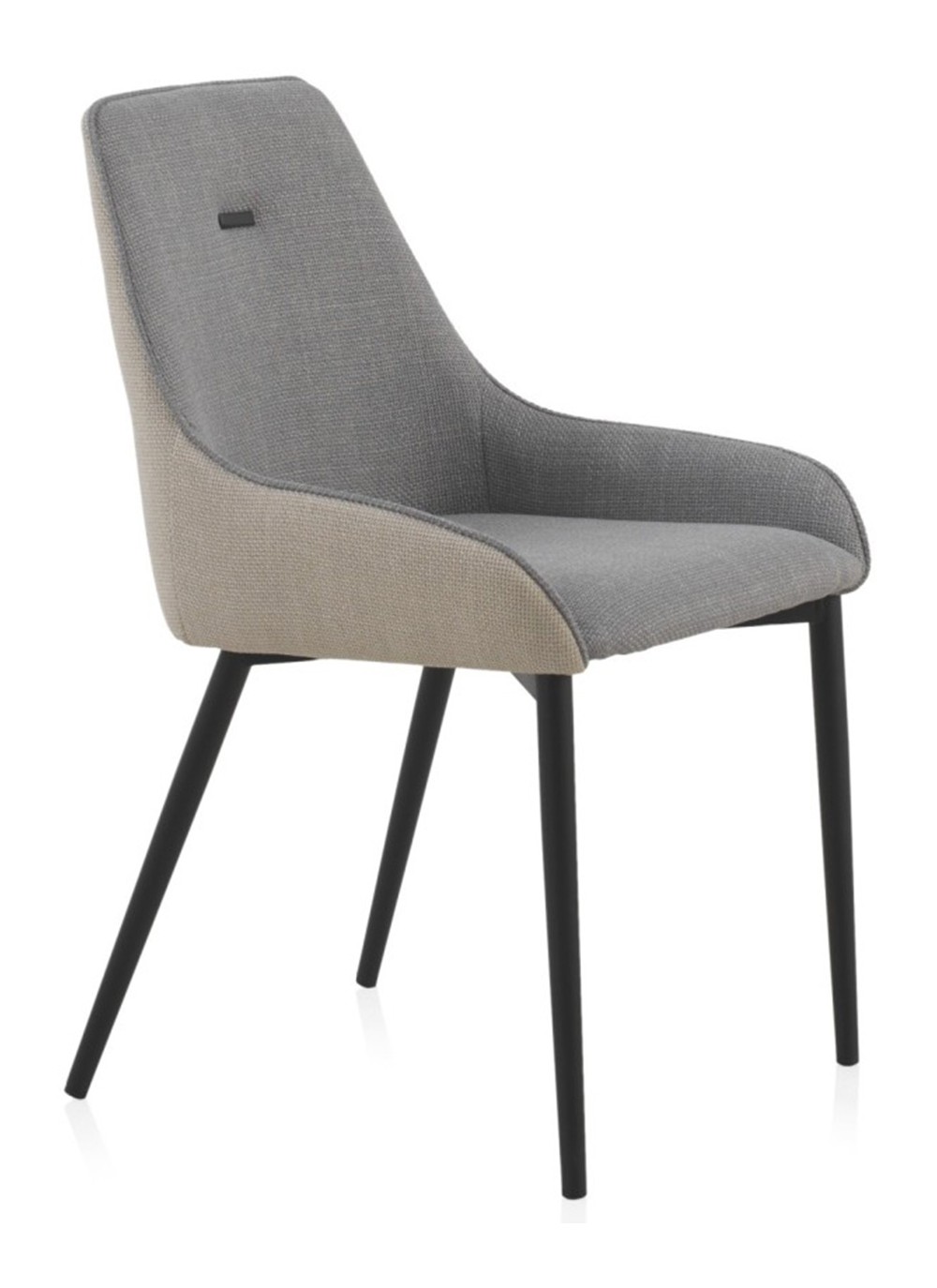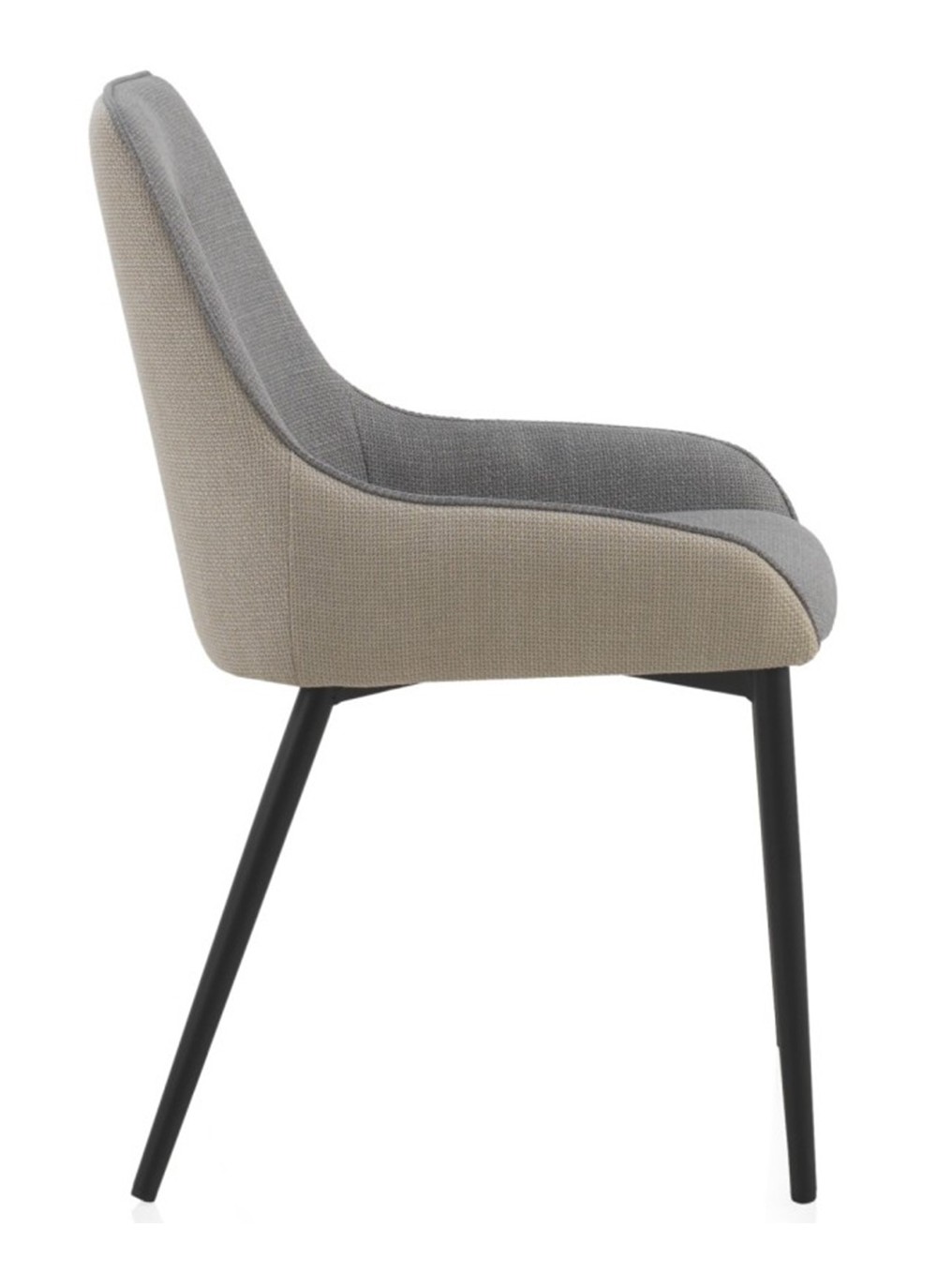Silla Tapizada Bicolor Beige/Gris Patas Metalicas Negras, asiento tapizado acolchado.