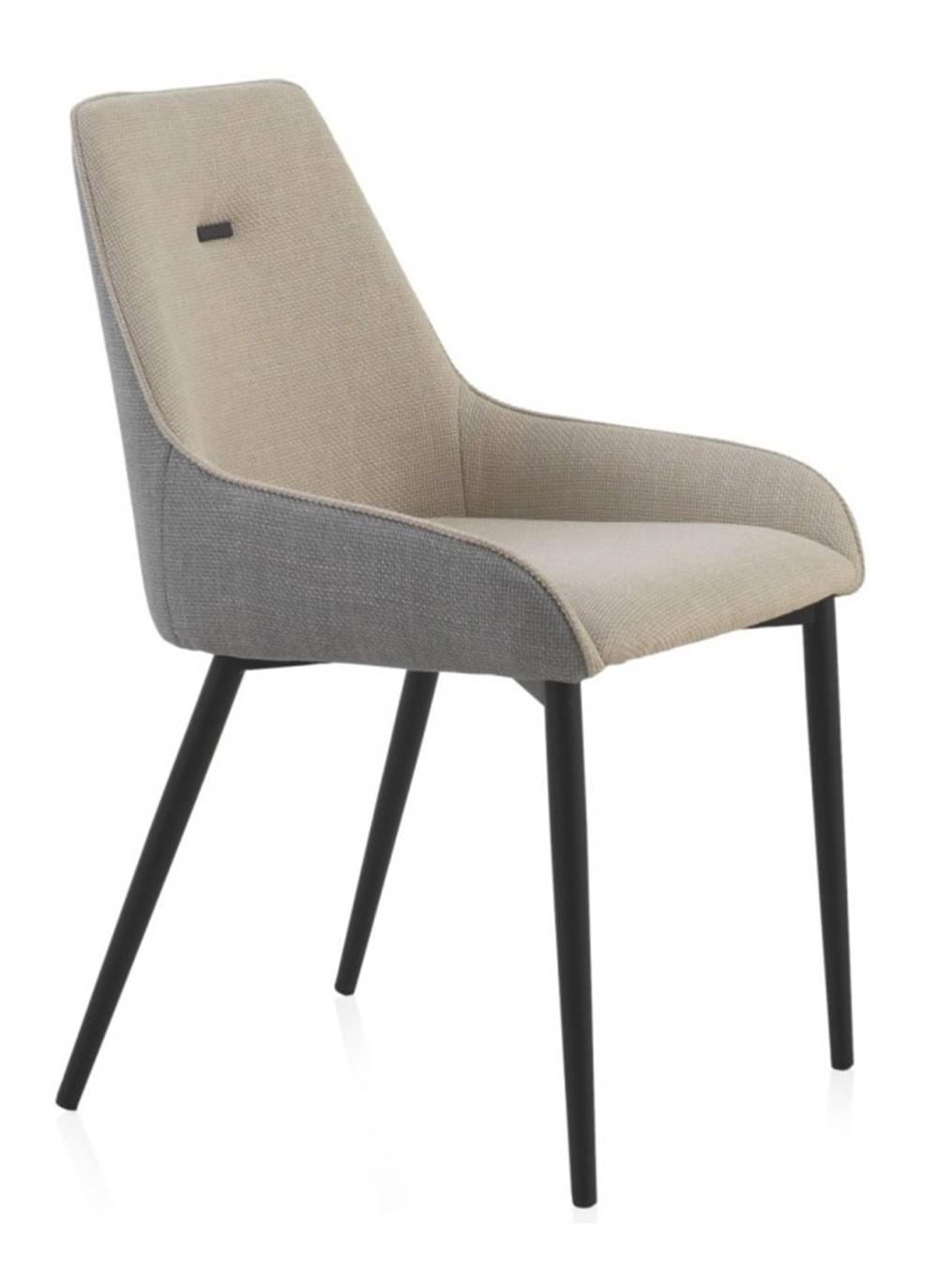 Pack 4 Sillas Tapizadas Bicolor Gris/Beige Patas Metalicas Negras, con asiento acolchado.
