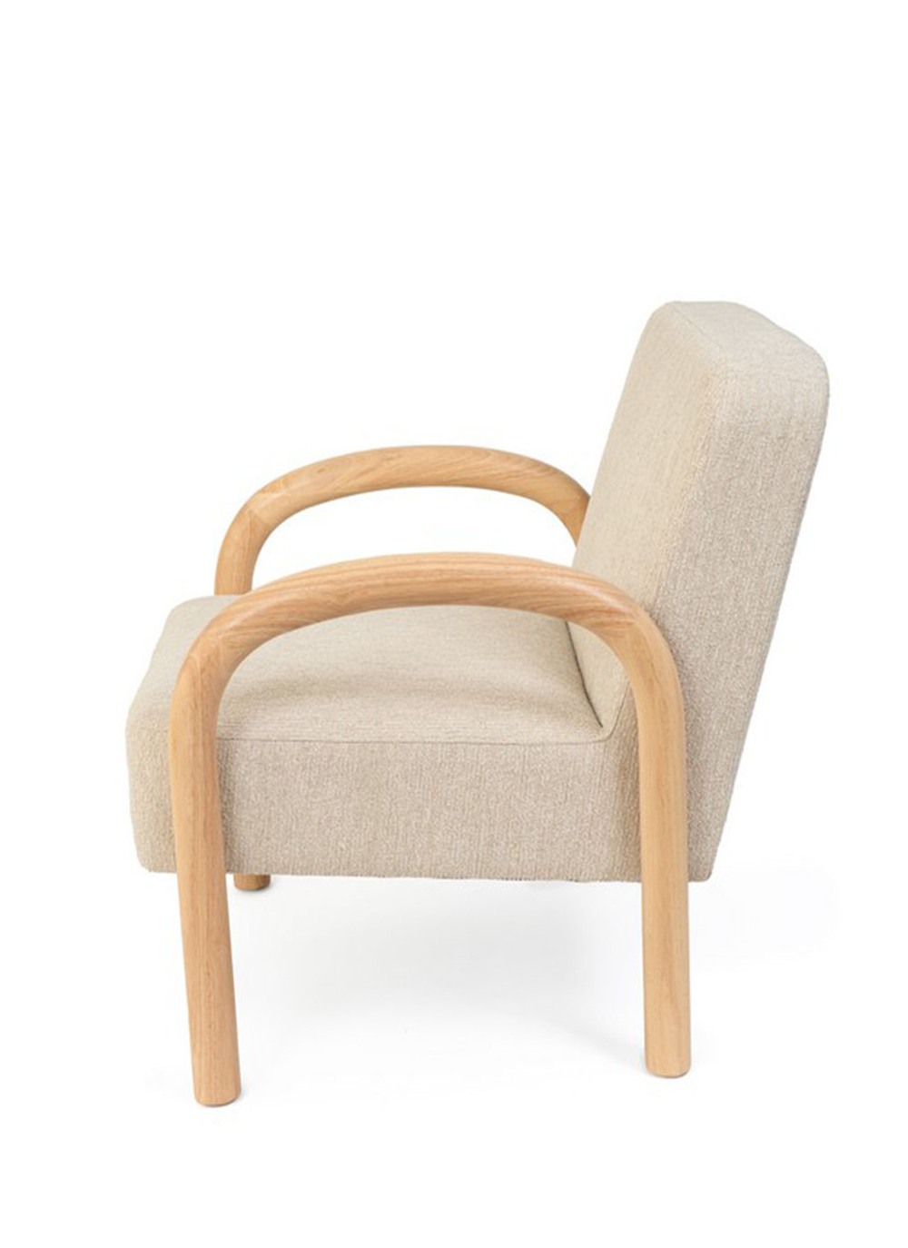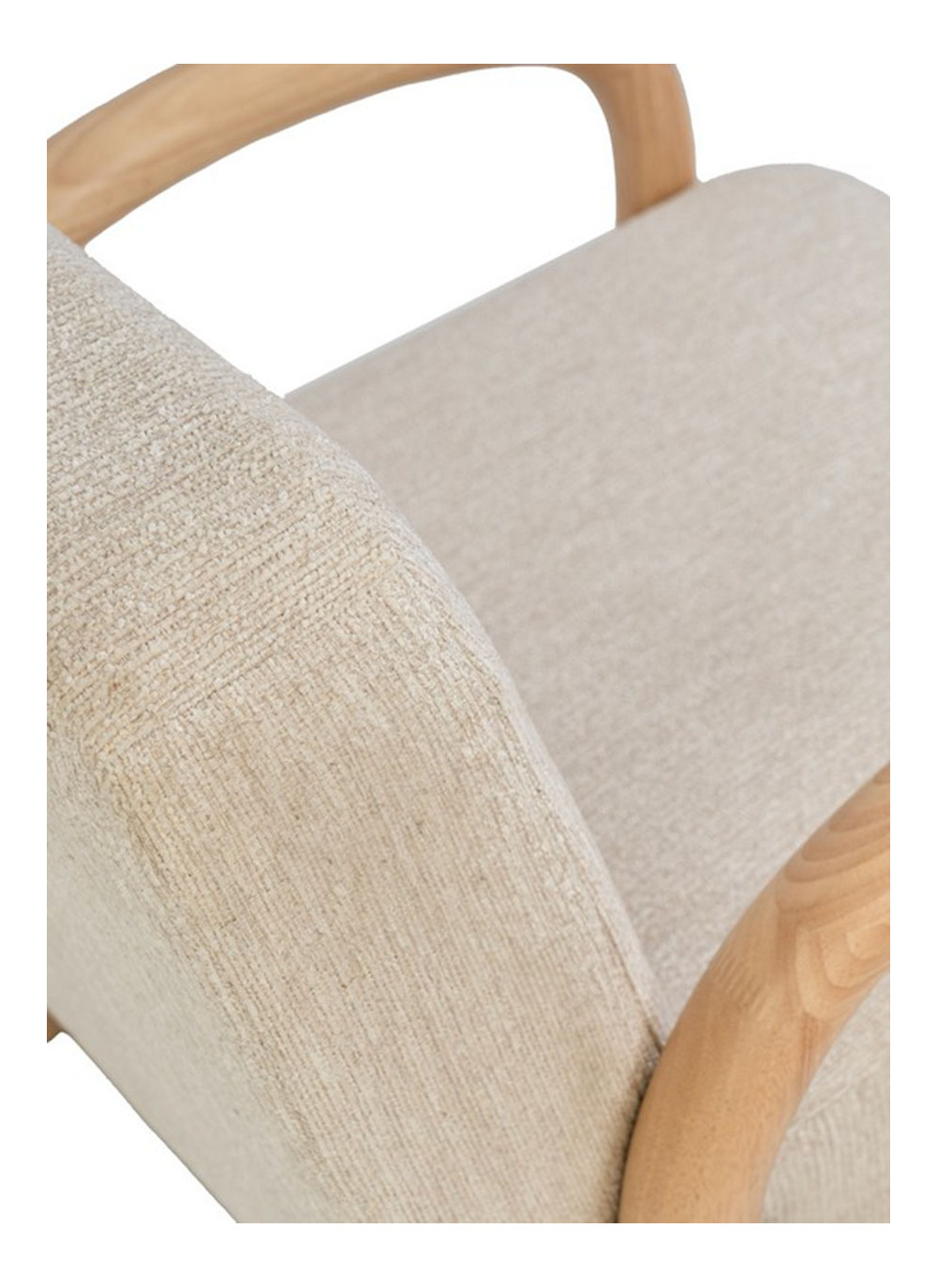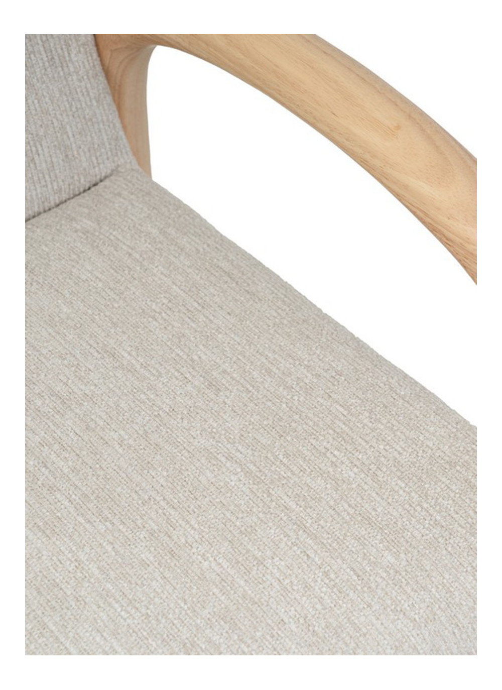 La butaca Corfou combina líneas suaves con un diseño vibrante que destaca en cualquier ambiente. Sus patas redondeadas de madera de hevea natural, con un diámetro de 5,5 cm, aportan no solo solidez estructural, sino también un aire cálido y orgánico que se integra a la perfección en espacios de estilo nórdico o japandi.