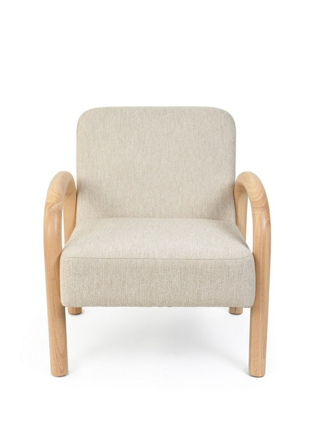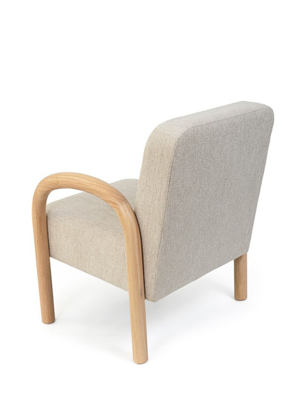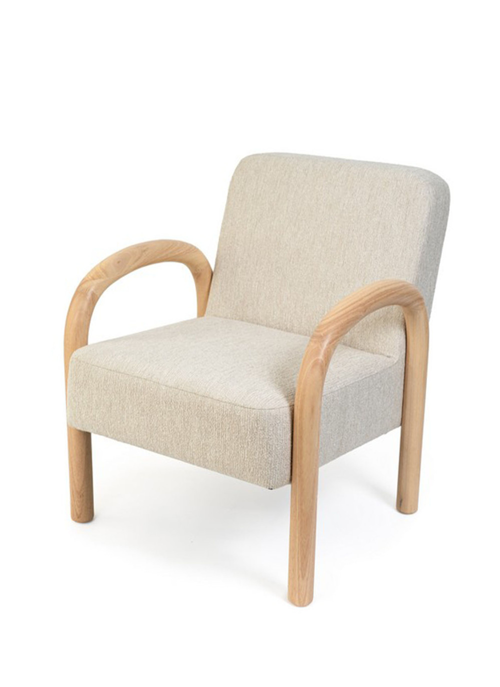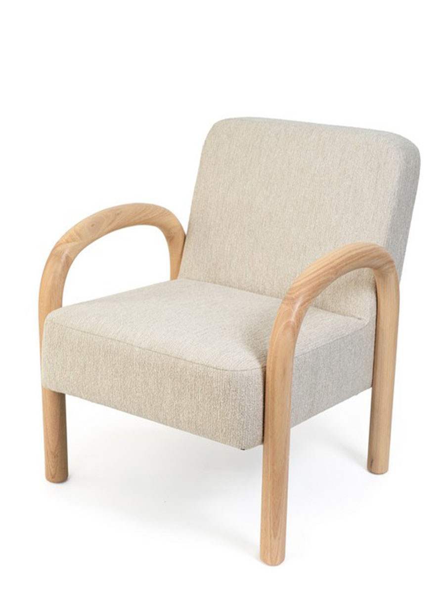 La butaca Corfou combina líneas suaves con un diseño vibrante que destaca en cualquier ambiente. Sus patas redondeadas de madera de hevea natural, con un diámetro de 5,5 cm, aportan no solo solidez estructural, sino también un aire cálido y orgánico que se integra a la perfección en espacios de estilo nórdico o japandi.