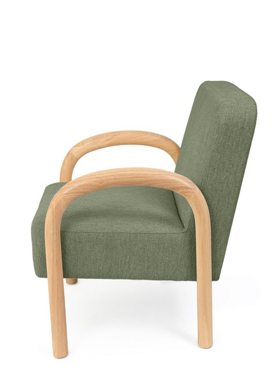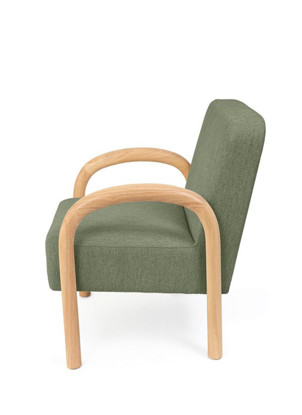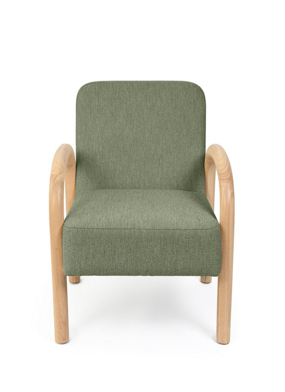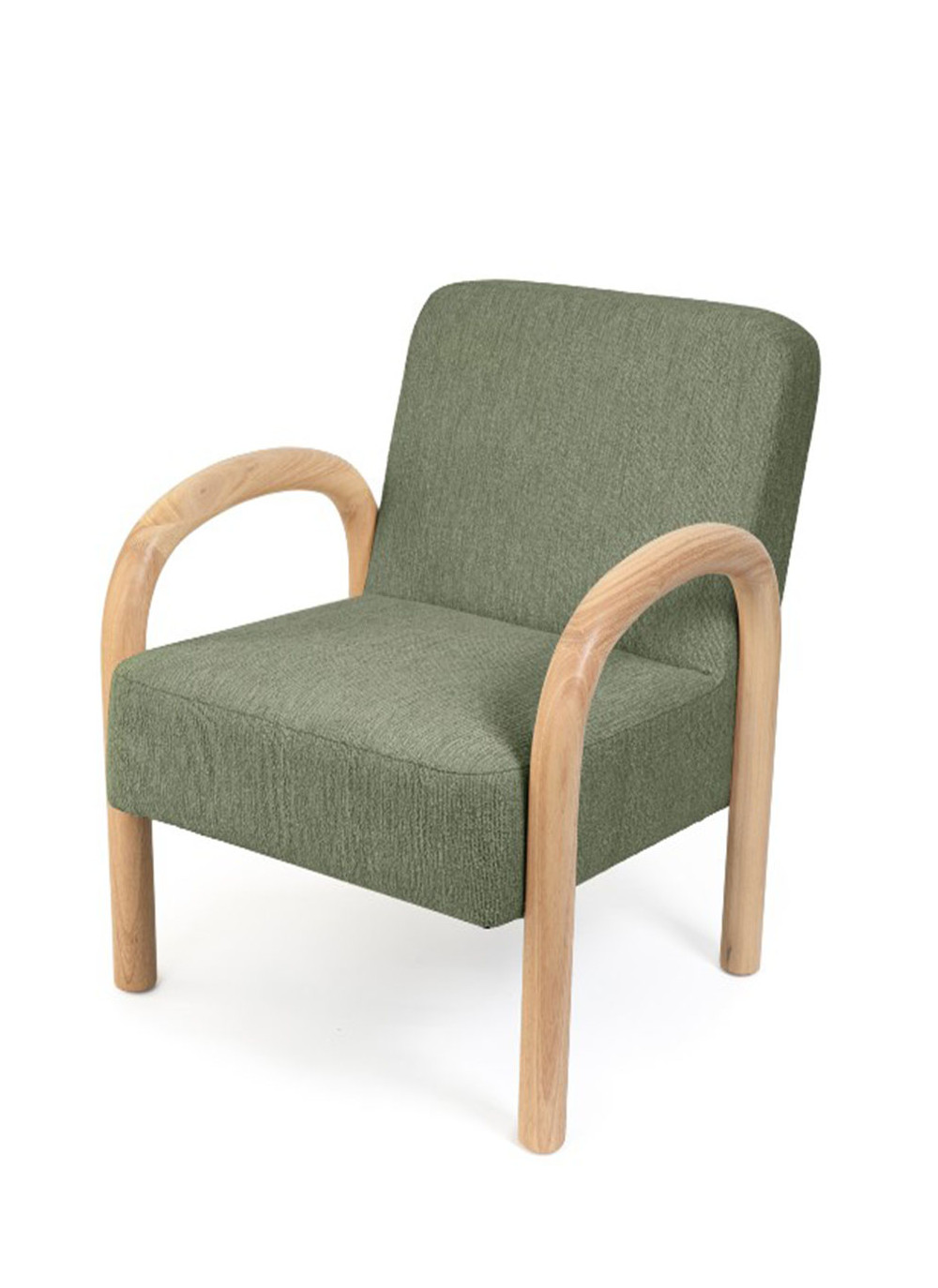 El Sillon Corfou combina líneas suaves con un diseño vibrante que destaca en cualquier ambiente. Sus patas redondeadas de madera de hevea natural, con un diámetro de 5,5 cm, aportan no solo solidez estructural, sino también un aire cálido y orgánico que se integra a la perfección en espacios de estilo nórdico o japandi.