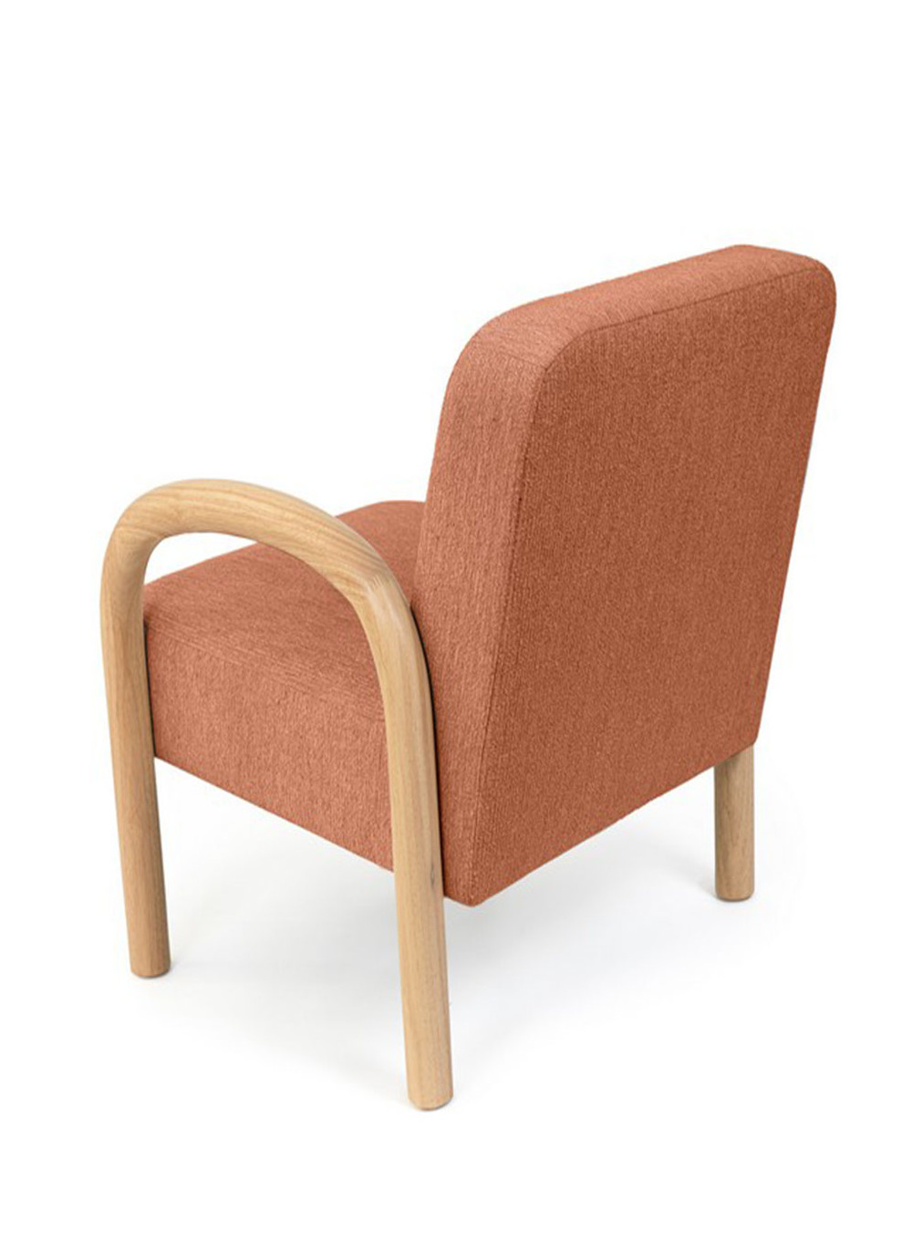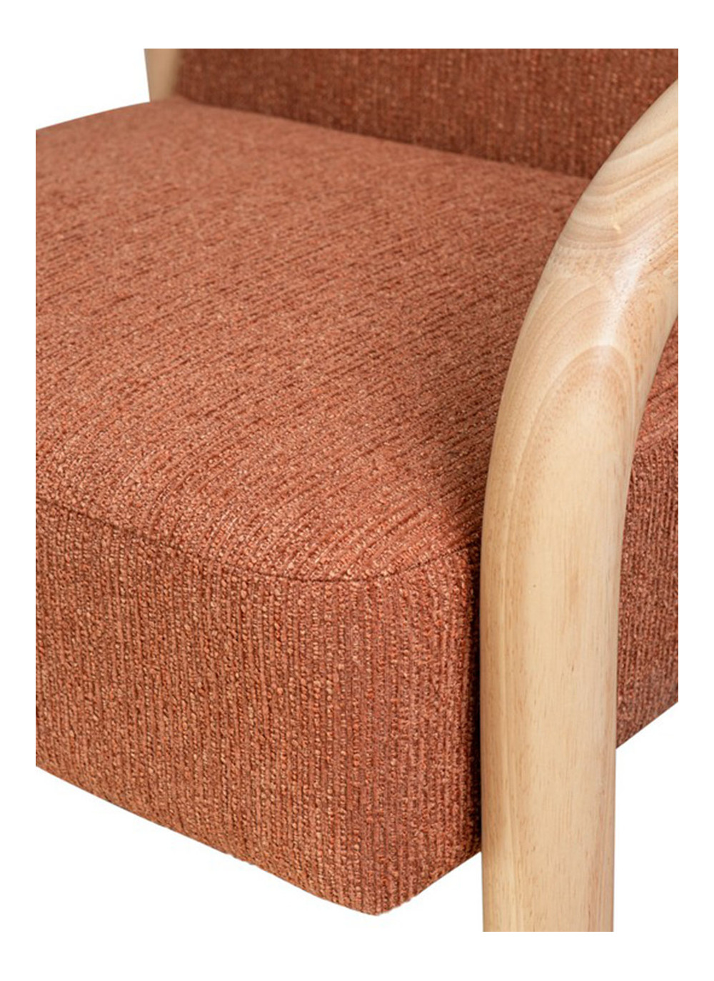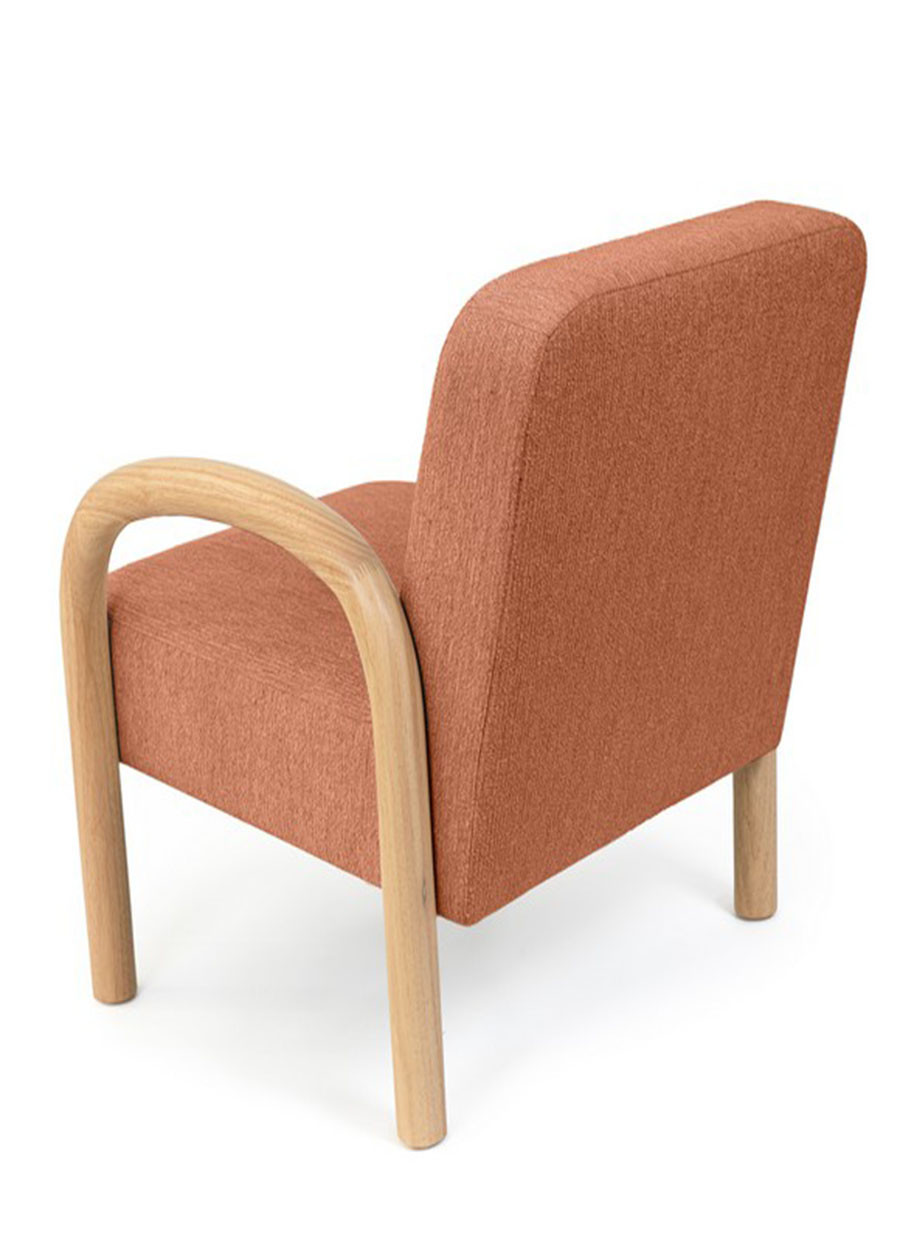 Materiales: Tela terracota y reposabrazos de madera.