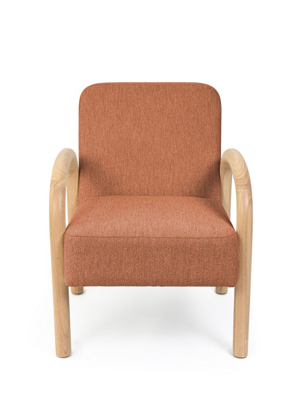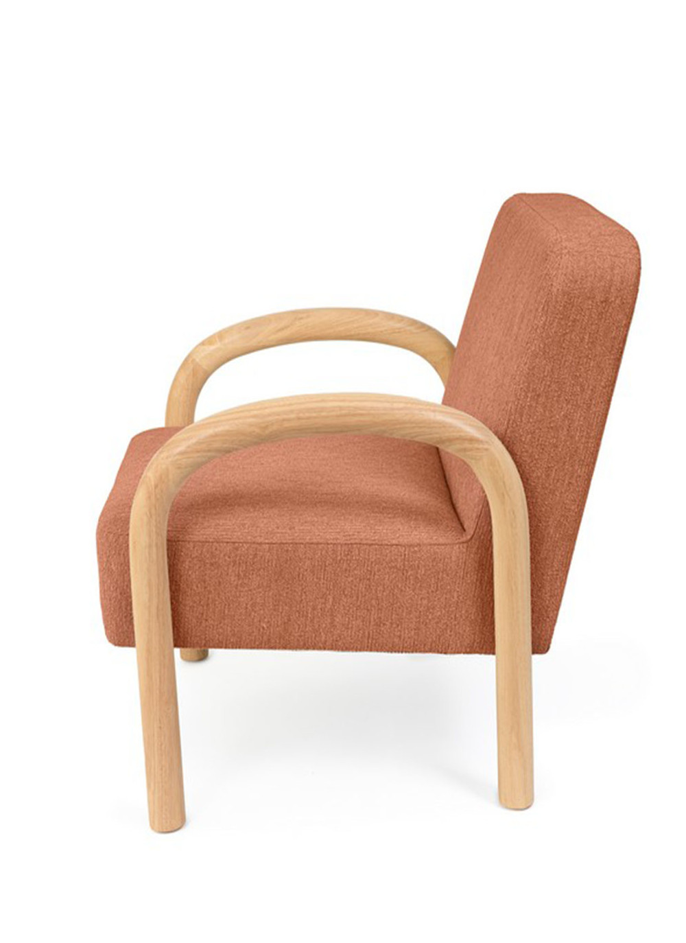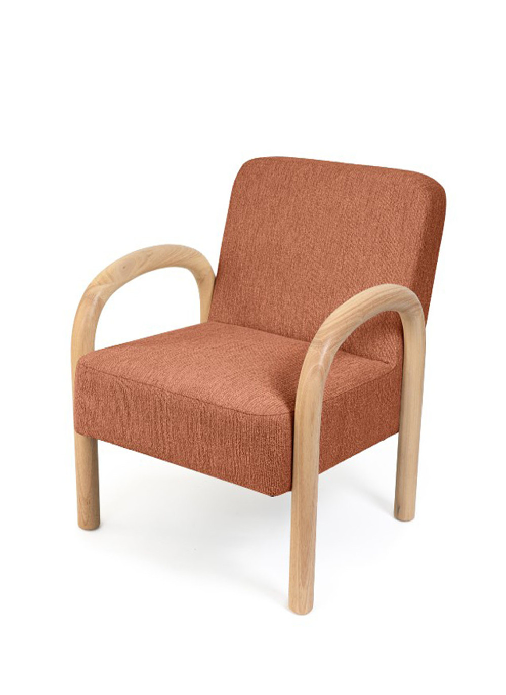 Materiales: Tela terracota y reposabrazos de madera.