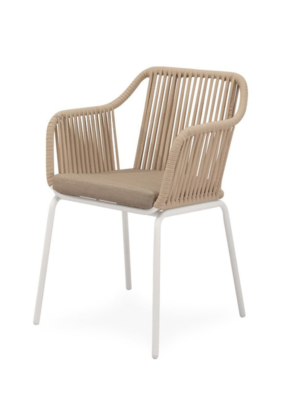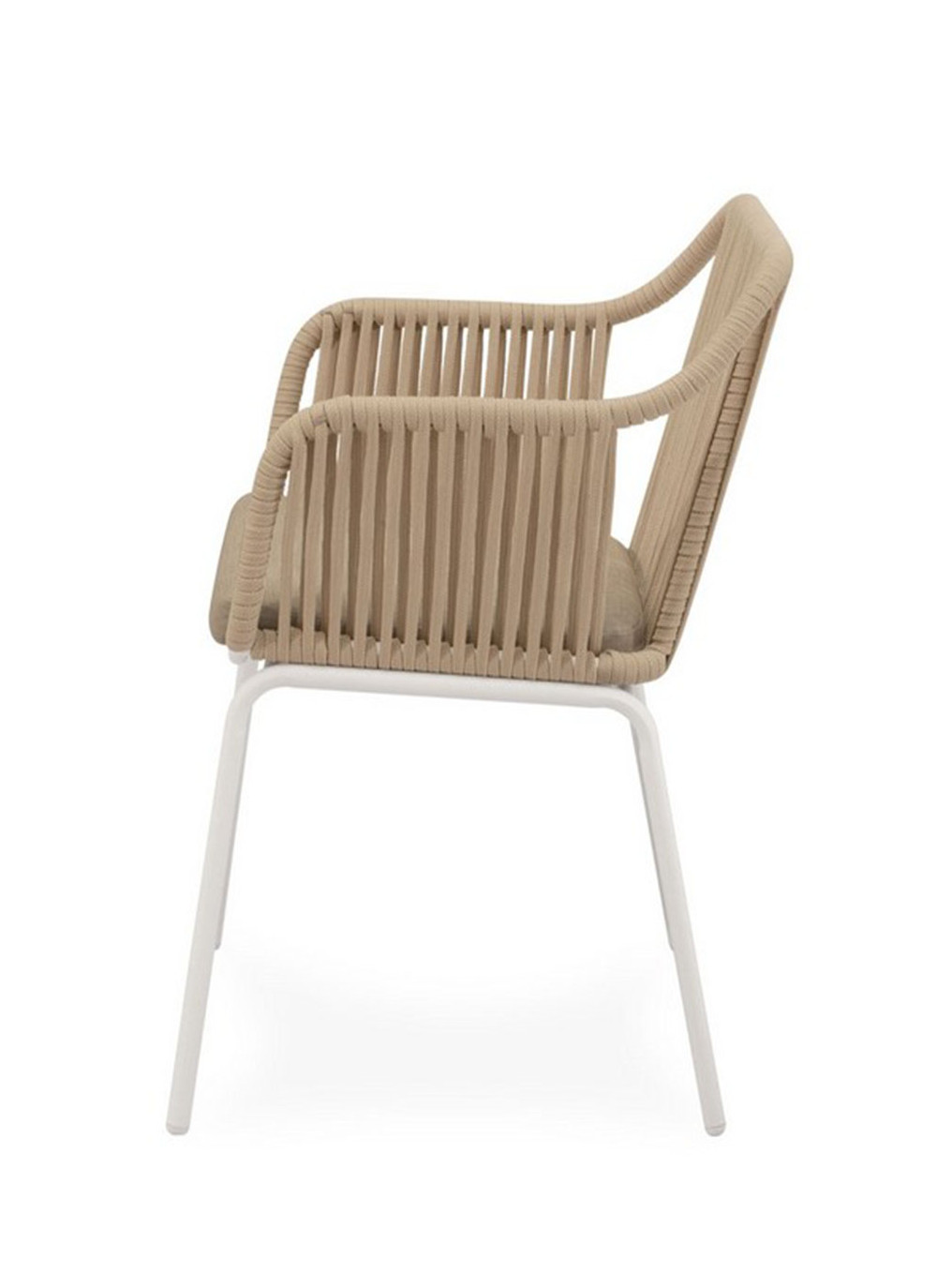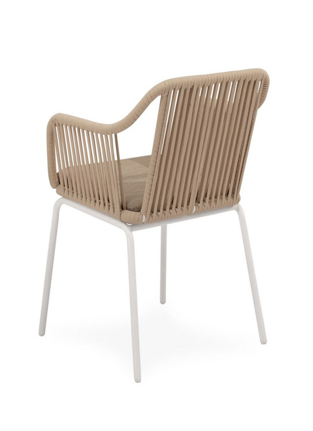 La silla Swann redefine la comodidad con un diseño que envuelve suavemente al usuario. Su respaldo y reposabrazos presentan una estructura compuesta por líneas verticales de cuerda que se curvan de manera orgánica, creando un efecto visual atractivo y proporcionando un soporte firme y ergonómico. Este diseño fluido y continuo ofrece un abrazo acogedor que invita a relajarse mientras mantiene una estética moderna y ligera.