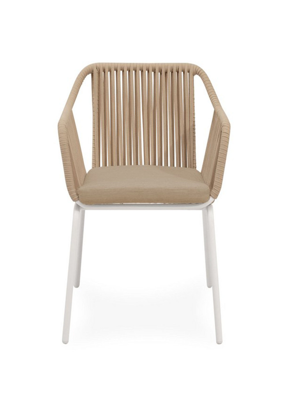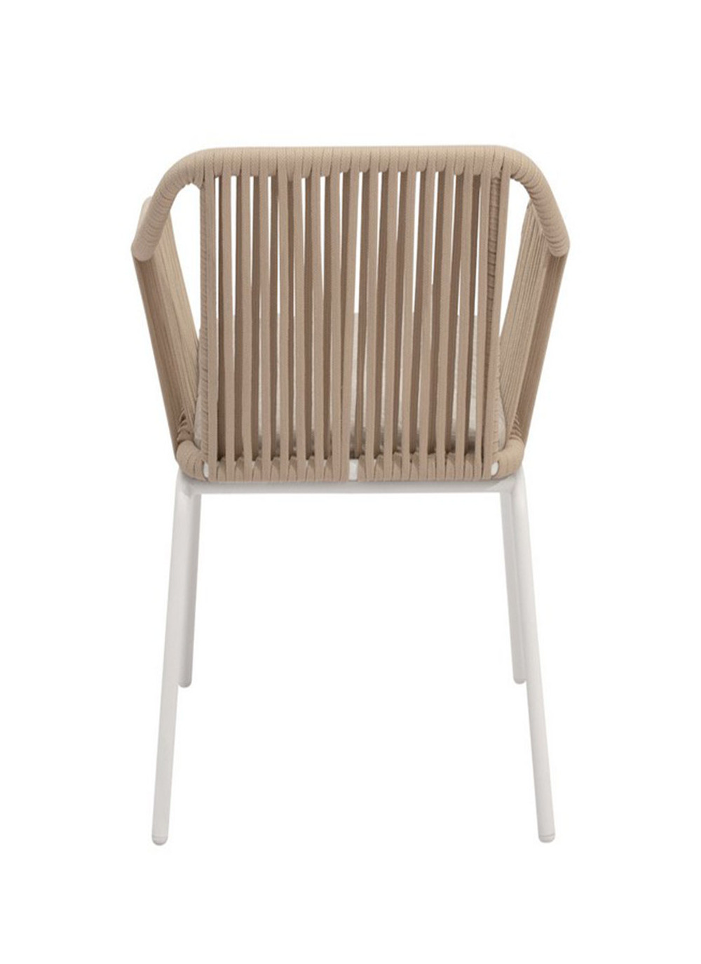 Las patas de acero especialmente tratado para resistir a la intemperie, refuerzan la estructura, aportando estabilidad y un contraste elegante con el tejido de cuerda.