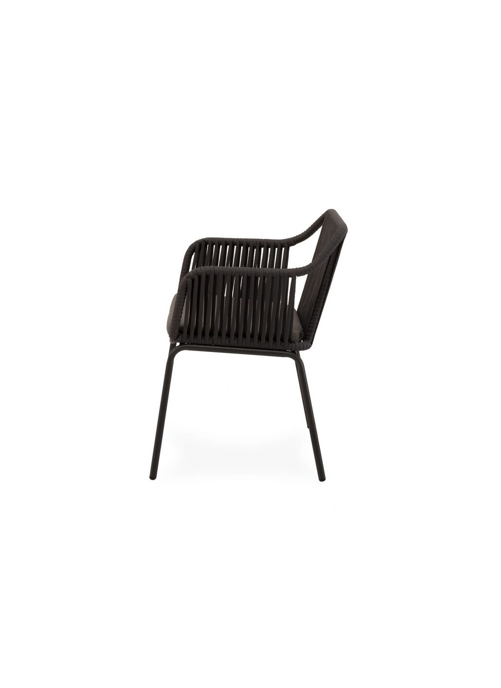 La silla Swann redefine la comodidad con un diseño que envuelve suavemente al usuario. Su respaldo y reposabrazos presentan una estructura compuesta por líneas verticales de cuerda que se curvan de manera orgánica, creando un efecto visual atractivo y proporcionando un soporte firme y ergonómico. Este diseño fluido y continuo ofrece un abrazo acogedor que invita a relajarse mientras mantiene una estética moderna y ligera.