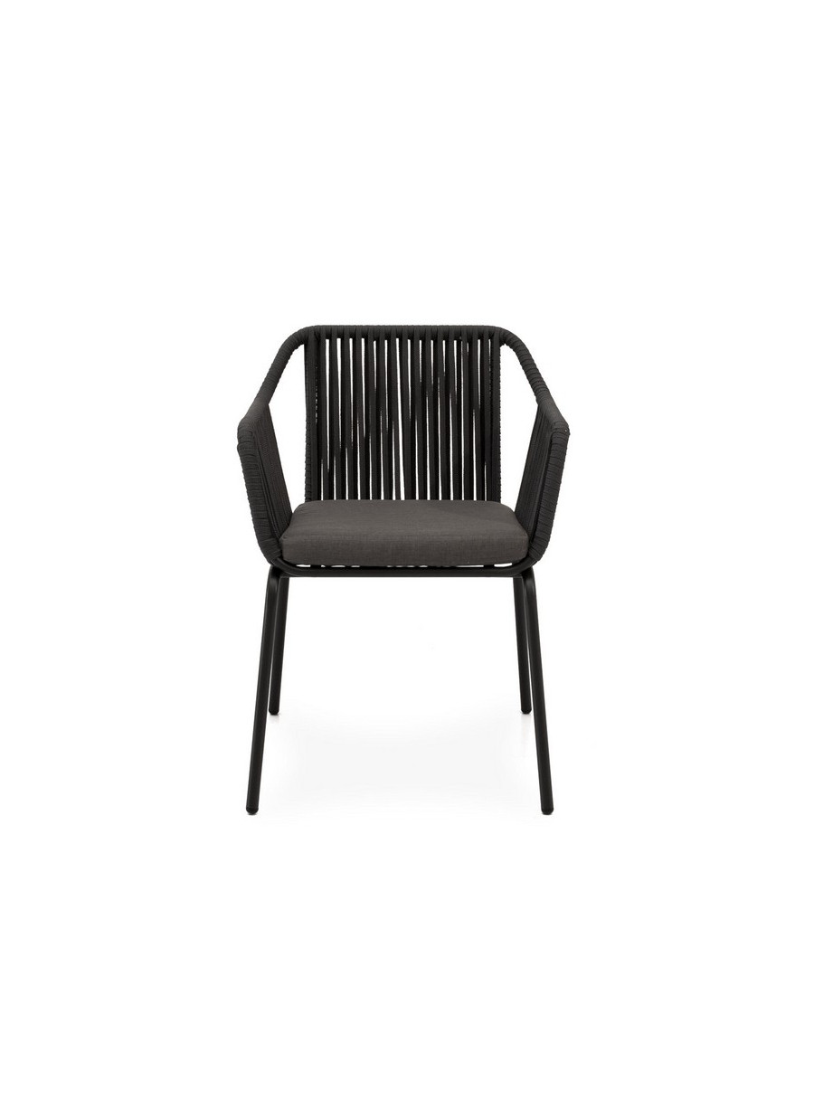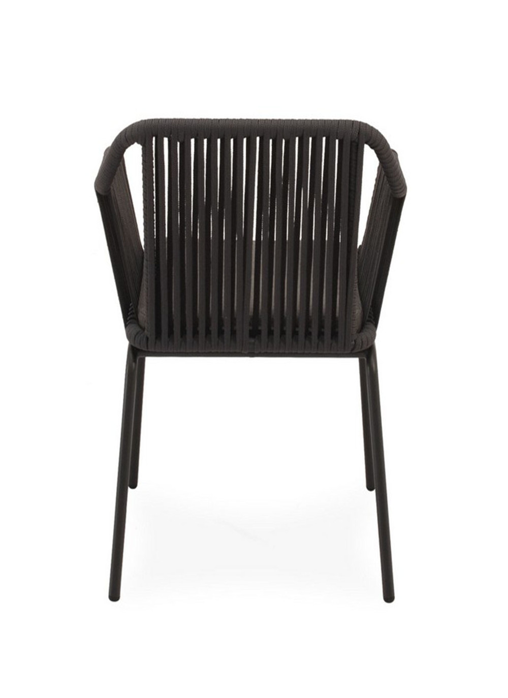 Las patas de acero especialmente tratado para resistir a la intemperie, refuerzan la estructura, aportando estabilidad y un contraste elegante con el tejido de cuerda.