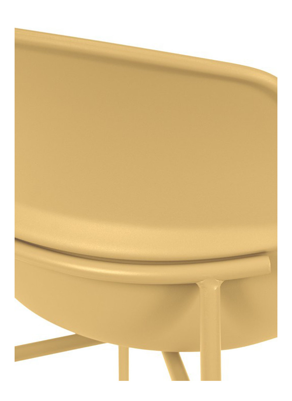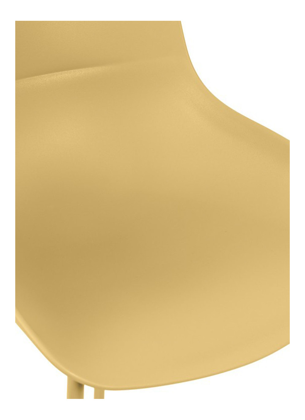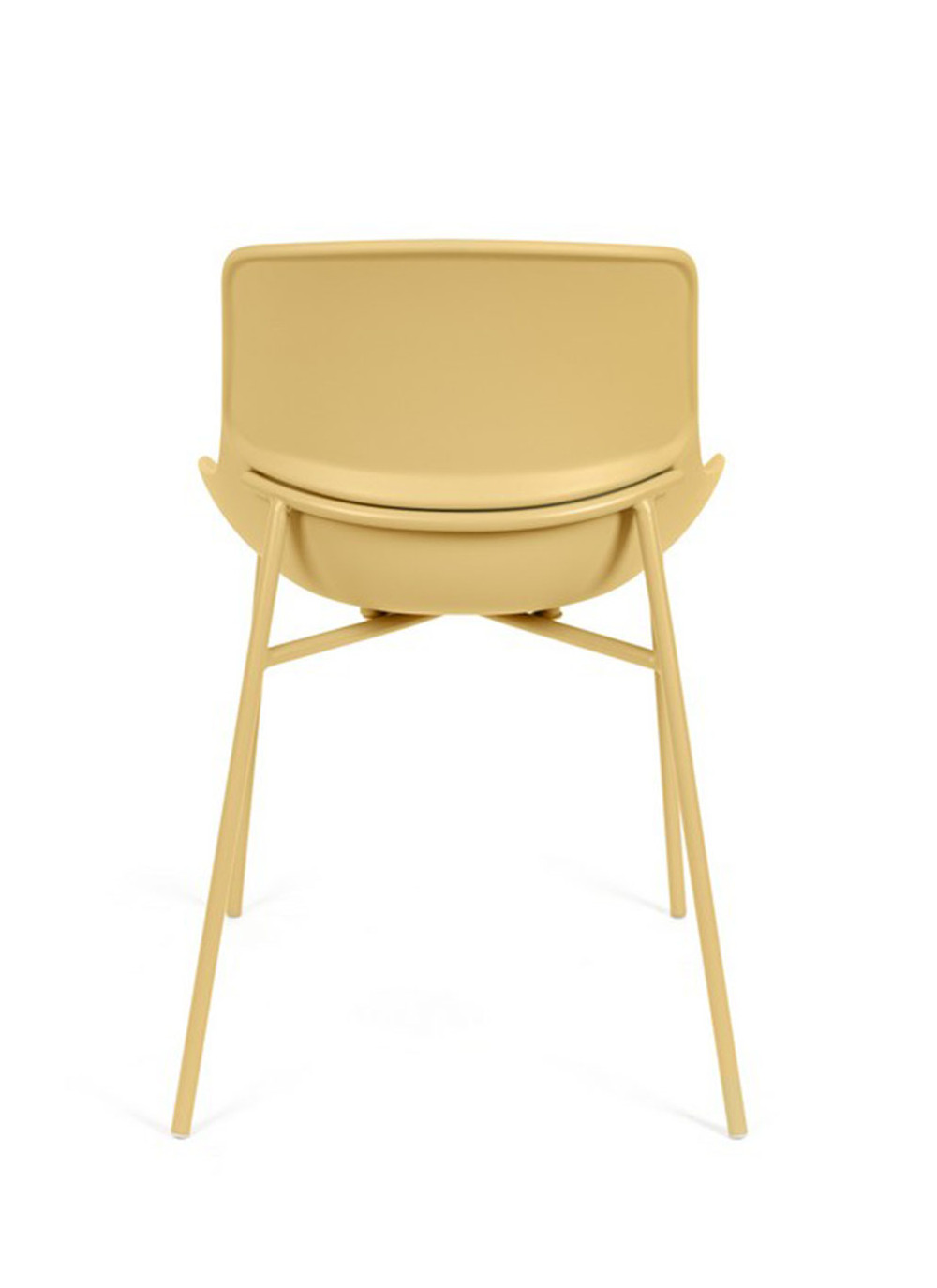 Su asiento de polipropileno, suavemente curvado, abraza el cuerpo con naturalidad mientras que sus patas metálicas, esbeltas y firmes, aportan un aire moderno y funcional.