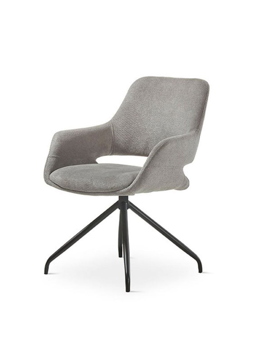 Silla tela gris con patas metal negro. Una pieza perfecta para combinar con ambientes Moderno.