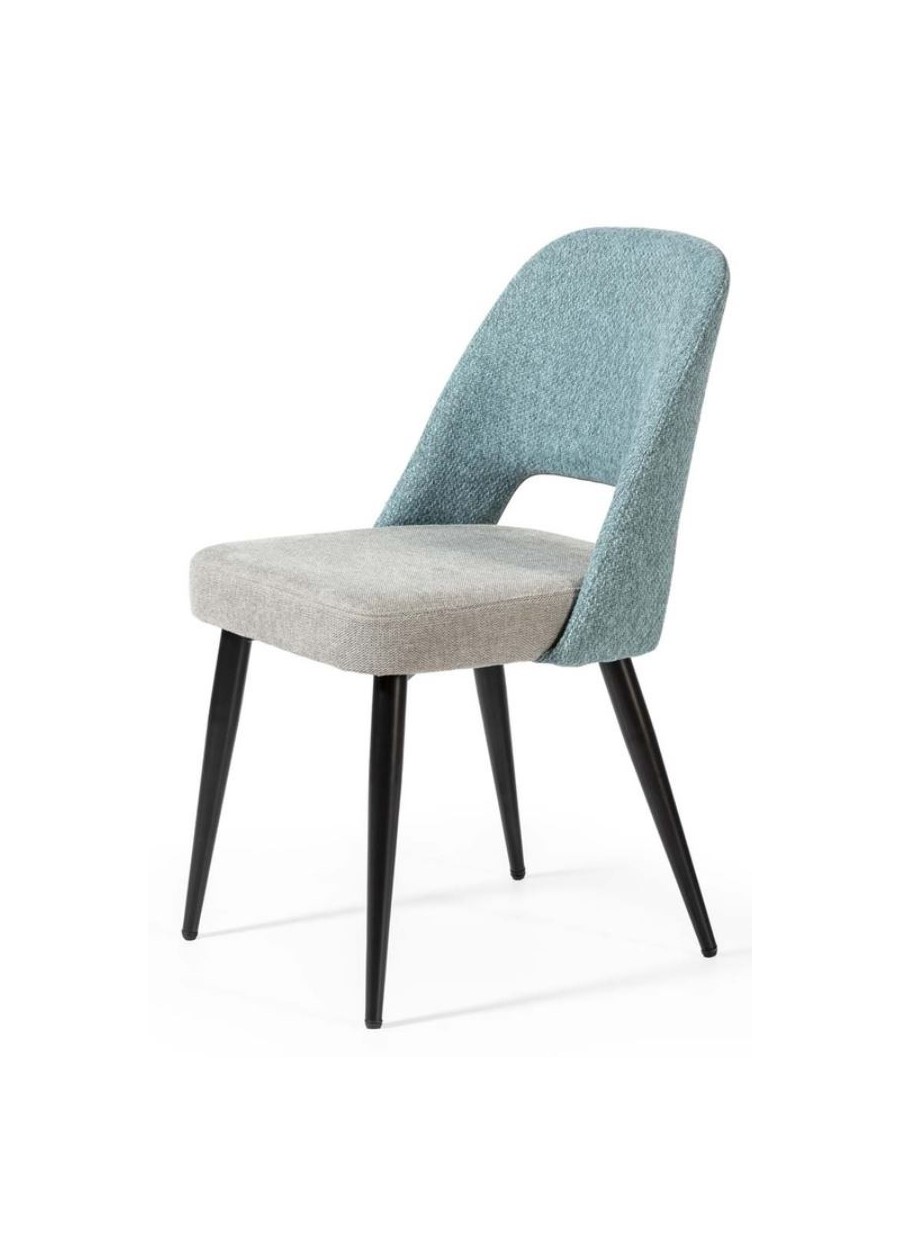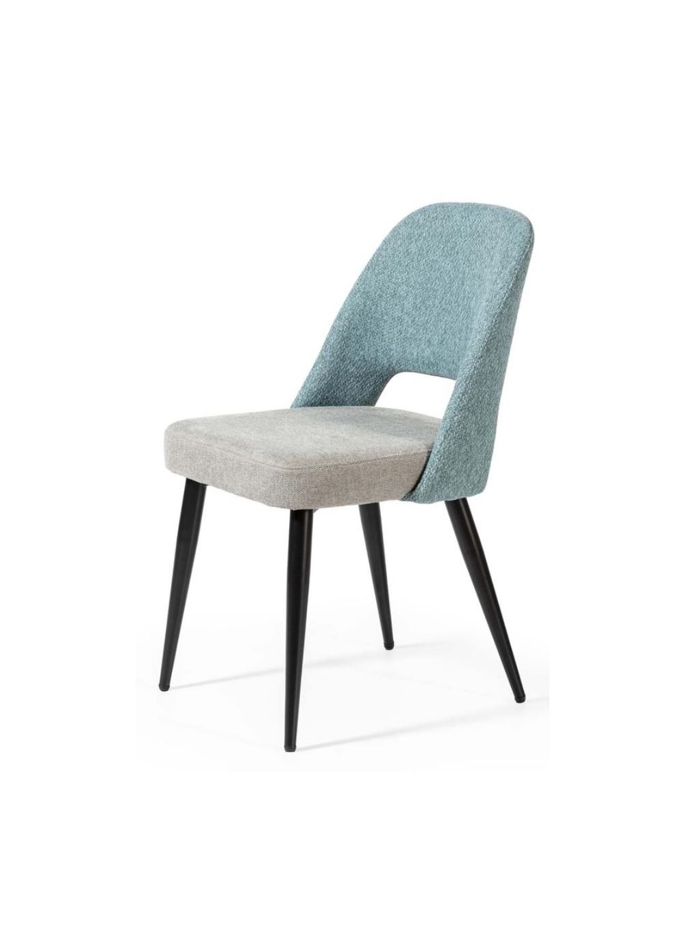 Silla tela turquesa con patas metal negro . Una pieza perfecta para combinar con ambientes Moderno.