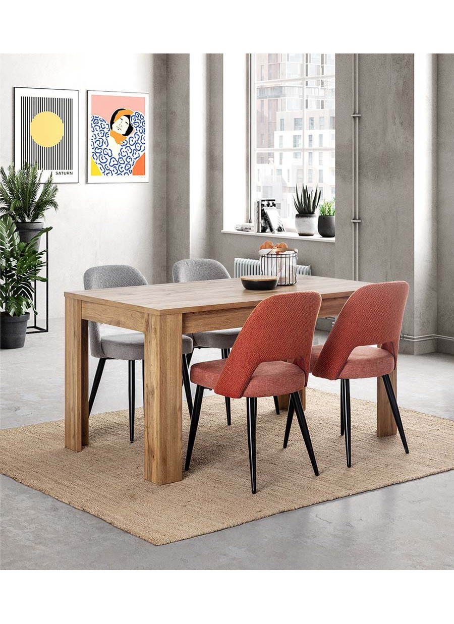 Materiales: Estructura de metal y acabado madera, asiento y respaldo tapizado en tela.