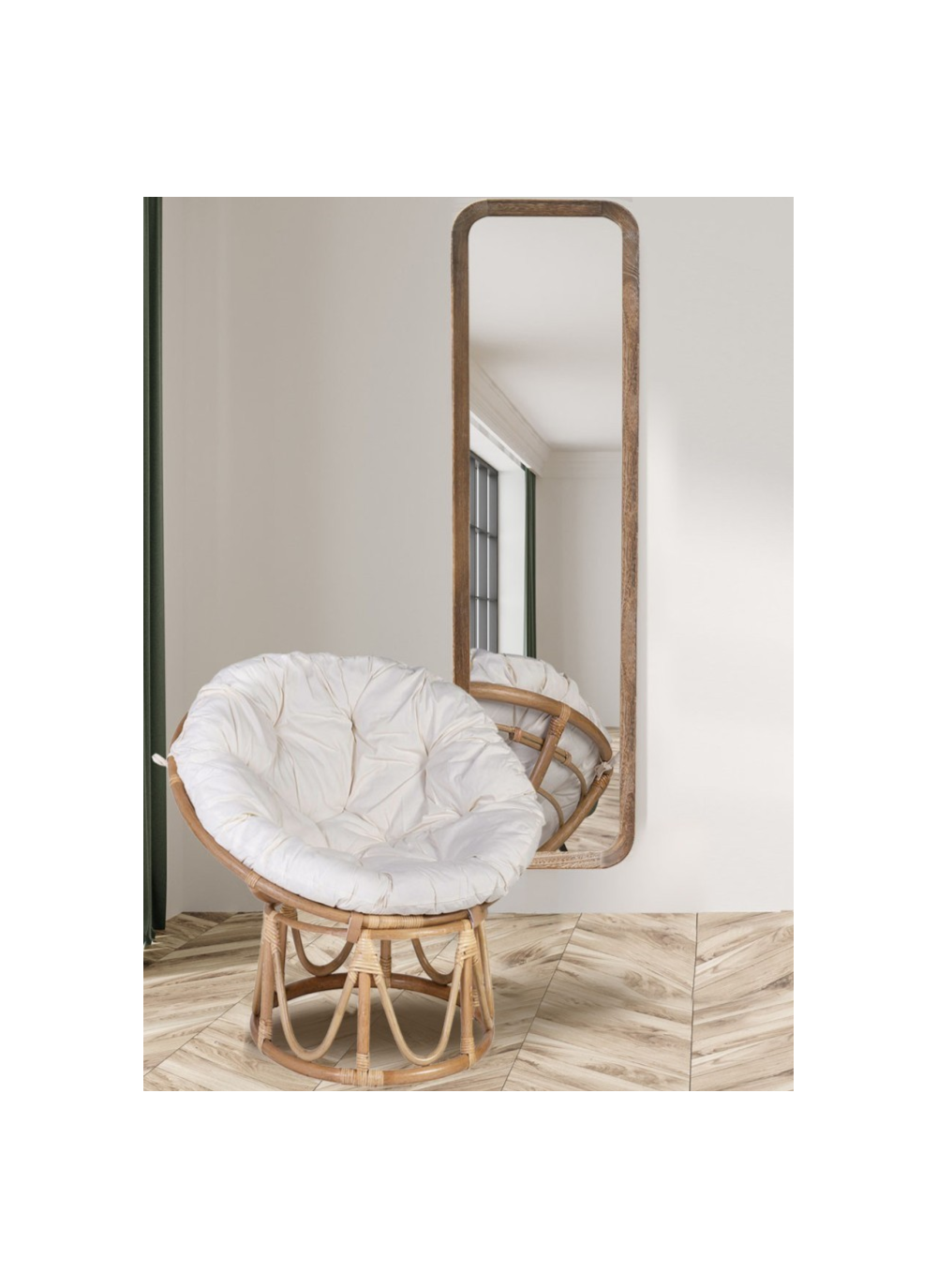 Materiales: Fabricada en ratán. Tela 50% poliéster - 50% algodón.