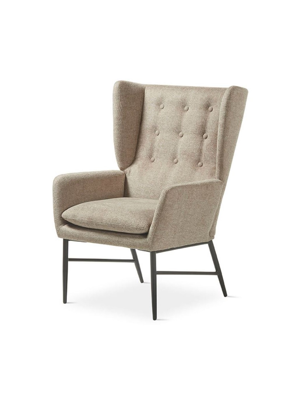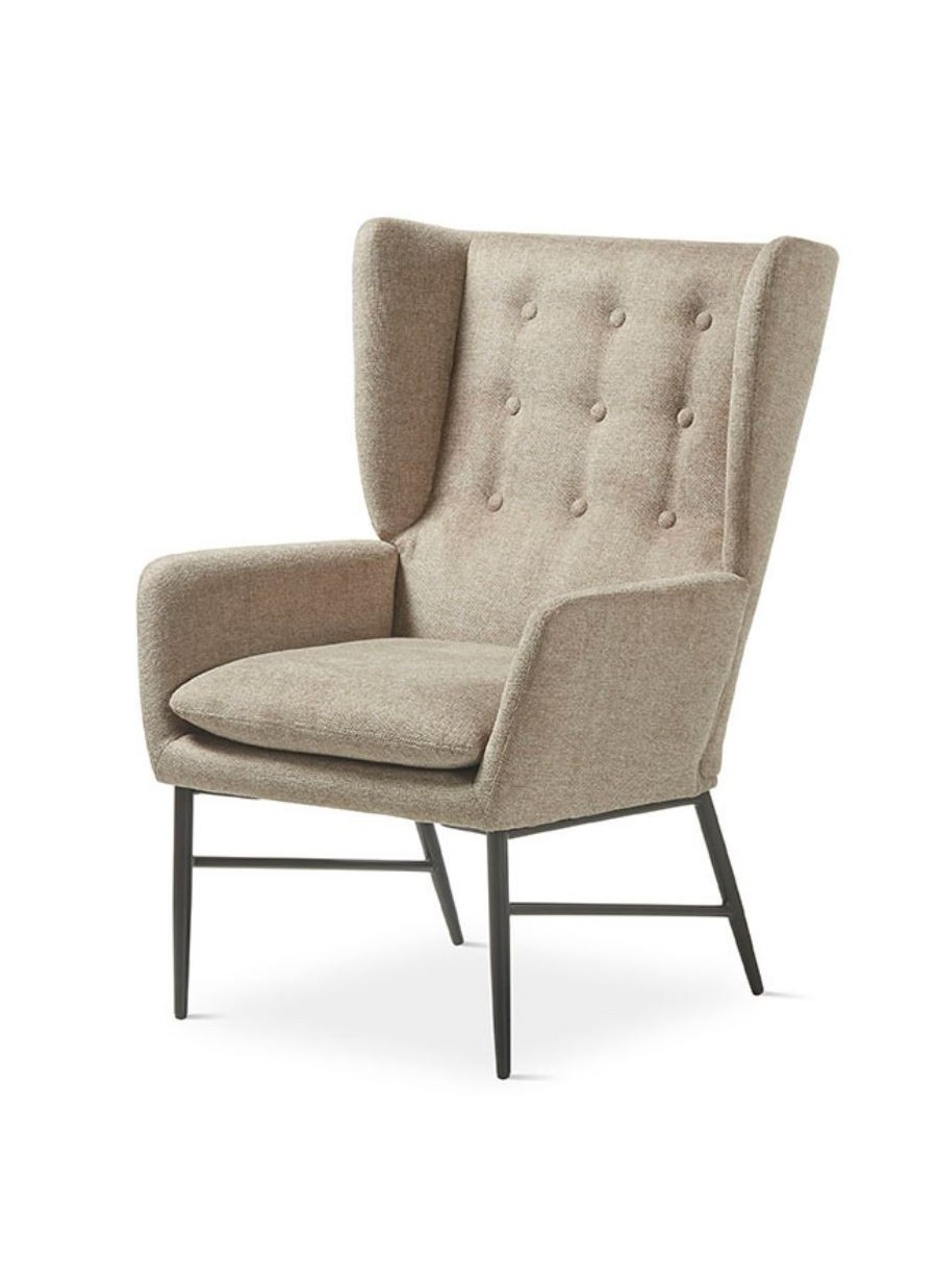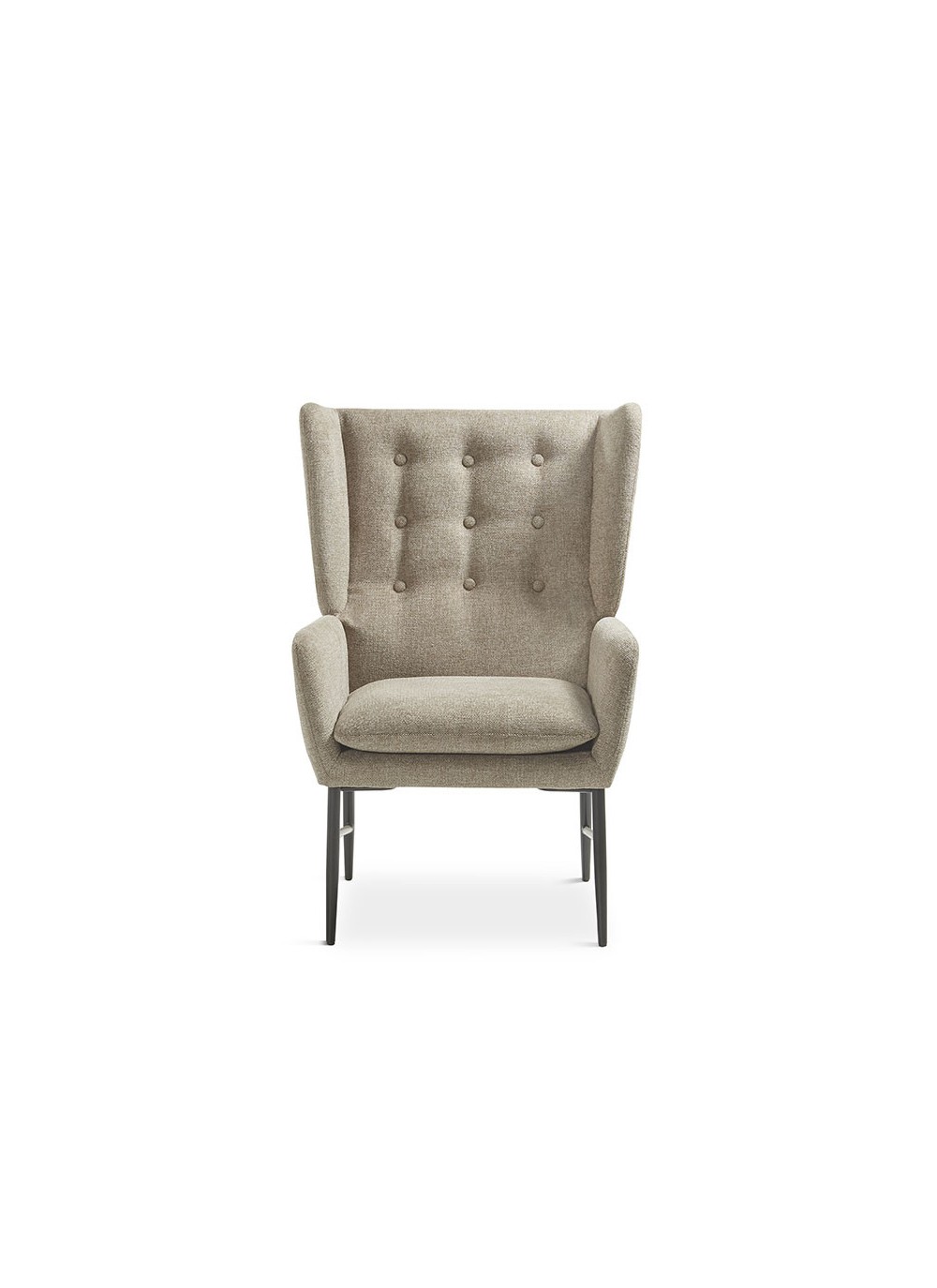 Butaca fabricada tela acabado en topo , patas de metal color negro. Una pieza perfecta para combinar con ambientes Moderno.