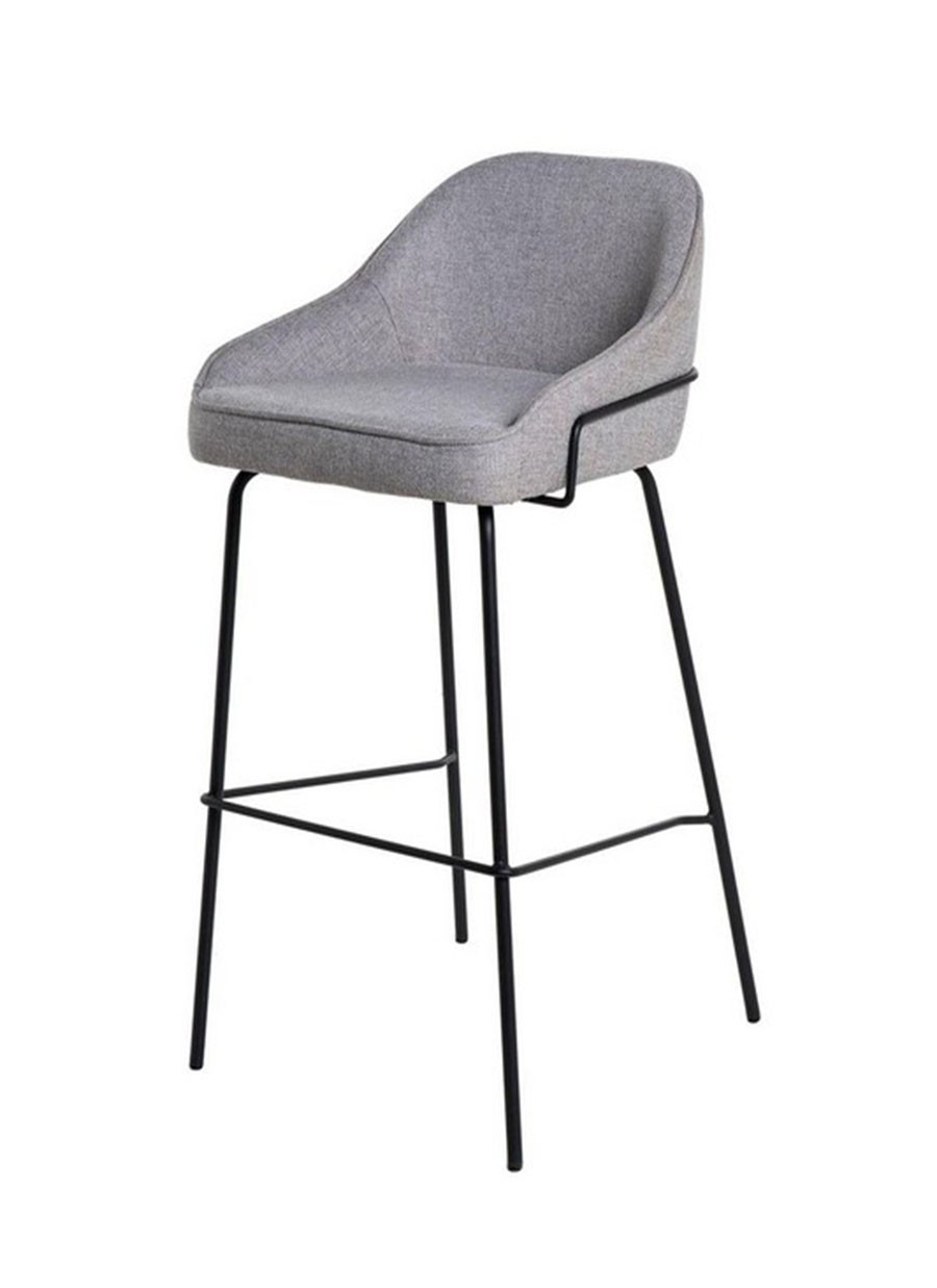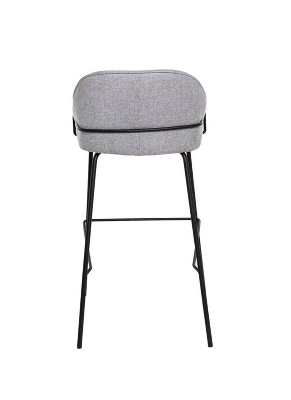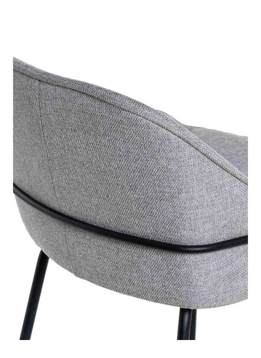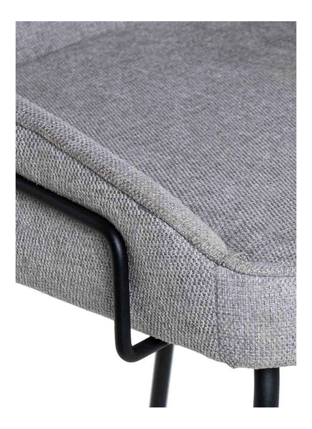 El asiento está tapizado en tela de color gris claro, proporcionando un tono neutro y sofisticado. La estructura y las patas de metal añaden un toque moderno y resistente.
