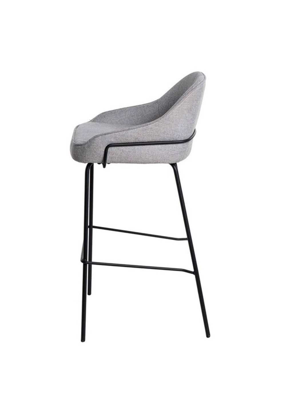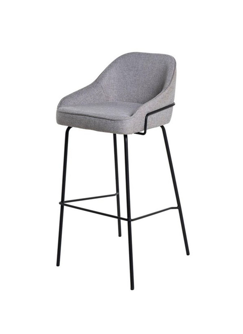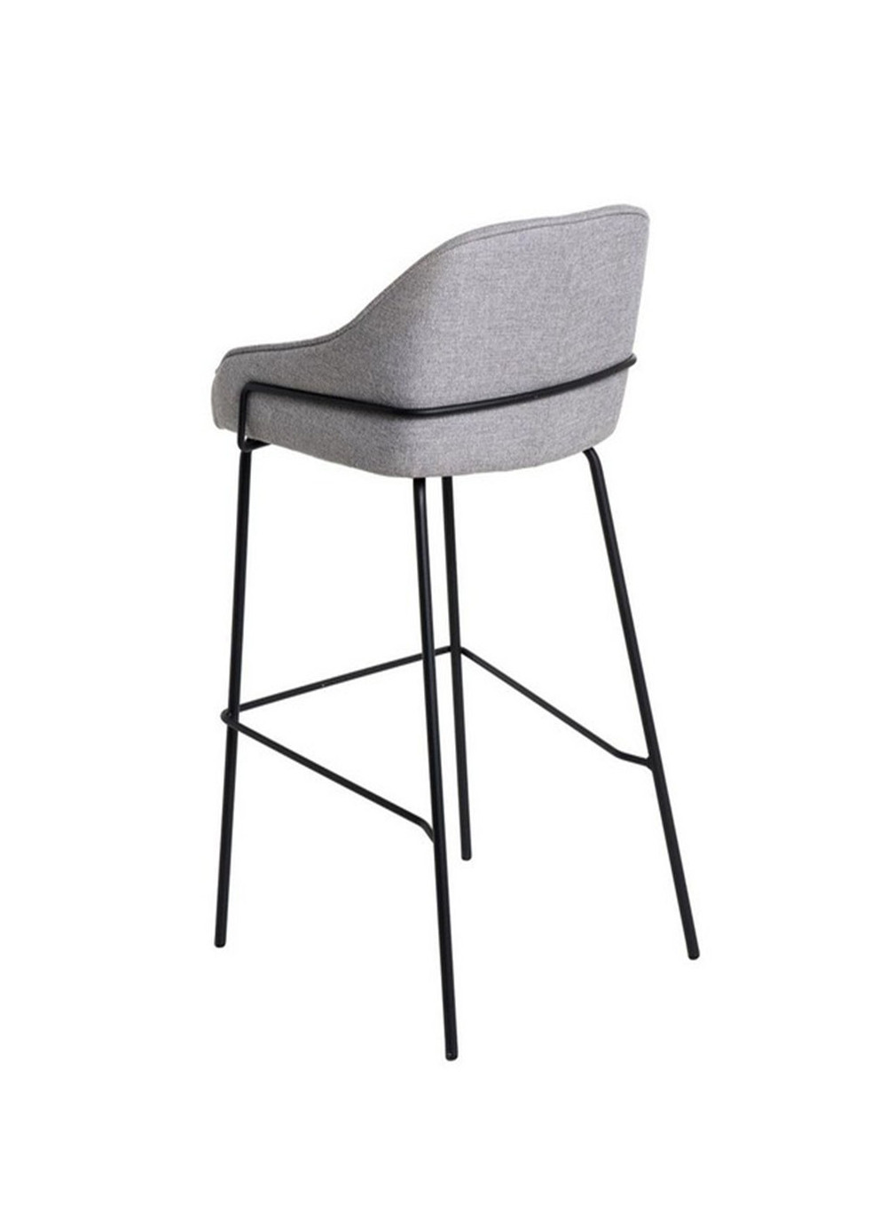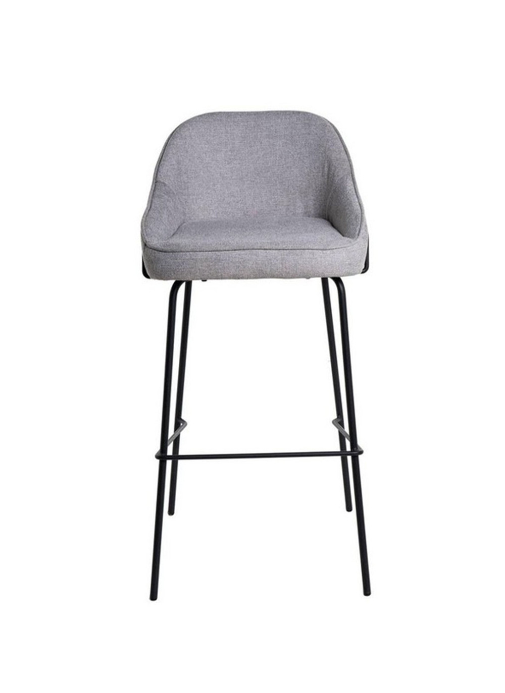 El asiento está tapizado en tela de color gris claro, proporcionando un tono neutro y sofisticado. La estructura y las patas de metal añaden un toque moderno y resistente.